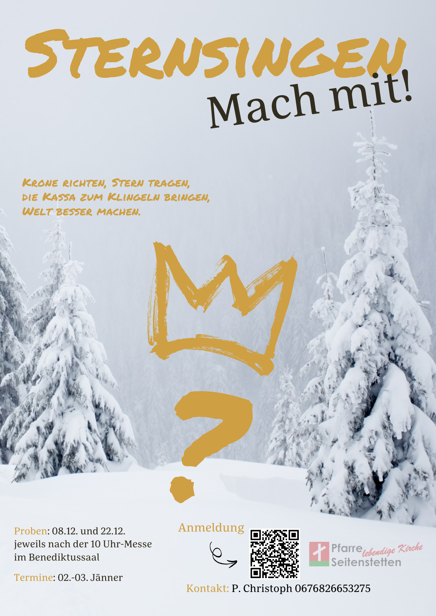 Weiters suchen wir Personen, die eine Sternsingergruppe zu Mittag verköstigen können. Bitte ebenso bei P. Christoph oder in der Pfarrkanzlei melden...