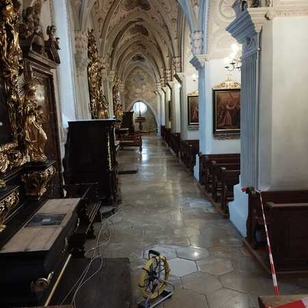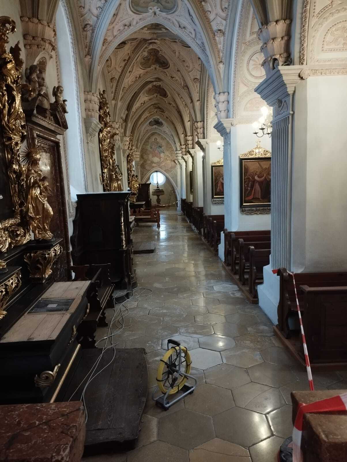 Unsere Stiftsmitarbeiter haben alle baulichen Vorkehrungen für die Installation einer neuen Lautsprecheranlage getroffen. Bei der Gelegenheit wurden auch alle schon beschädigten bzw. wackelnden Bodenplatten ersetzt oder befestigt. Schließlich werden noch die Deckenleuchten, die teilweise schon ausgebrannt waren, durch energiesparende LED-Leuchten ersetzt. Auch die Glasfenster werden gereinigt und überprüft.....