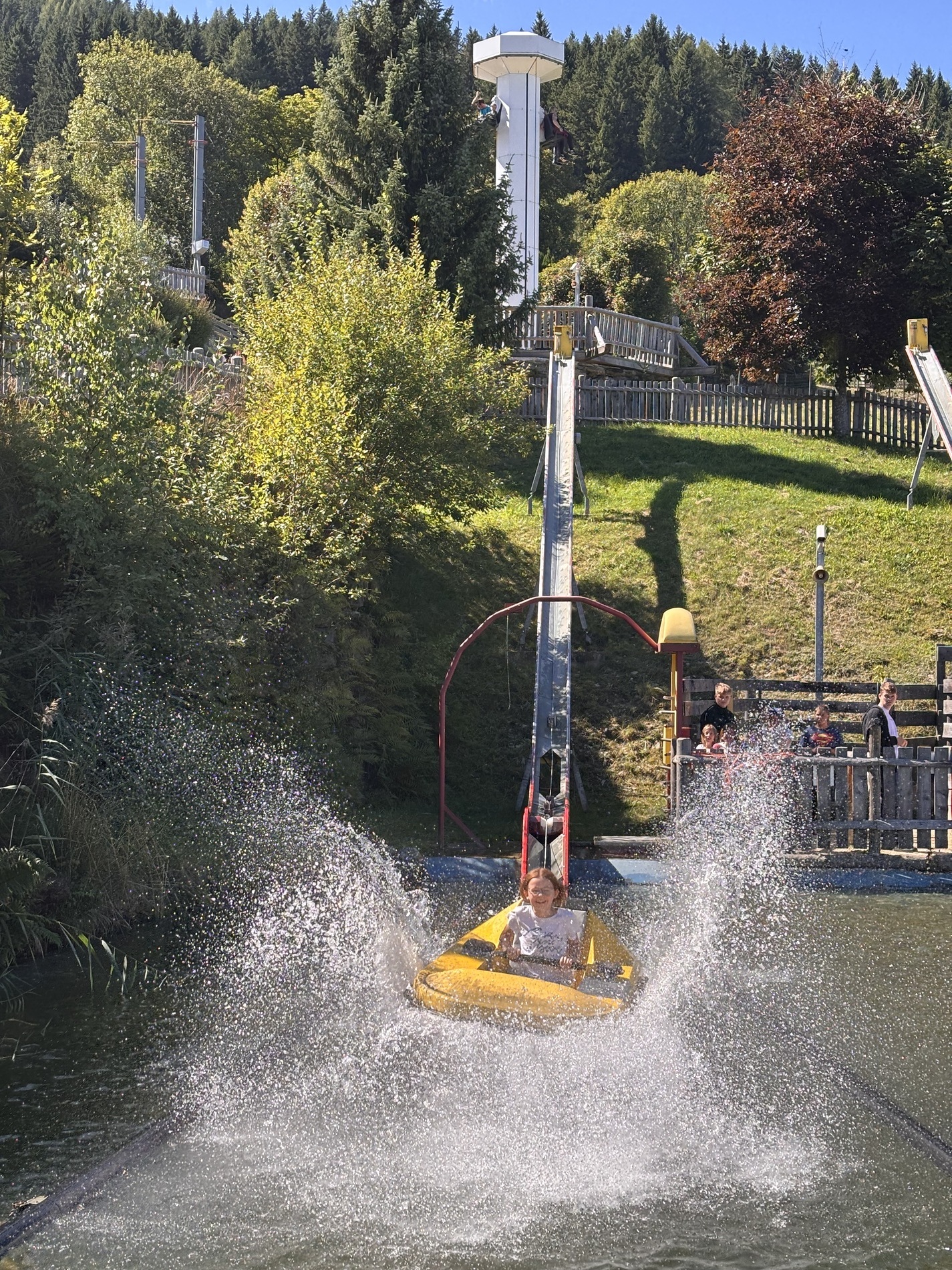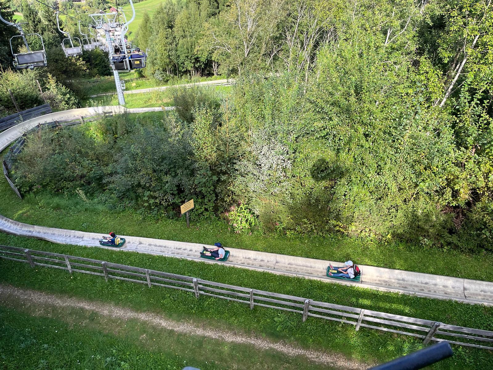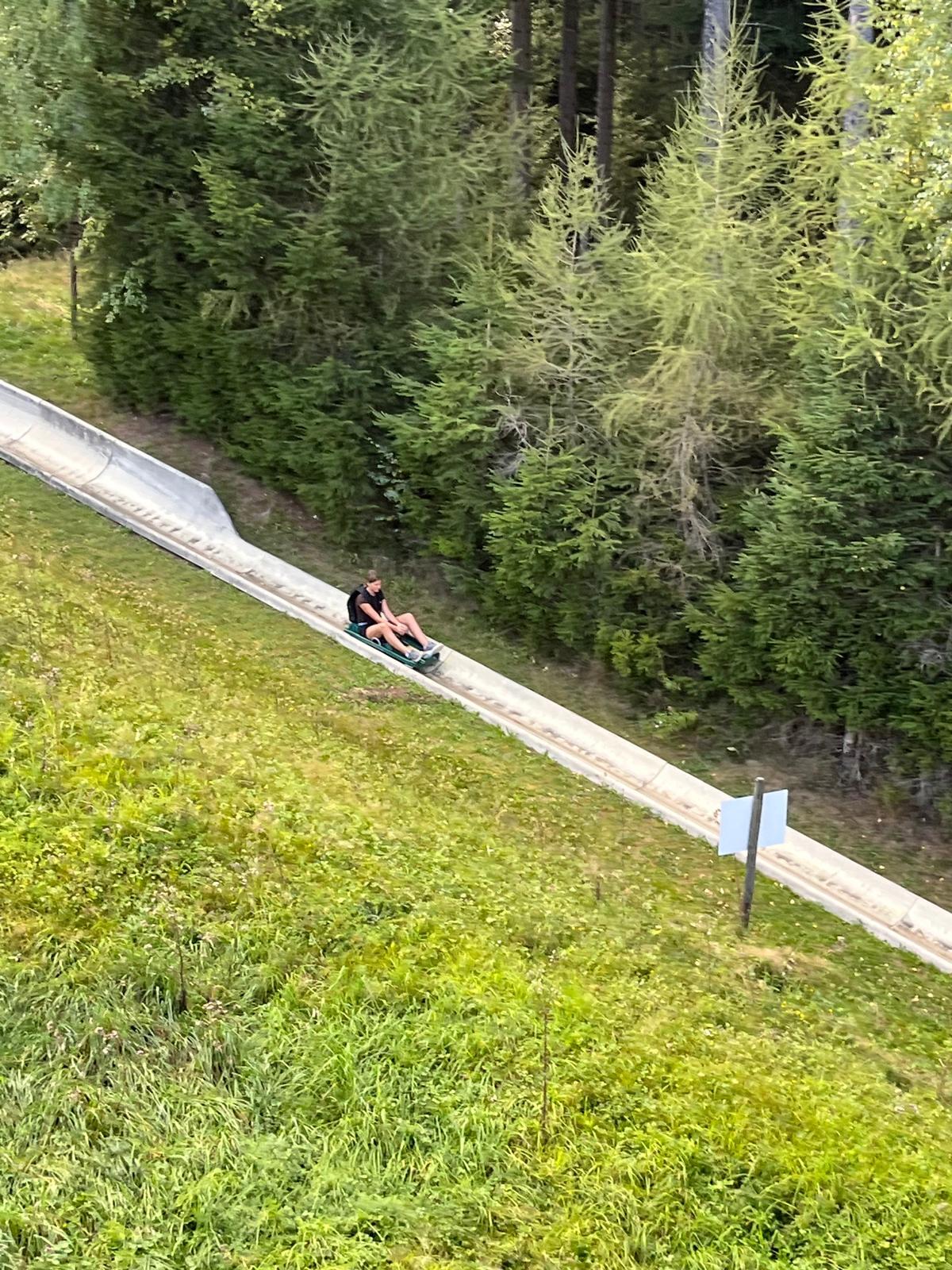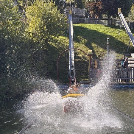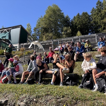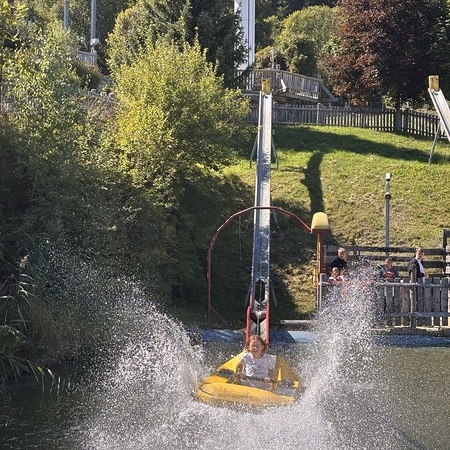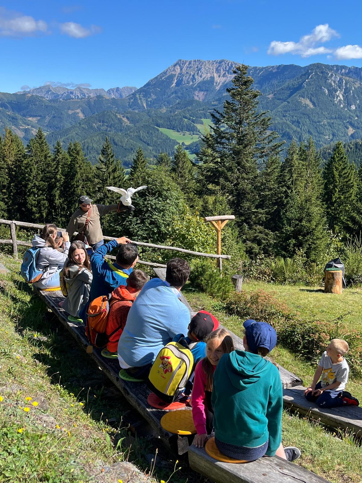 Ziel war der Erlebnispark "Der Wilde Berg" in Mautern. P. Christoph, P. Florian und Agnes Wieser machen sich mit 19 Kindern auf den Weg in die Steiermark.