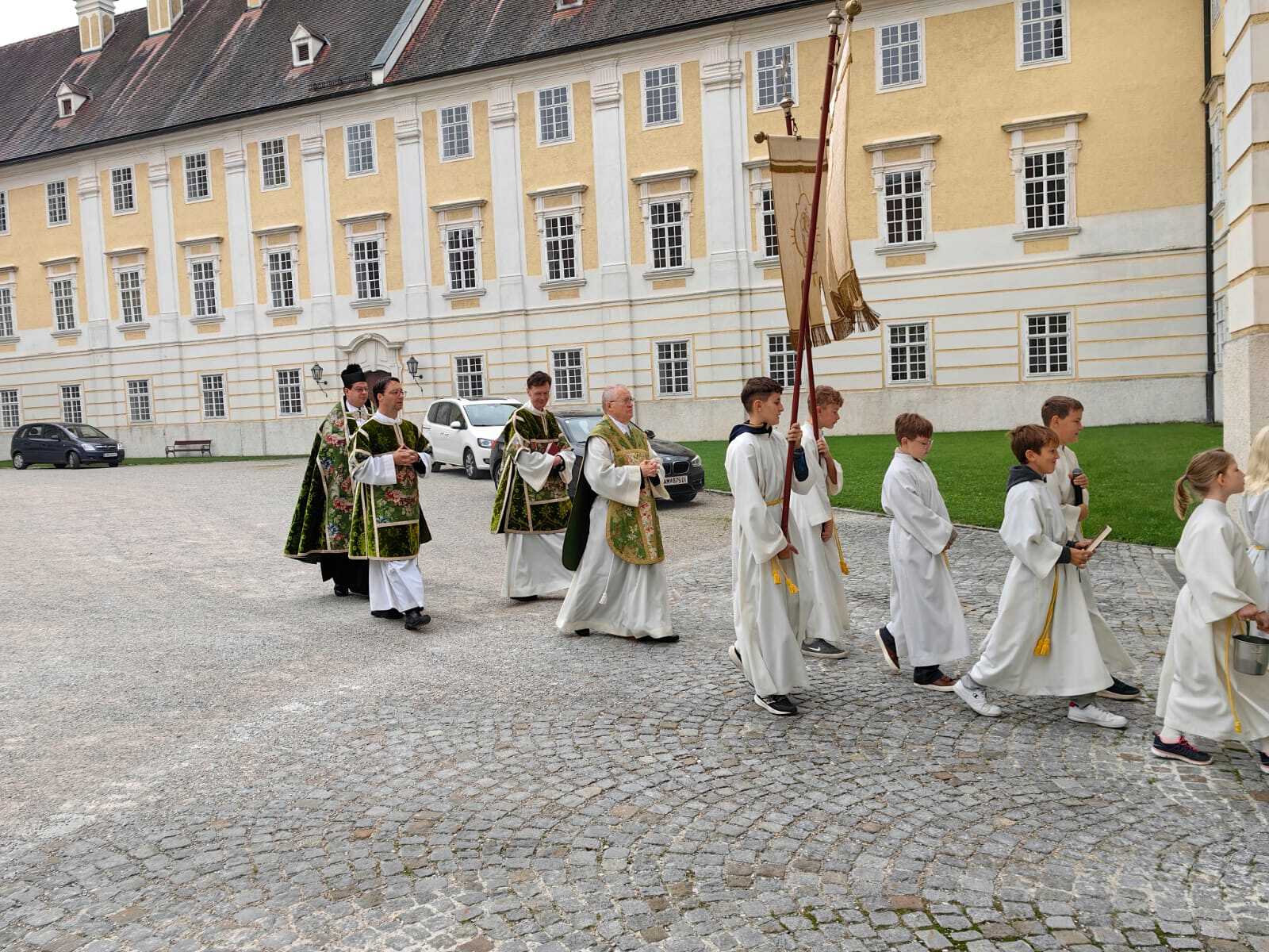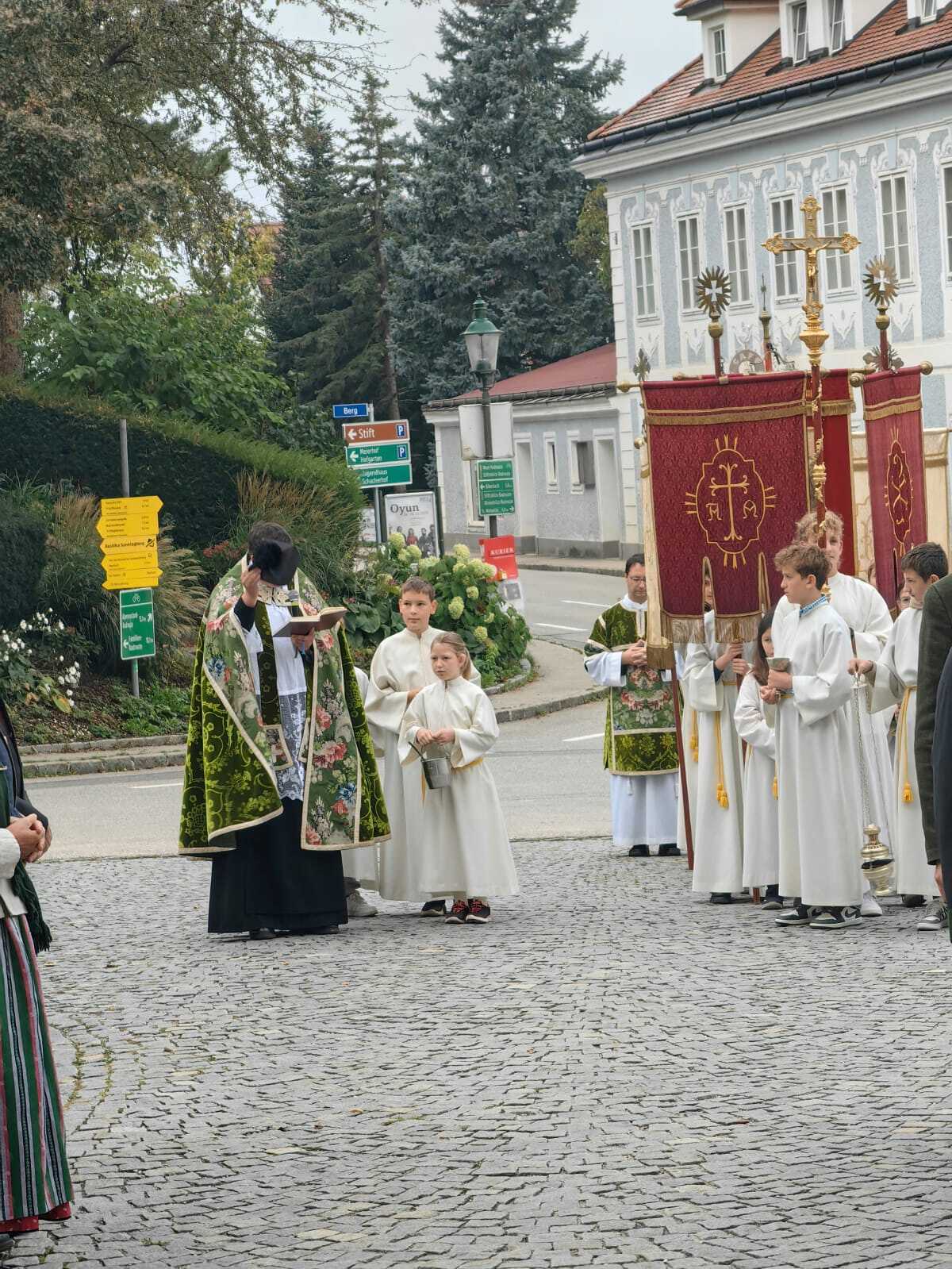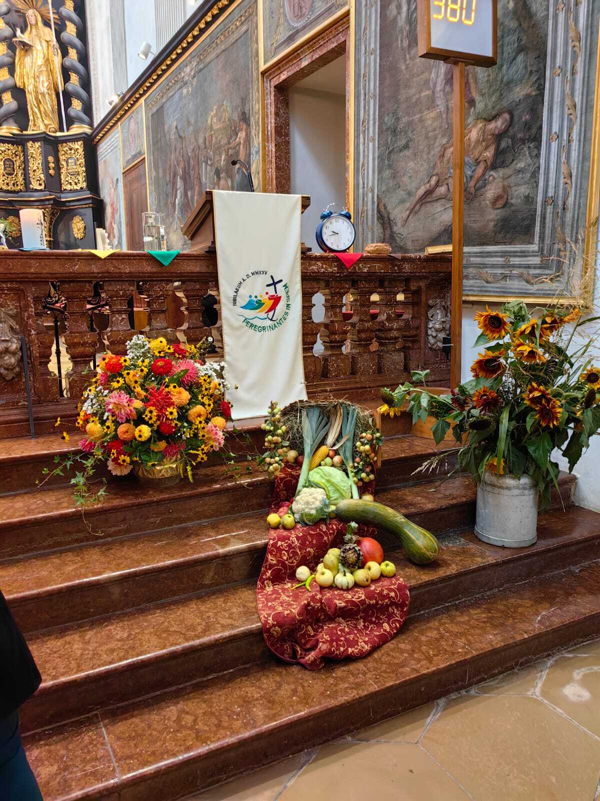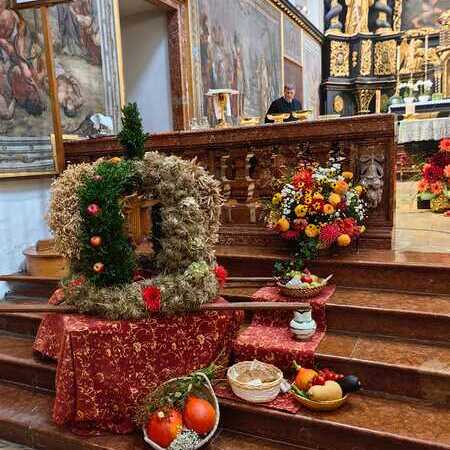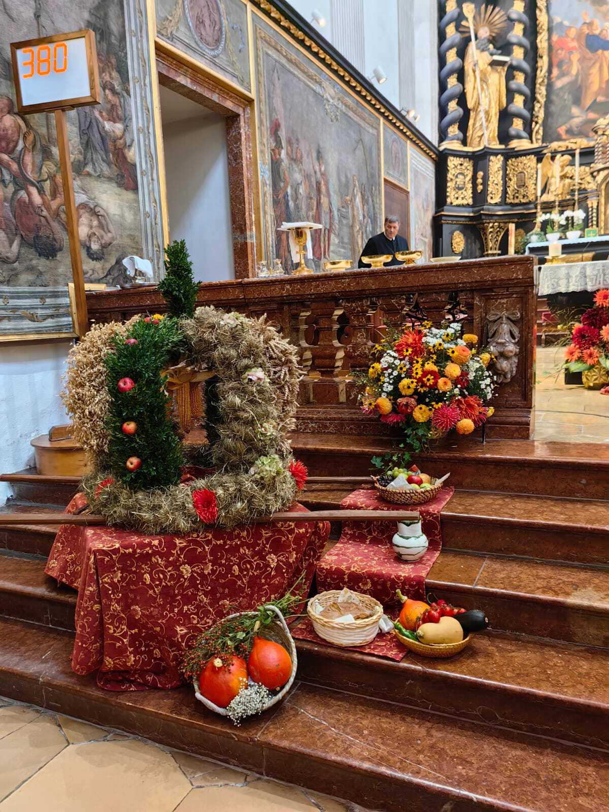Nach der Segnung der Erntegaben zogen wir in einer feierlichen Prozession in die Stiftskirche ein und feierten gemeinsam die Eucharistie – die Danksagung.