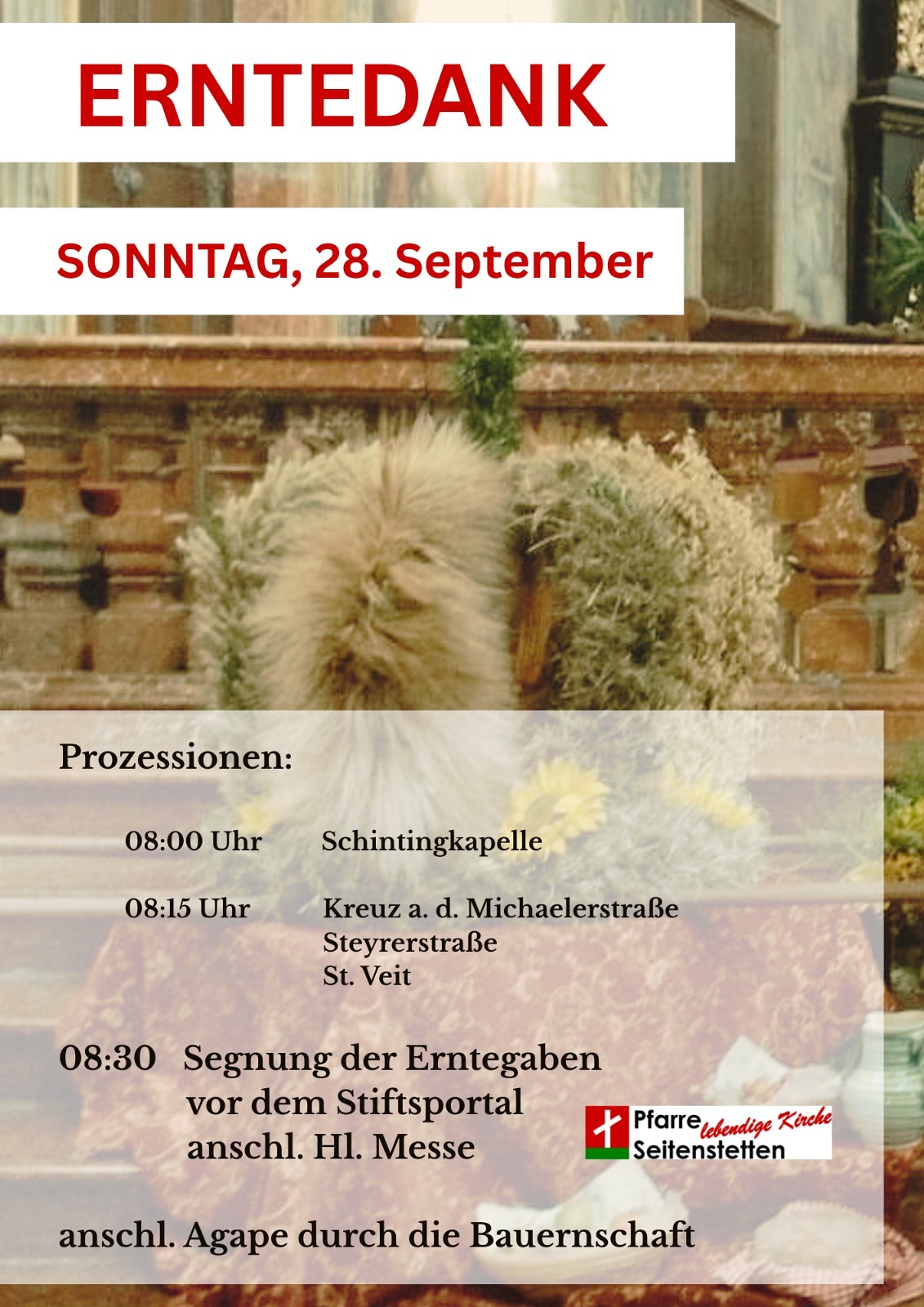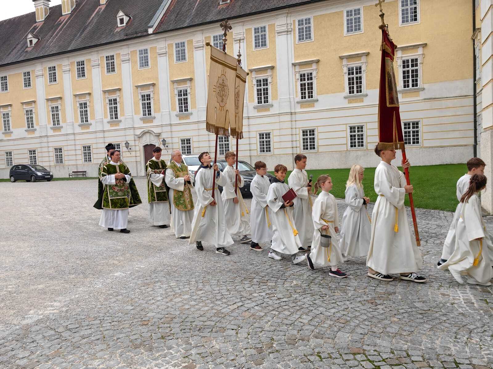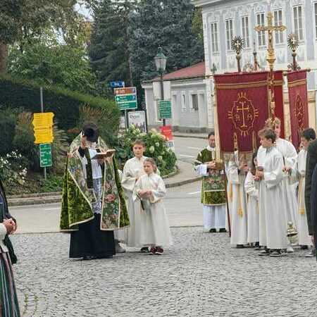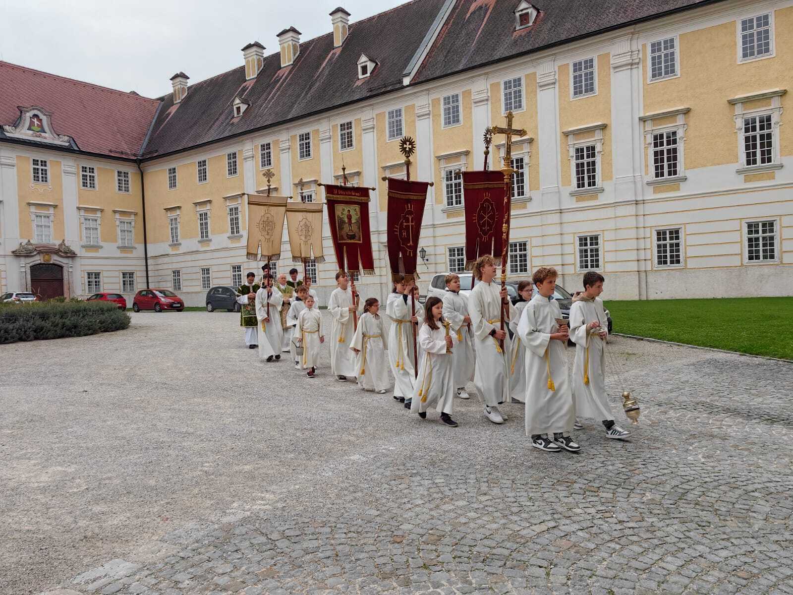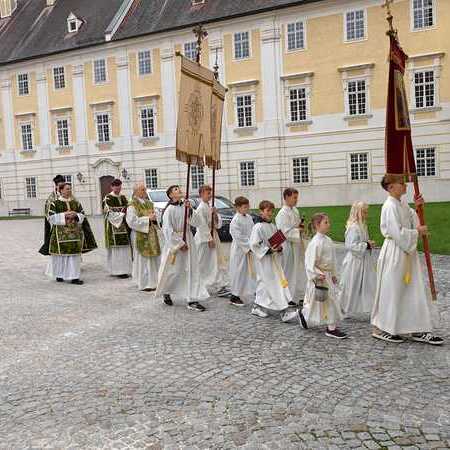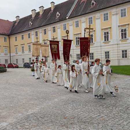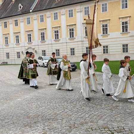 Nach der Segnung der Erntegaben zogen wir in einer feierlichen Prozession in die Stiftskirche ein und feierten gemeinsam die Eucharistie – die Danksagung.