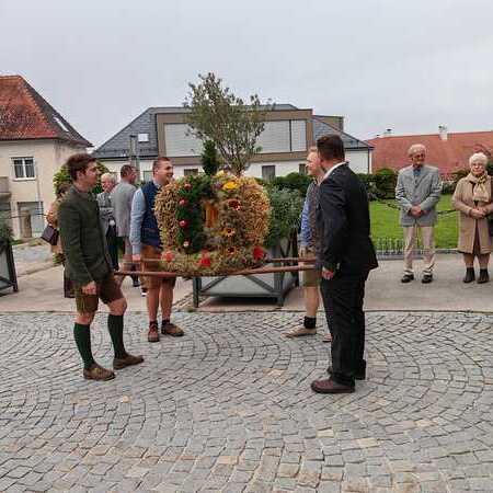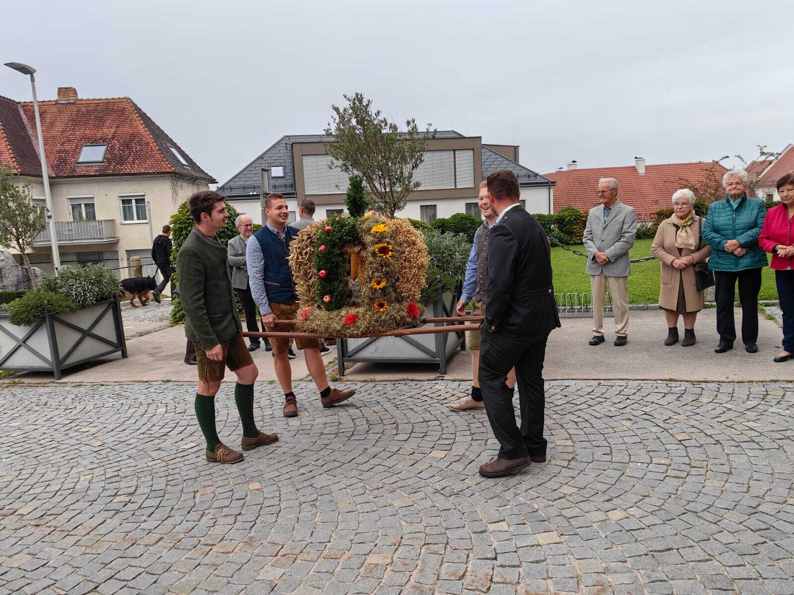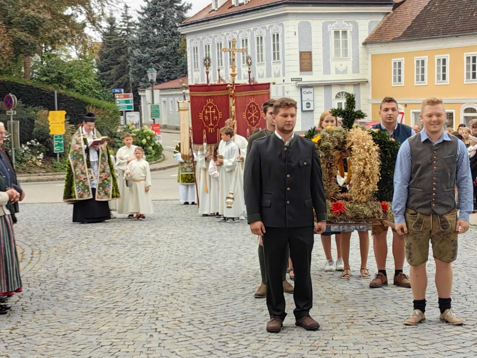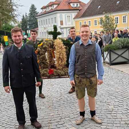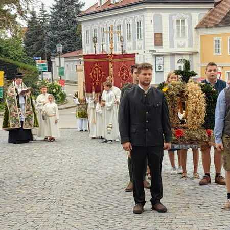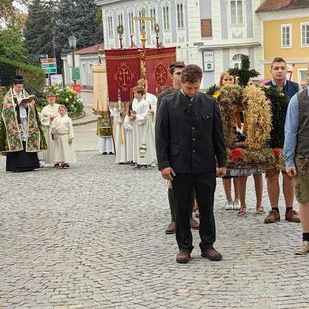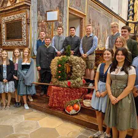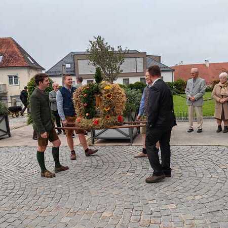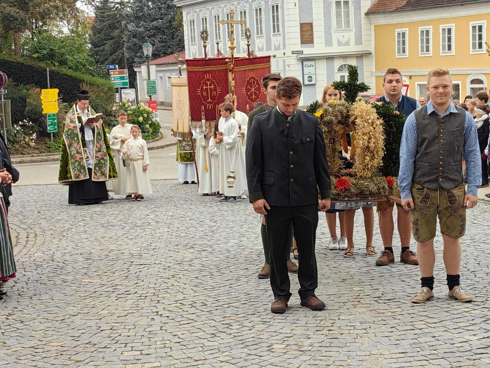 Die festlich gebundene Erntekrone erinnert uns an die Fülle der Gaben, die Gott uns schenkt, und an unsere Verantwortung, dankbar und sorgsam mit seiner Schöpfung umzugehen. Ein besonderer Dank gilt der Landjugend, die auch heuer wieder das Binden der Krone übernommen hat.