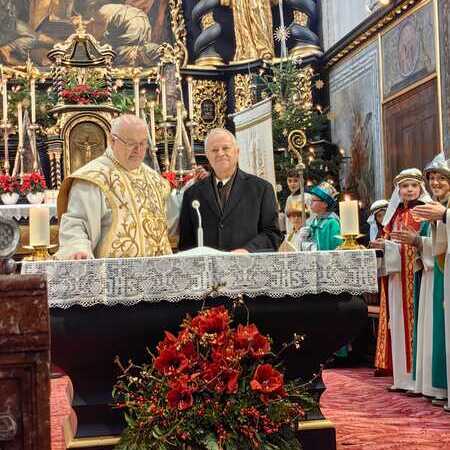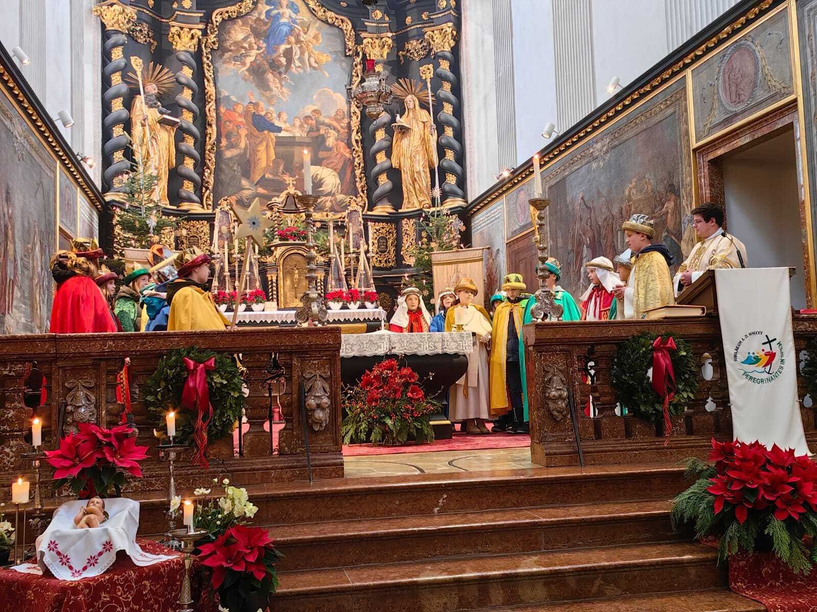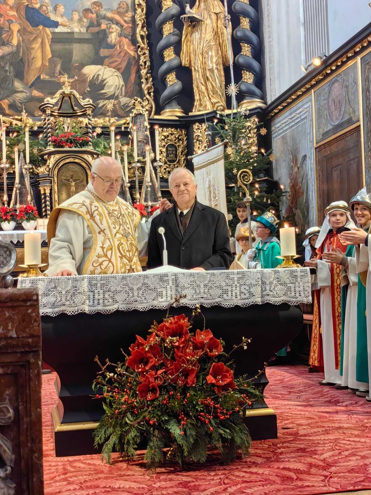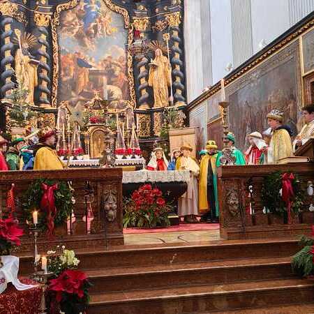Abt Petrus zog gemeinsam mit den Sternsingern in unsere Stiftskirche ein. Diese präsentierten nach der Kommunion auch ihre Lieder und Sprüche vor der Gottesdienstgemeinde.