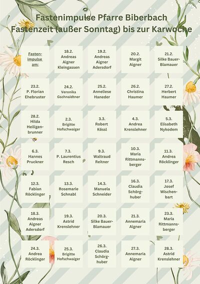 Wir laden herzlich ein zum täglichen Besuch der Homepage unserer Partnerpfarre Biberbach - mit Fastenimpulsen ab Aschermittwoch bis zur Karwoche!