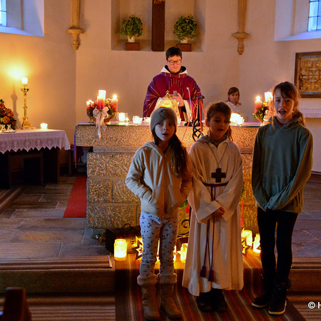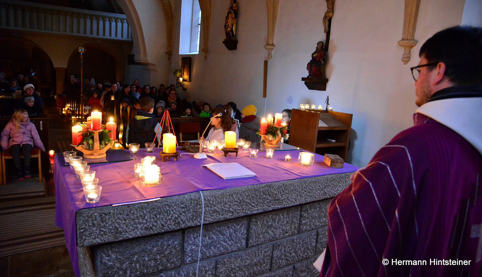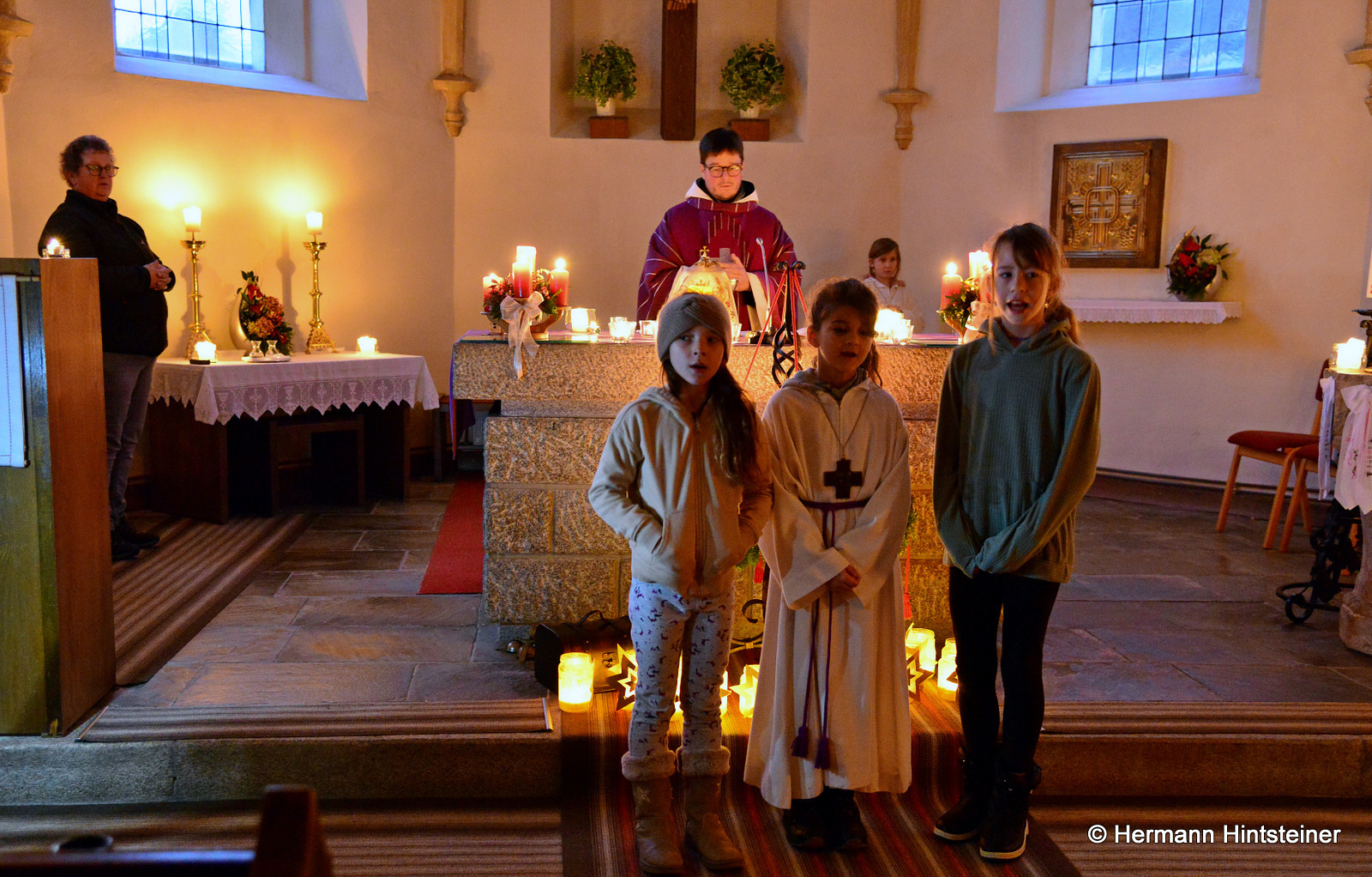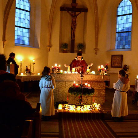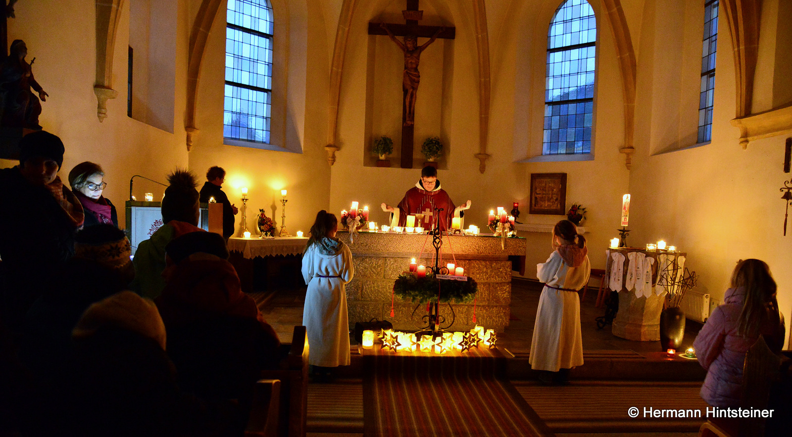 Am Donnerstag, 21. Dezember, feierten wir zeitig in der Früh in unserer Pfarrkirche Roratemesse. Das Gotteshaus war nur durch die zahlreichen Kerzen bzw. mitgebrachten Laternen erleuchtet.