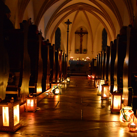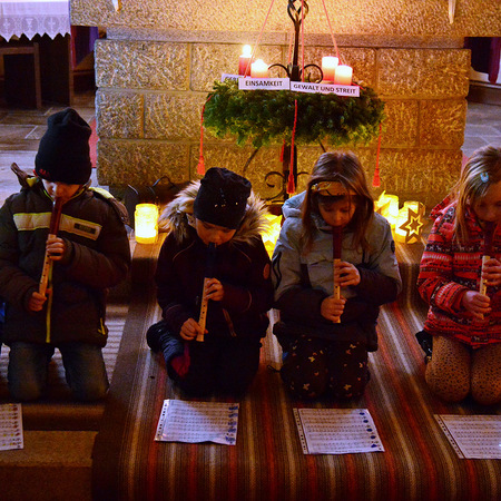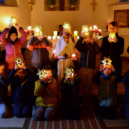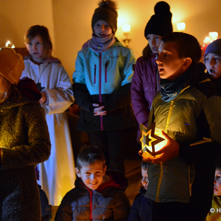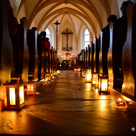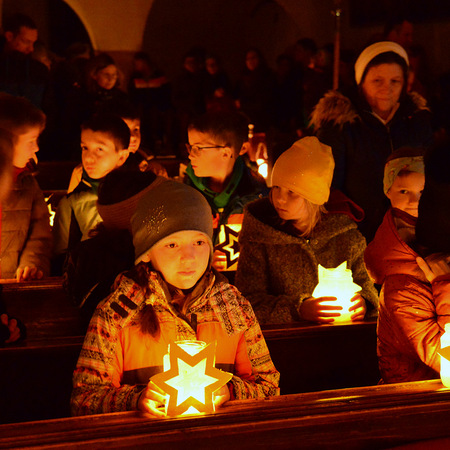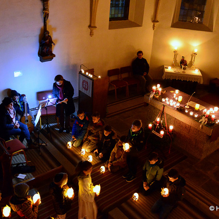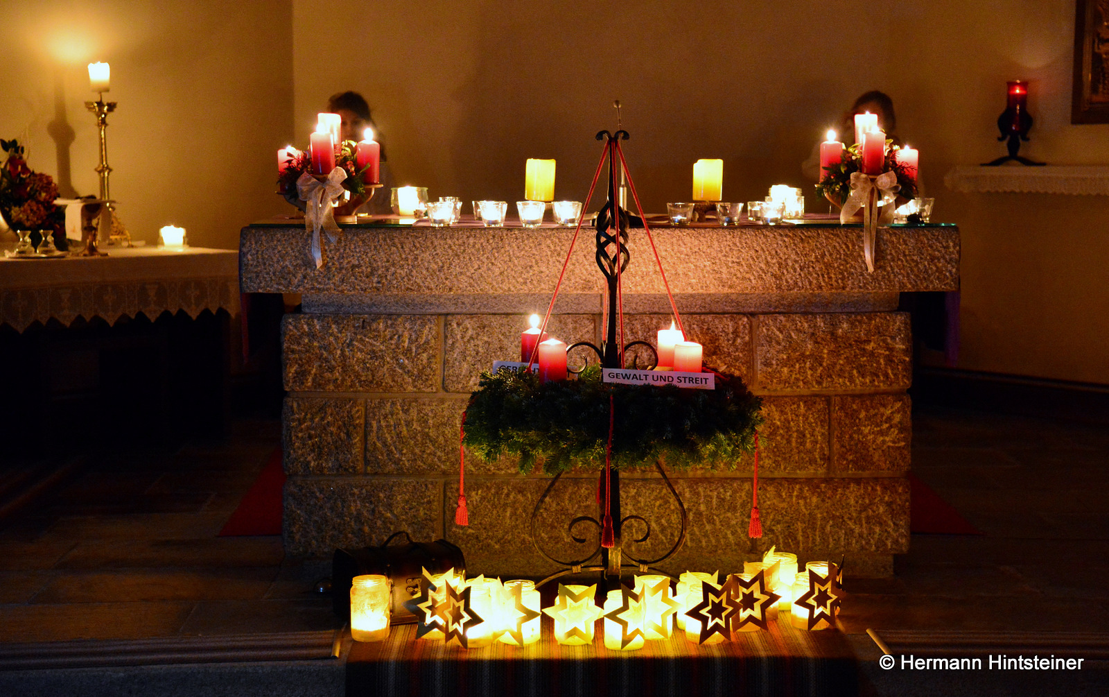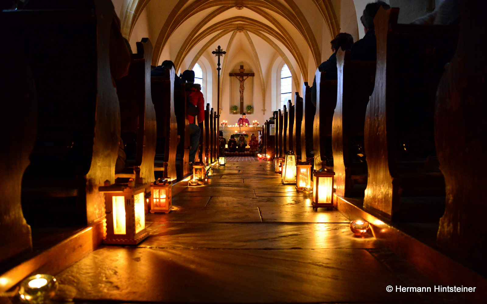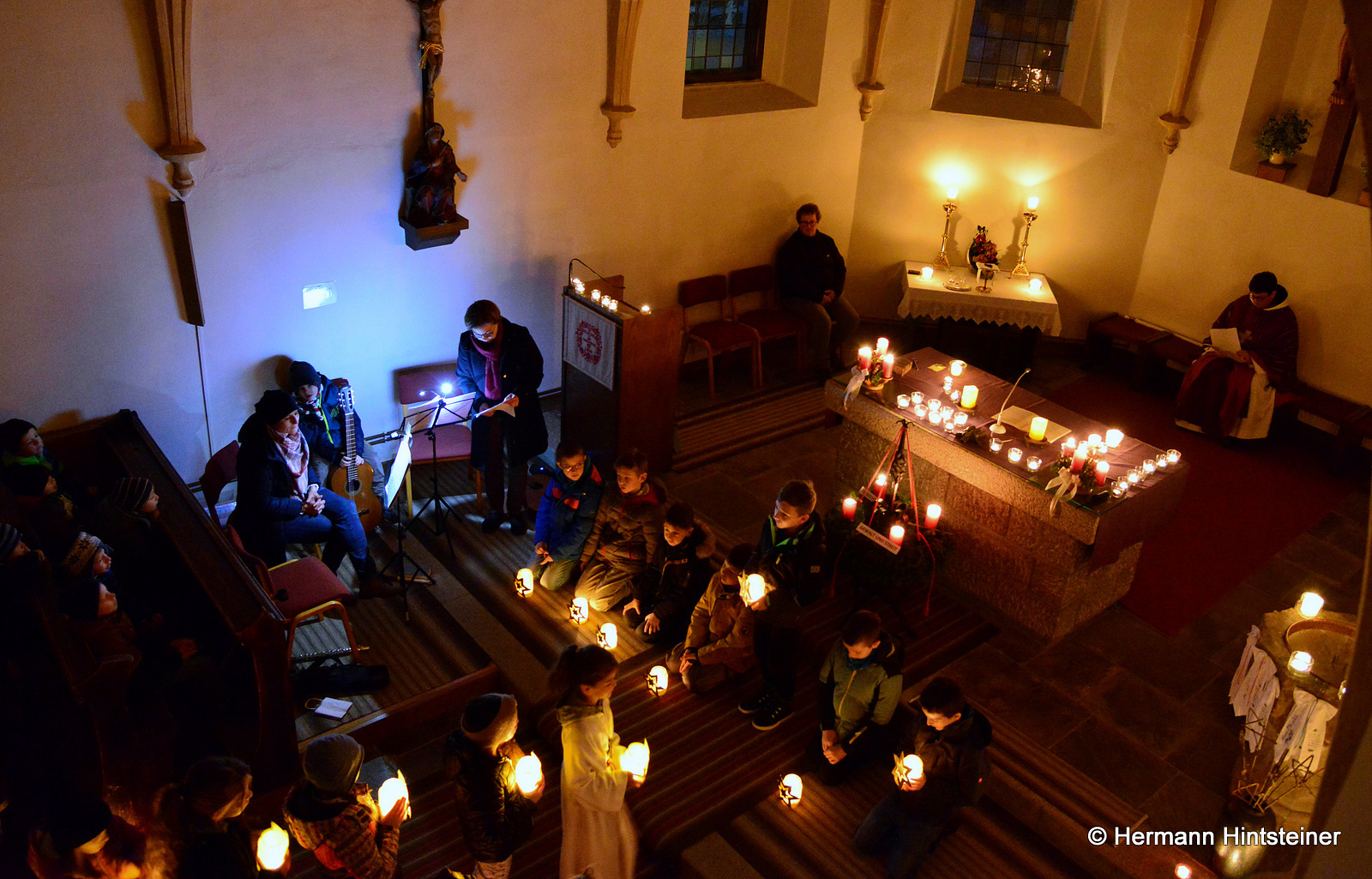 Am Donnerstag, 21. Dezember, feierten wir zeitig in der Früh in unserer Pfarrkirche Roratemesse. Das Gotteshaus war nur durch die zahlreichen Kerzen bzw. mitgebrachten Laternen erleuchtet.