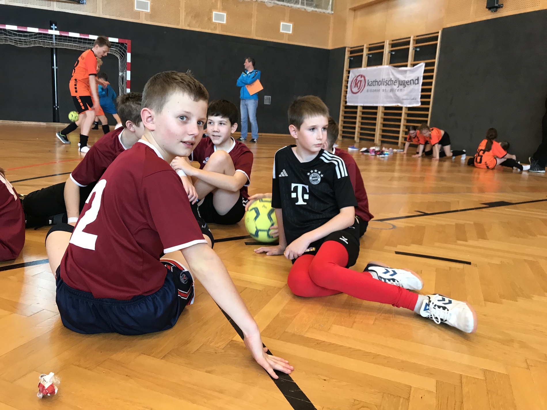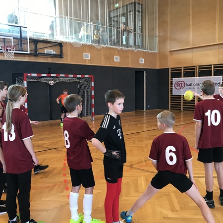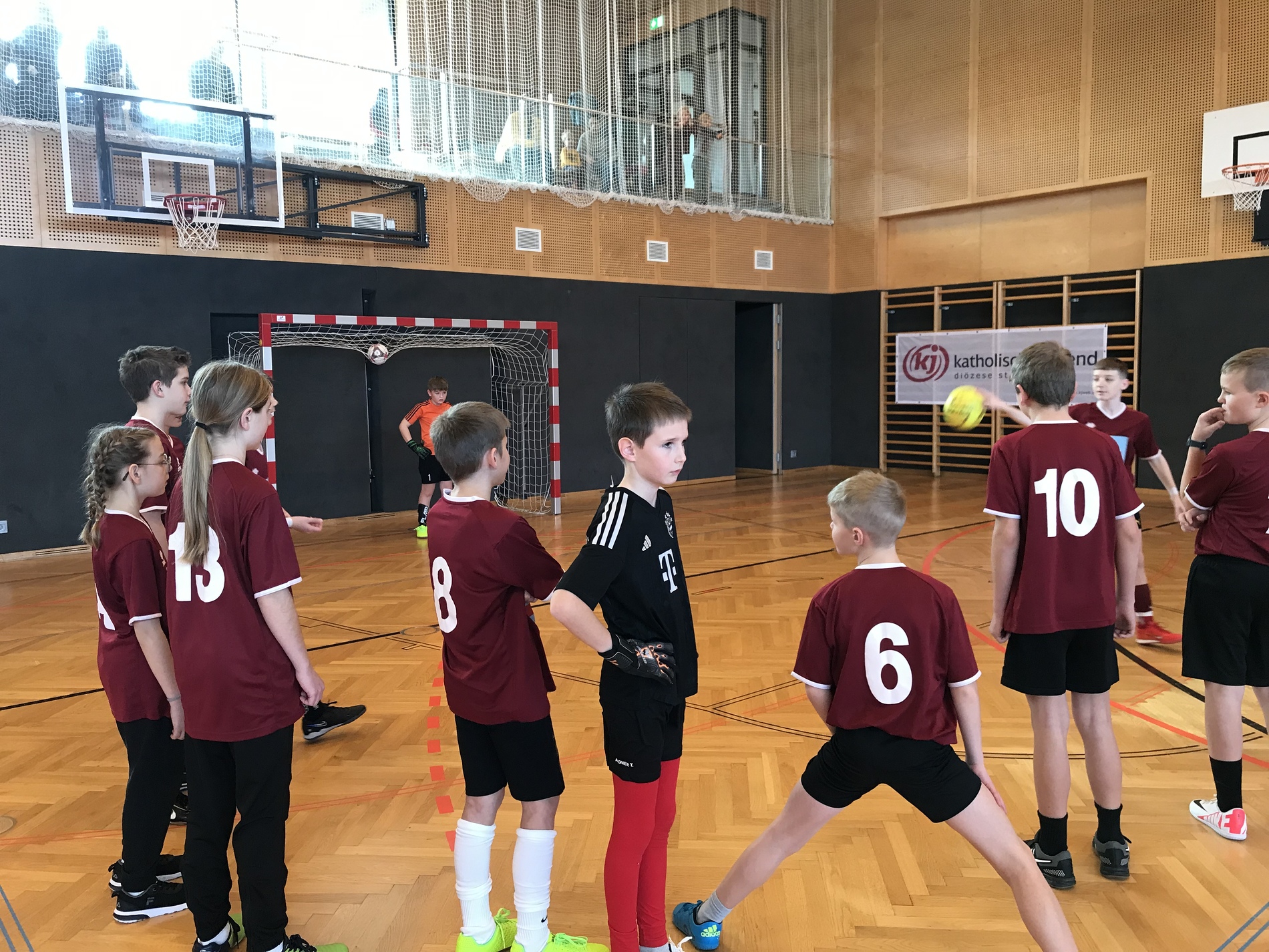 Vormittags spielte die Altersgruppe 1 - Elias Dorfer, David Tazreiter, Ben Obermüller, Daniel Bleiner, Verena Aigner, Leo Aigner, Anna Buchinger, Jakob Leichtfried, Christoph Soxberger und Daniel Bleiner und erreichte mit totalem Einsatz und großartigem Können den 10. Platz bei 15 teilnehmenden Mannschaften. Gespielt wurde jeweils mit 1 Tormann/Torfrau und 4 Feldspieler*innen und 5 Ersatzspieler*innen. Aufgrund dieser Regelung konnte unser 11. Ministrant der Altersgruppe 1 - Jakob Korntheuer - erst am Nachmittag erstmals zum Einsatz kommen.