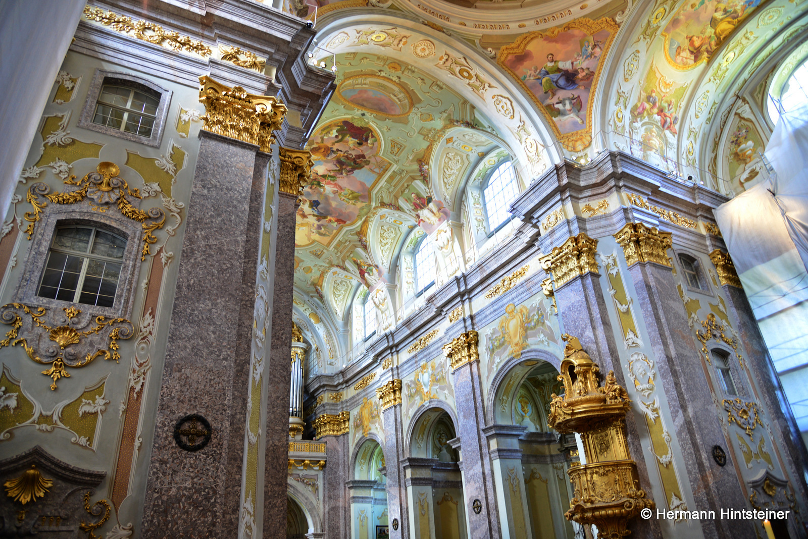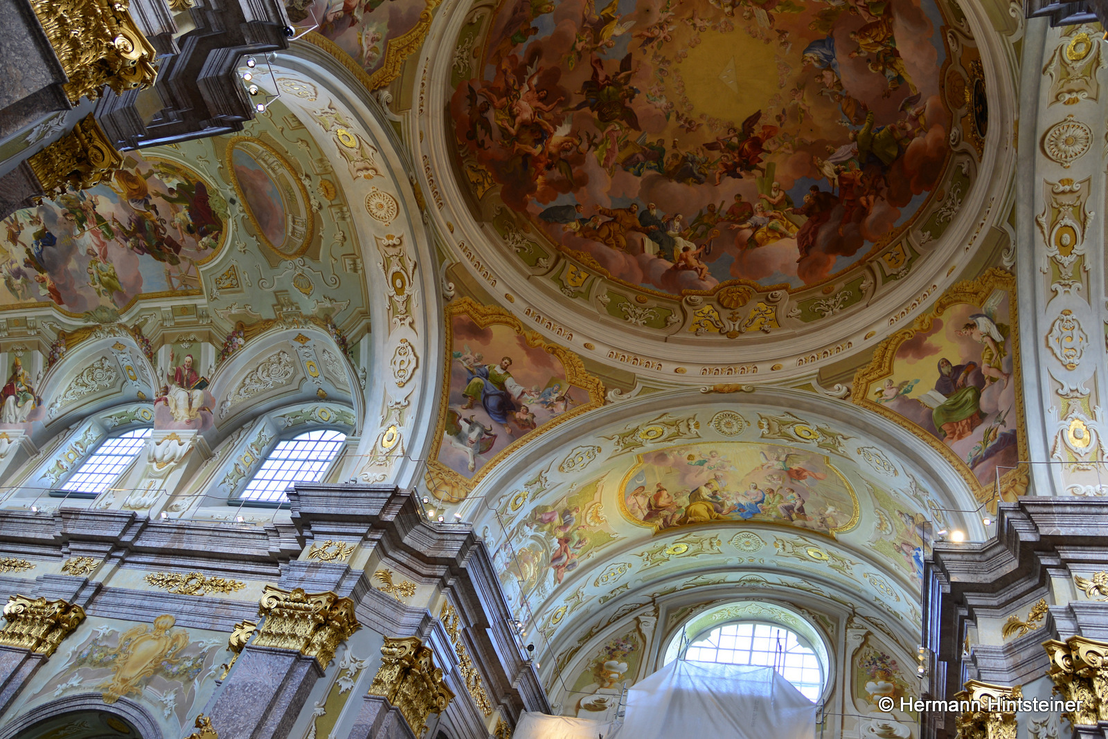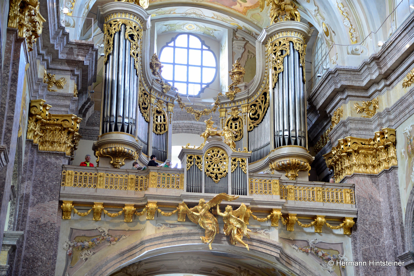 Die Messe in der Basilika wurde dann gemeinsam mit P. Florian und vielen Nachkommenden aus beiden Pfarren gefeiert - musikalisch begleitet von der Blasmusikkapelle Biberbach und einem Chor, der sich aus den Chören von Biberbach und St. Georgen zusammensetzte (an der Orgel: Maria Sonnleitner jun.). Unter der Leitung von Maria Rittmannsberger vereinten sich die Stimmen und erfreuten uns mit der "Friedensmesse" von Lorenz Maierhofer und dem "Locus iste" von Bruckner.