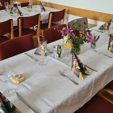 Die kulinarische Versorgung hat der Pfarrgemeinderat übernommen, allen voran die stellvertretende Vorsitzende Annemarie Hörlendsberger. Man stelle sich vor: 15 kg Zwiebel und ebensoviel Fleisch wurden von ihr zu Gulasch verarbeitet - es schmeckte hervorragend. Und zum Abschluss gab's noch köstliche Mehlspeisen zum Kaffee.