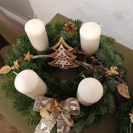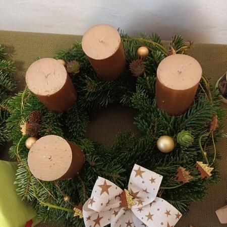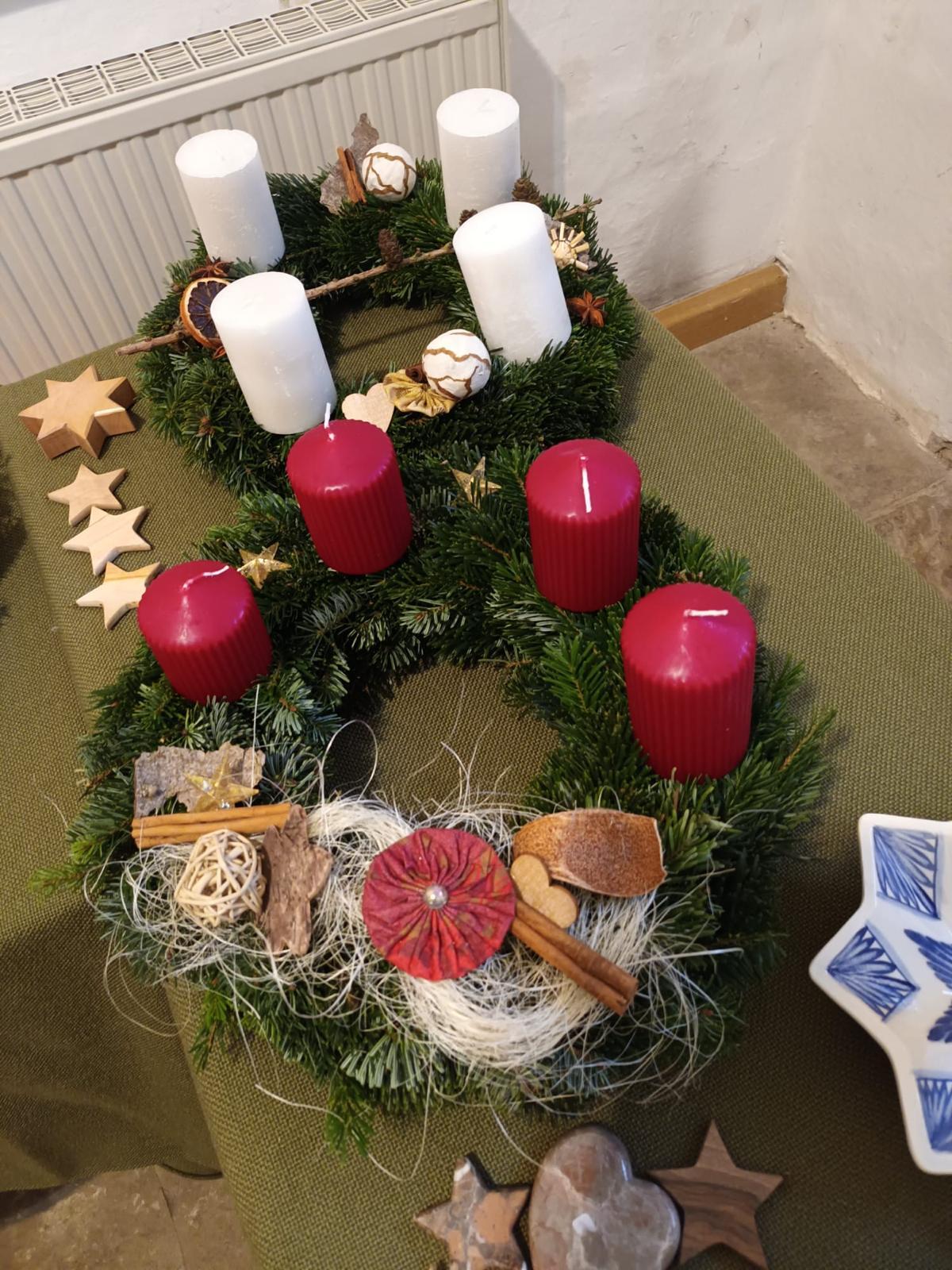 Im Anschluss an den Gottesdienst luden die Damen der Katholischen Frauenbewegung zu einem gemütlichen Pfarrkaffee ein. Zusätzlich fand ein kleiner Bastelmarkt statt, bei dem unter anderem die von den Frauen gebundenen Adventkränze ihre Abnehmer fanden.