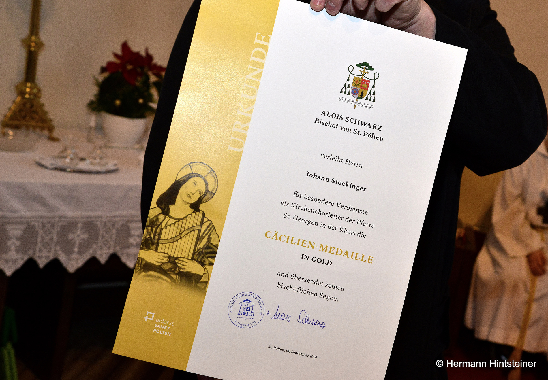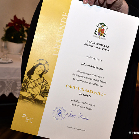 Für besondere und langjährige Verdienste um die Kirchenmusik in leitender Funktion gibt es in unserer Diözese die sog. "Cäcilienmedaille" (die heilige Cäcilia gilt als Patronin der Kirchenmusik).