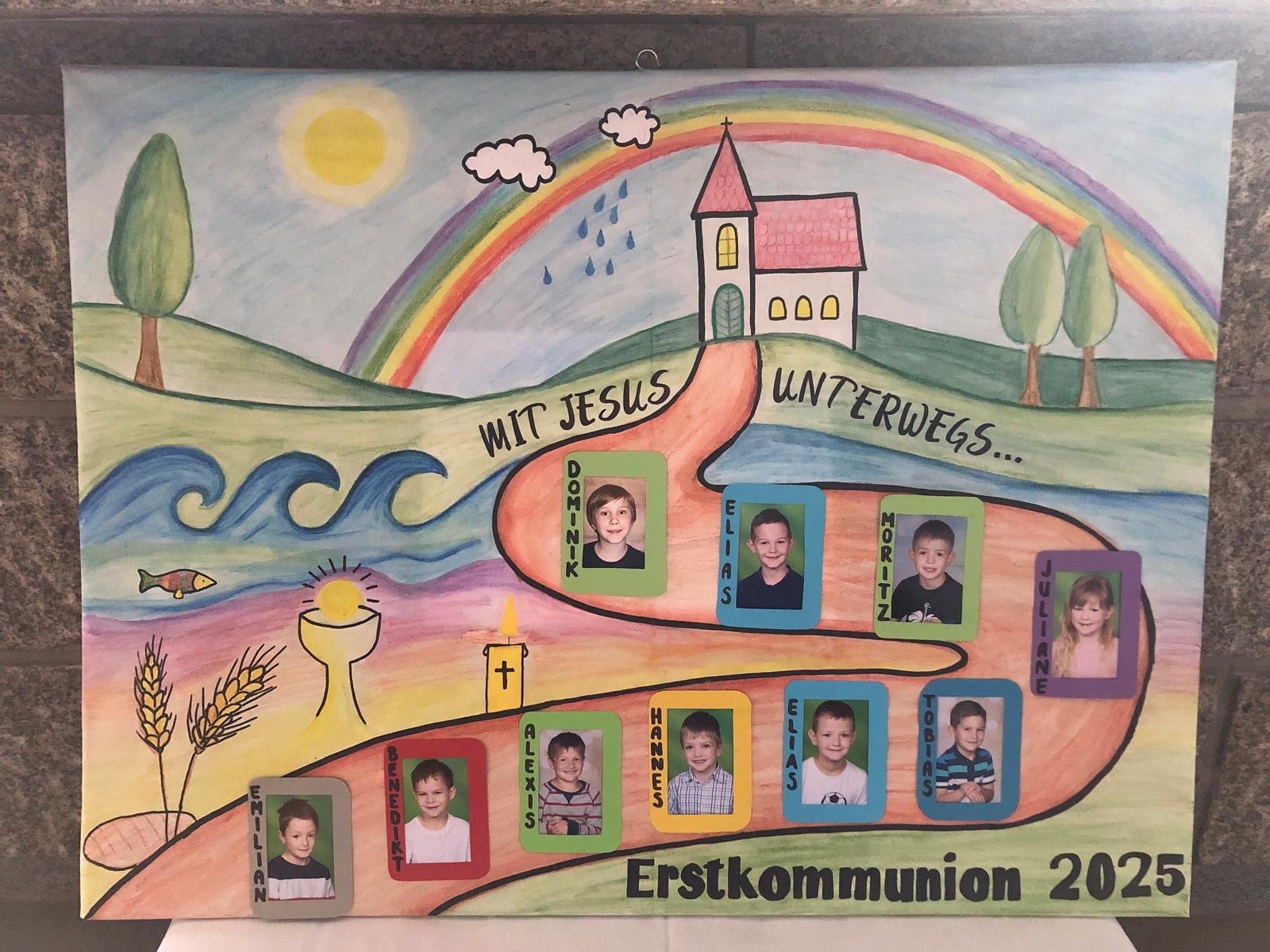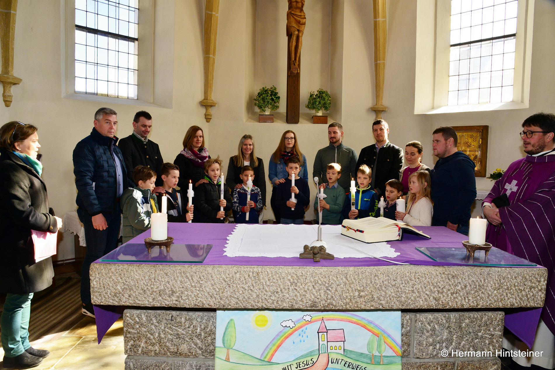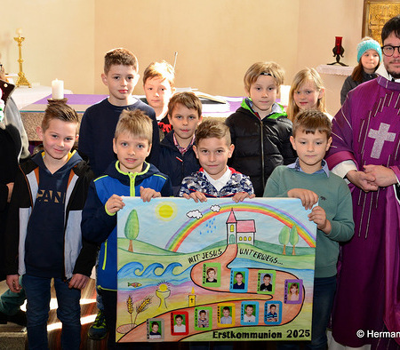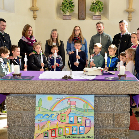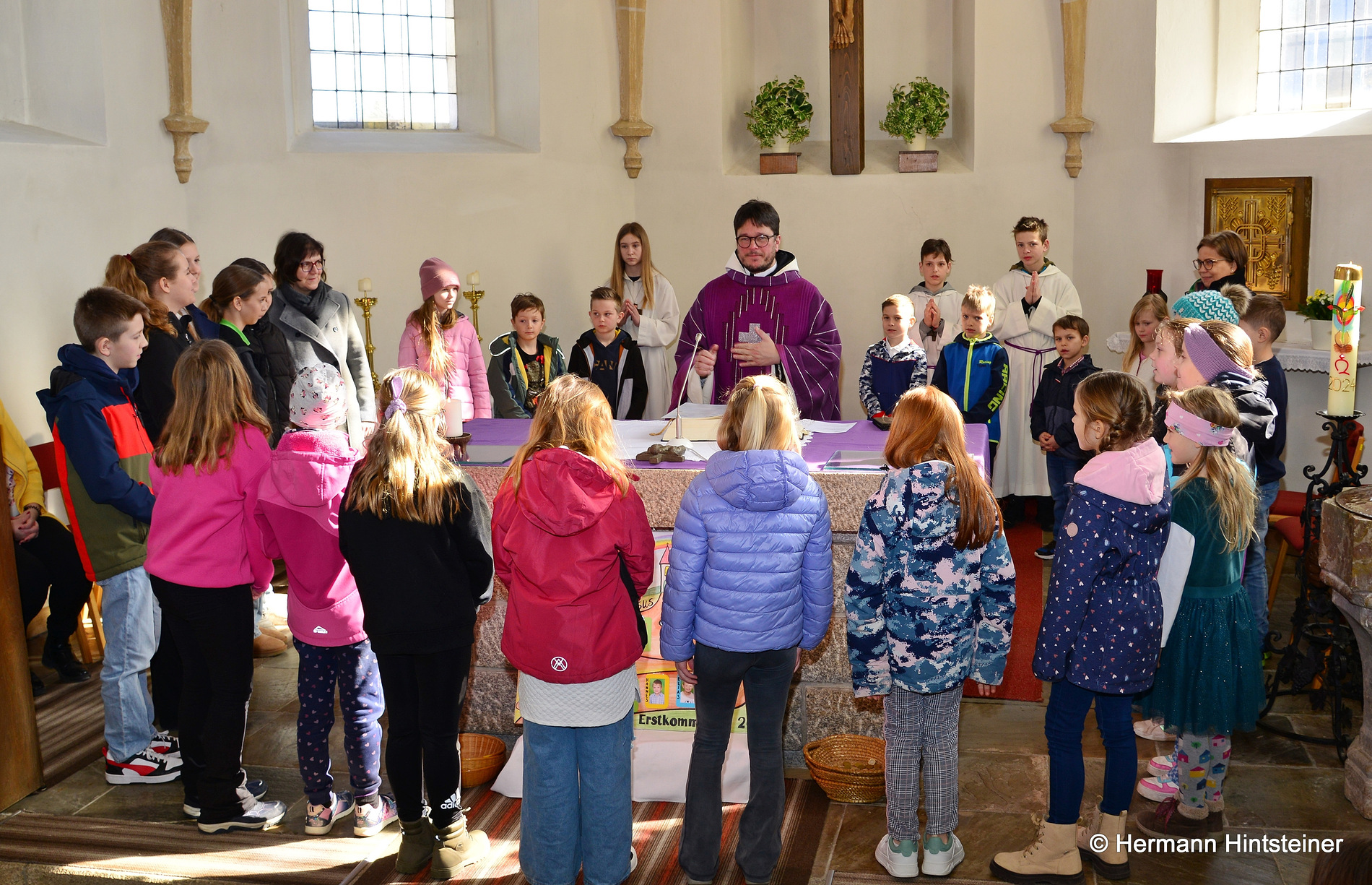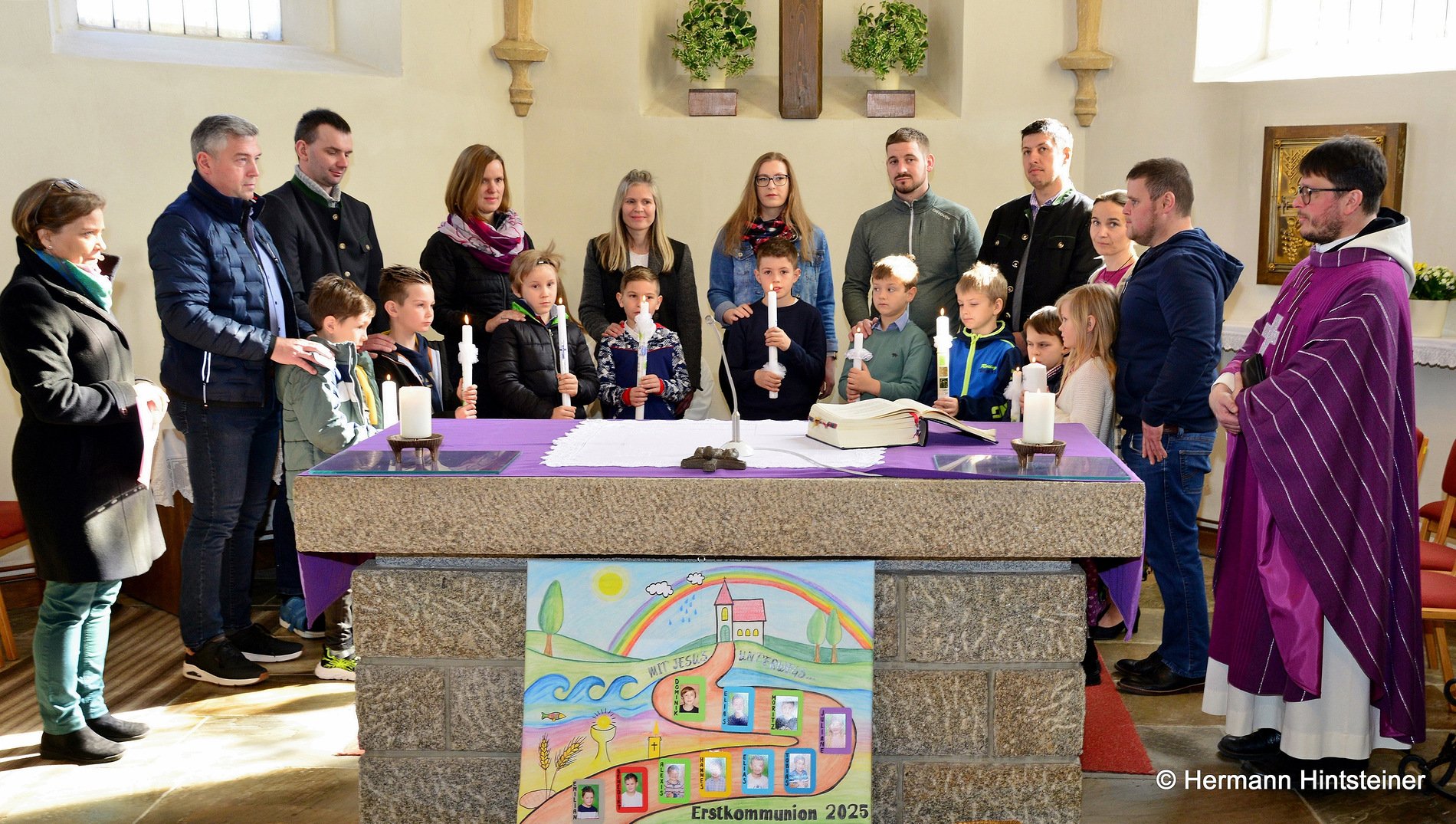 10 Kinder - Juliane Hinterderfler, Tobias Aigner, Alexis Böhm-Bruynincx, Elias Furtner, Moritz Haselsteiner, Dominik Leichtfried, Hannes Schörghuber, Elias Stockinger, Emilian Tanzer und Benedikt Zechberger - bereiten sich heuer in unserer Pfarre auf die Erstkommunion am 18. Mai vor.