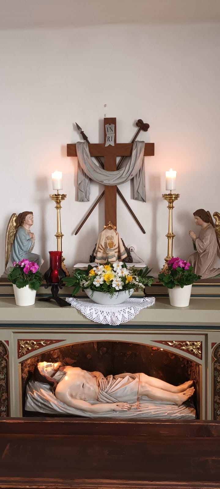 Mesnerin Maria hatte in der Osterzeit besonders viel zu tun - nicht nur in der Kirche, sondern auch beim Rasenmähen am Friedhof, das wieder gestartet wurde. Palmzweige für den Palmsonntag wurden von Fam. Sonnleitner zur Verfügung gestellt. In der Karwoche brachte ein Putztrupp unter der Leitung von Gerlinde Geiblinger die Kirche auf Hochglanz und Aloisia Hintsteiner übernahm die Verköstigung nach getaner Arbeit. Auch die MinistrantInnen investierten zusätzliche Zeit, denn Proben für einen reibungslosen Ablauf während der Gottesdienste standen auf dem Plan. Hermann Hintsteiner hat wieder viele Eindrücke für uns auf Bildern festgehalten. Dass die musikalische Gestaltung des Hochamtes viel Proben erfordert, versteht sich von selbst. Die Chorleiterin hat dies zusätzlich mit der kleinen Madlen gemacht, die bei fast allen Proben und bei der Aufführung dabei war. Dass sie das geschafft hat, ist sicher eine besondere Leistung und verdient zusätzliche Anerkennung.