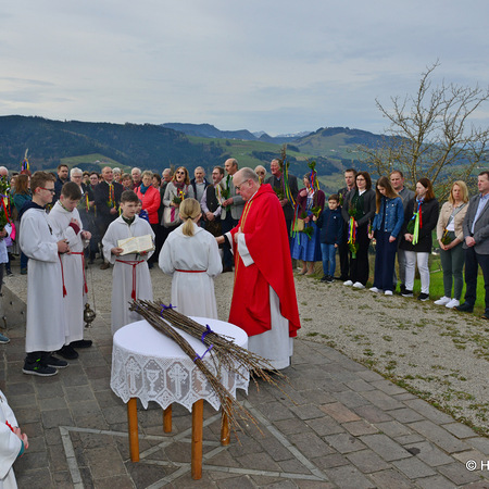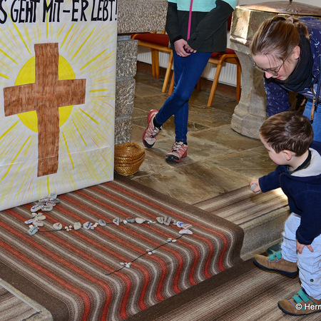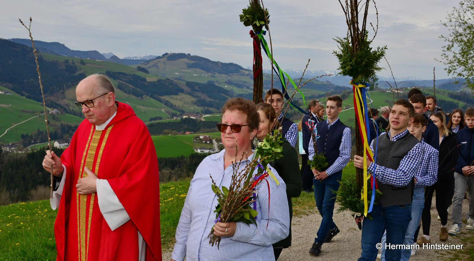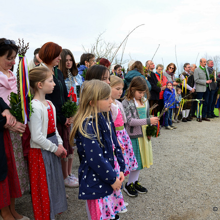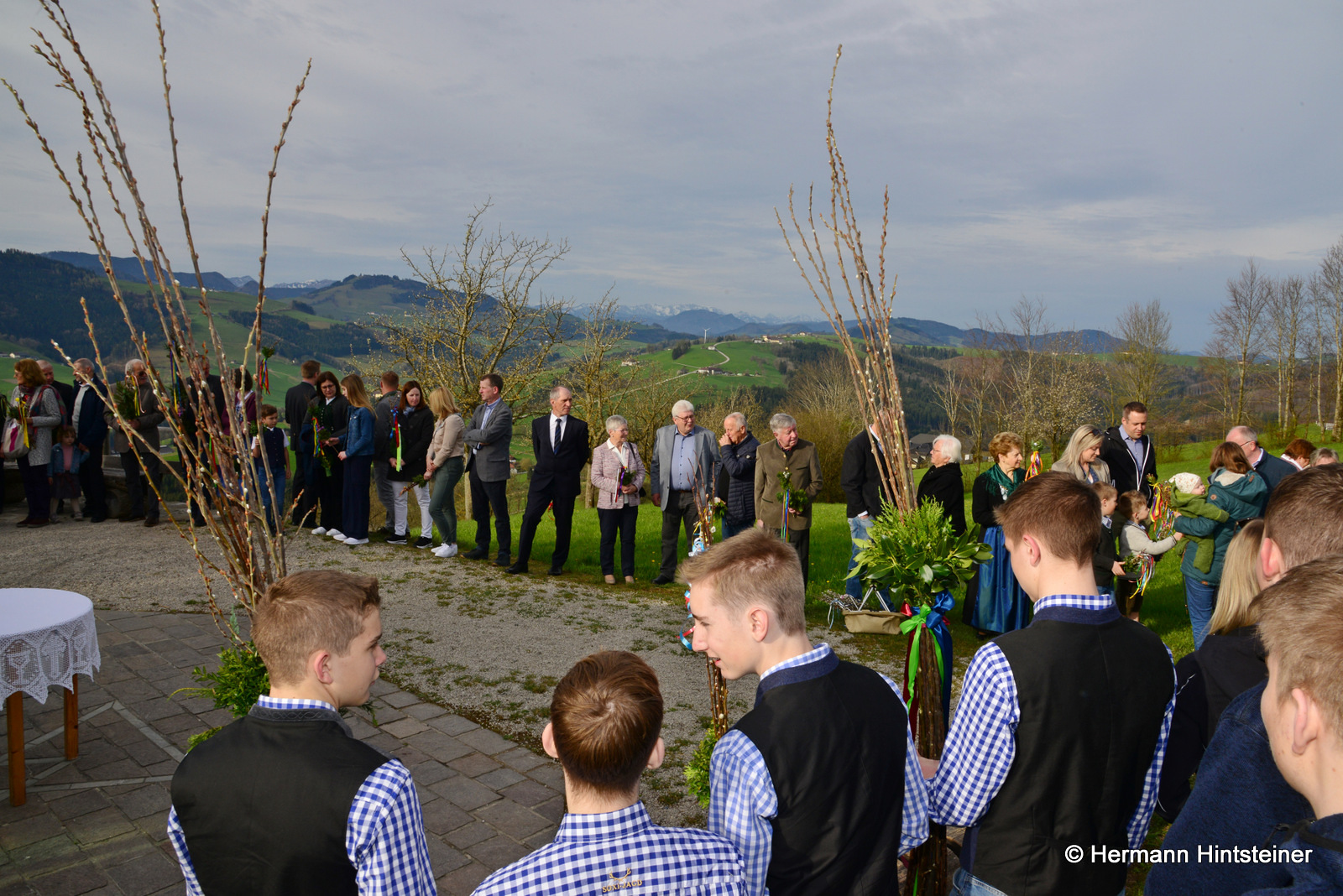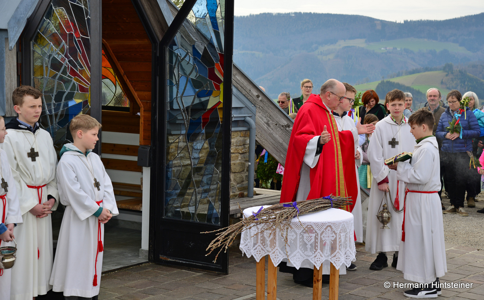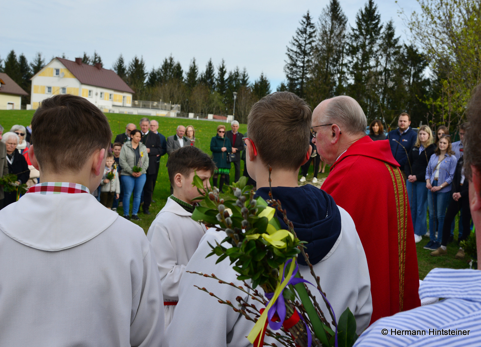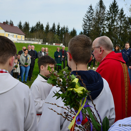 Vier Kreuzwege wurden an Sonntagen in der Fastenzeit bereits vor der Heiligen Messe abgehalten. Gestaltet wurden sie heuer durch die Kath. Frauenbewegung, dem Pfarrgemeinderat, der Landjugend sowie P. Florian. Auch die Senioren gestalteten einen Kreuzweg vor dem monatlich stattfindenden Treffen. Zur persönlichen Besinnung bestand die Möglichkeit, am Einkehrtag mit Mag. Herbert Döller teilzunehmen. Zum Abend der Versöhnung waren wir ins Stift Seitenstetten eingeladen. Es handelte sich um einen Gottesdienst mit Möglichkeit zur Beichte und Aussprache. Am Palmsonntag wurde mit P. Ägid dem Einzug Jesu nach Jerusalem gedacht. Besonders viele kleine und große Mitfeiernde fanden sich an diesem frühlingshaften Morgen bei der Kreuzkapelle ein, wo die Palmzweige gesegnet wurden. Die Liturgie des Gründonnerstages wurde ebenfalls im Stift Seitenstetten gefeiert - ein tief berührendes Erlebnis. Bei der traditionellen Karfreitagsliturgie um 15:00 Uhr trugen die Firmlinge mit P. Laurentius in verteilten Rollen die Leidensgeschichte vor. Traditionsgemäß hielten am Karsamstag tagsüber Männer der Pfarre die Ehrenwache beim Heiligen Grab.