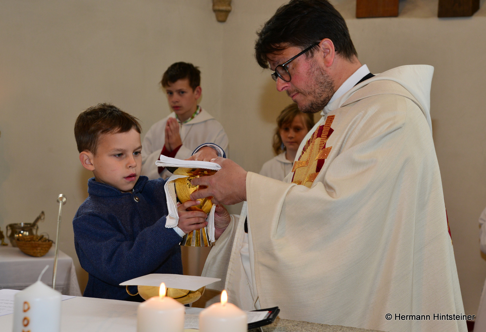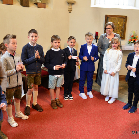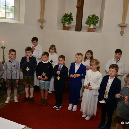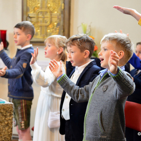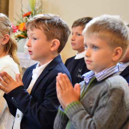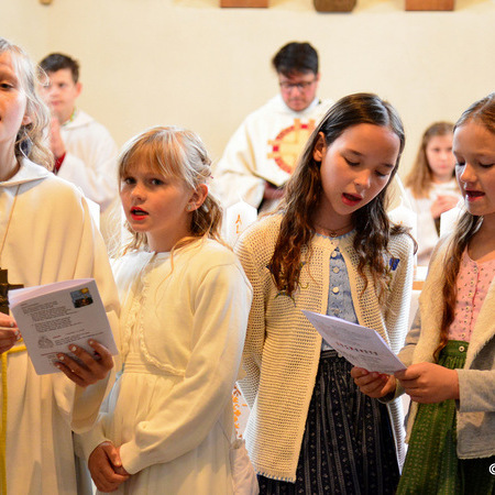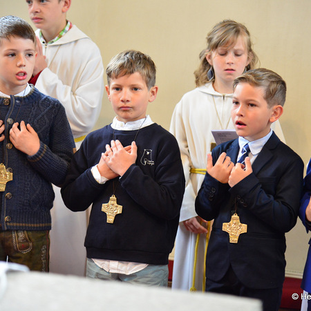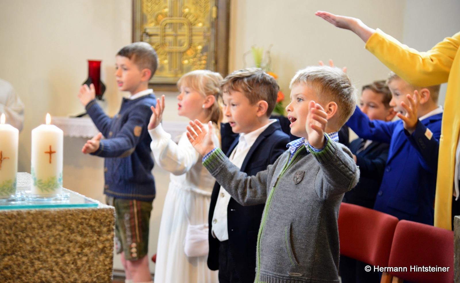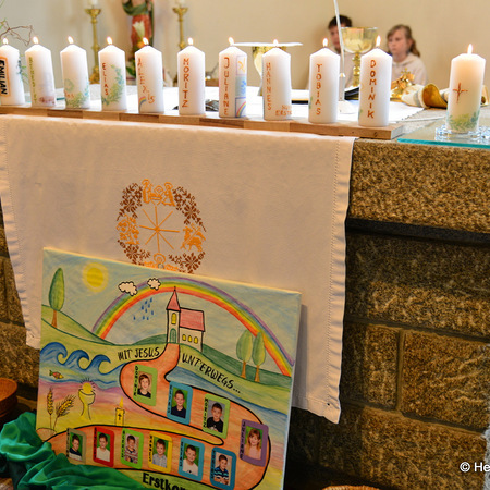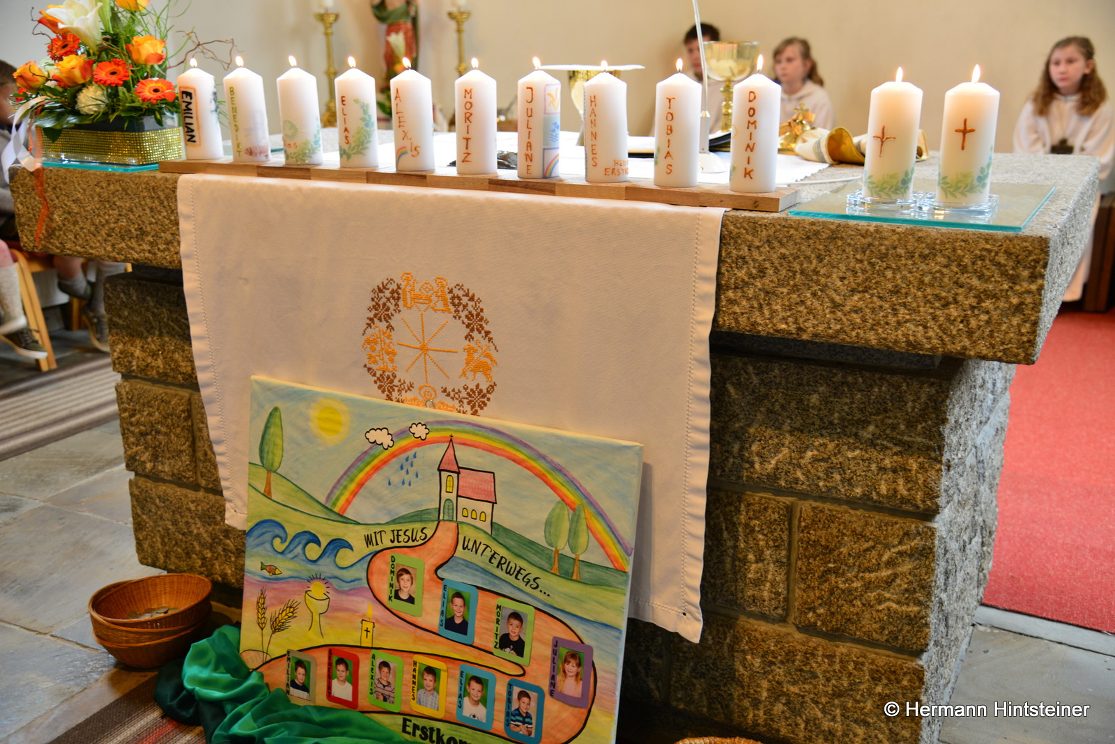 Sie haben sich in den vergangenen Monaten unter dem Motto "Mit Jesus unterwegs" intensiv auf diesen Tag gemeinsam mit Religionslehrerin Rosemarie Schnabel vorbereitet: Lieder und Texte wurden geübt, wichtige Abschnitte der Frohen Botschaft der Bibel wurden besprochen, das Versöhnungsfest mit Sakrament der Beichte gefeiert, Brot gebacken... Mit P. Forian wurden bei drei Weg-Gottesdiensten betend die großen Teile der Heiligen Messe erschlossen.