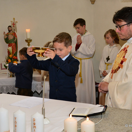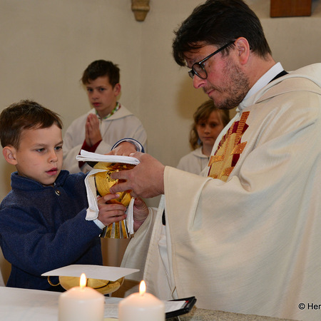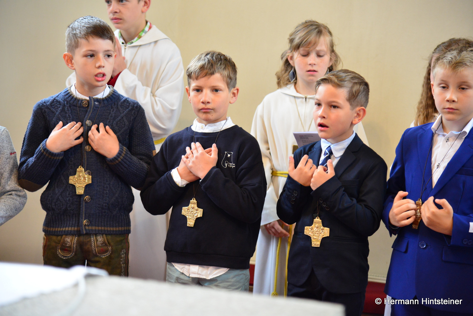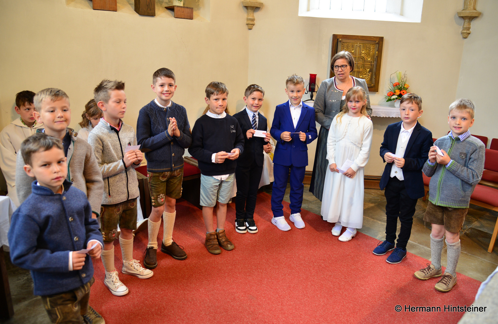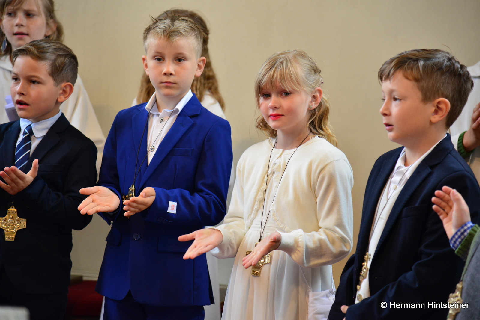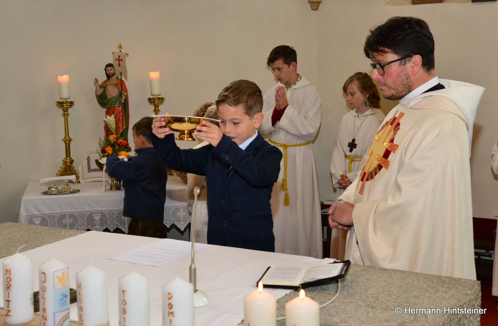 Sie haben sich in den vergangenen Monaten unter dem Motto "Mit Jesus unterwegs" intensiv auf diesen Tag gemeinsam mit Religionslehrerin Rosemarie Schnabel vorbereitet: Lieder und Texte wurden geübt, wichtige Abschnitte der Frohen Botschaft der Bibel wurden besprochen, das Versöhnungsfest mit Sakrament der Beichte gefeiert, Brot gebacken... Mit P. Forian wurden bei drei Weg-Gottesdiensten betend die großen Teile der Heiligen Messe erschlossen.