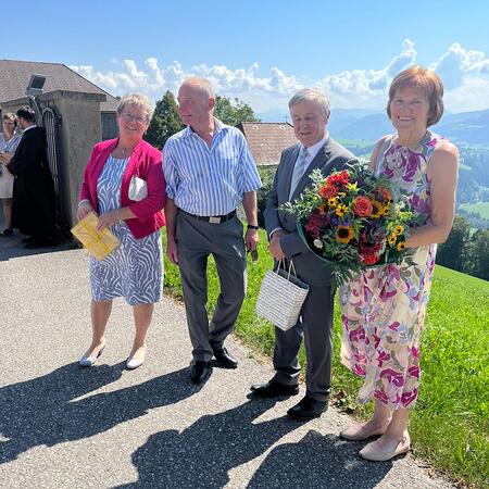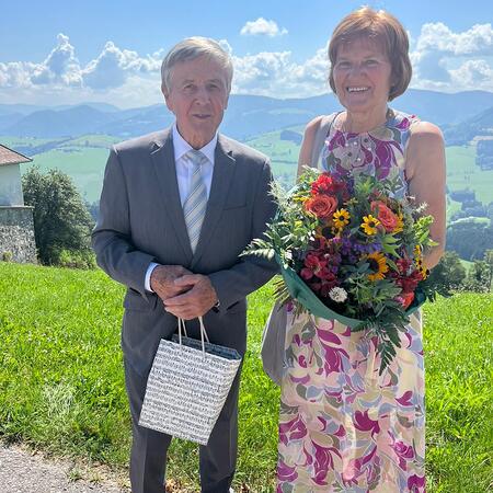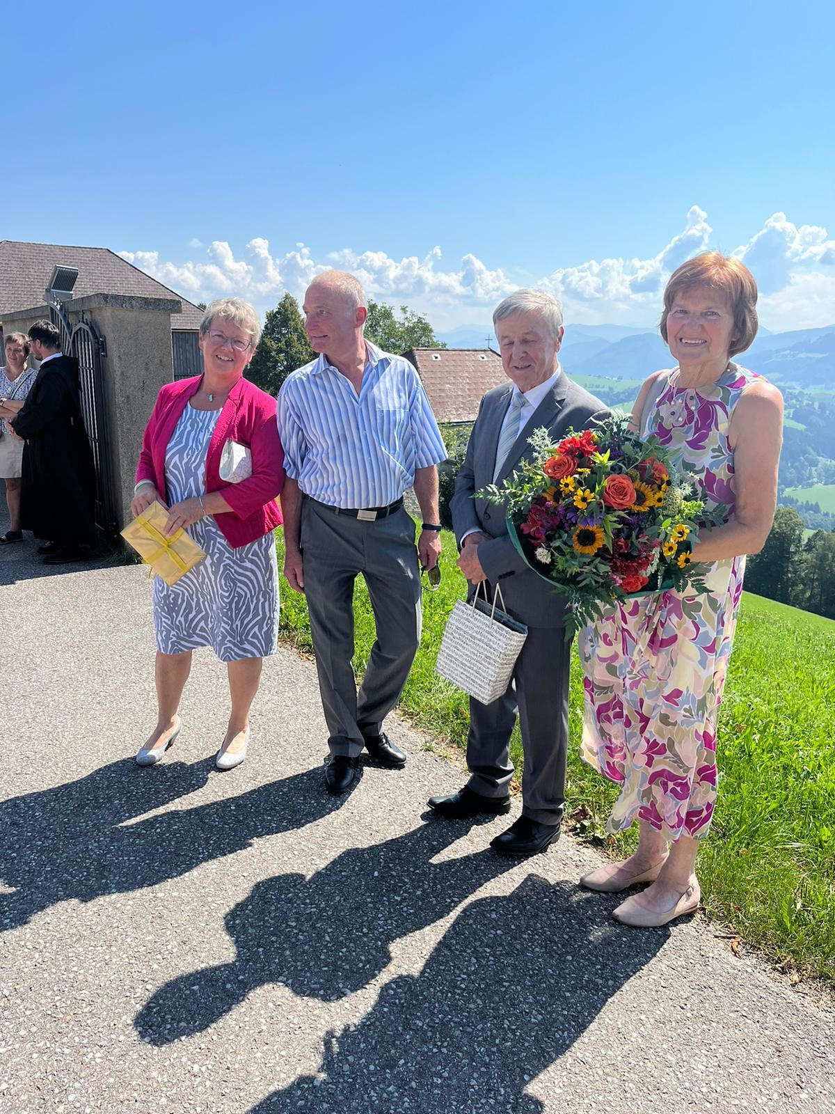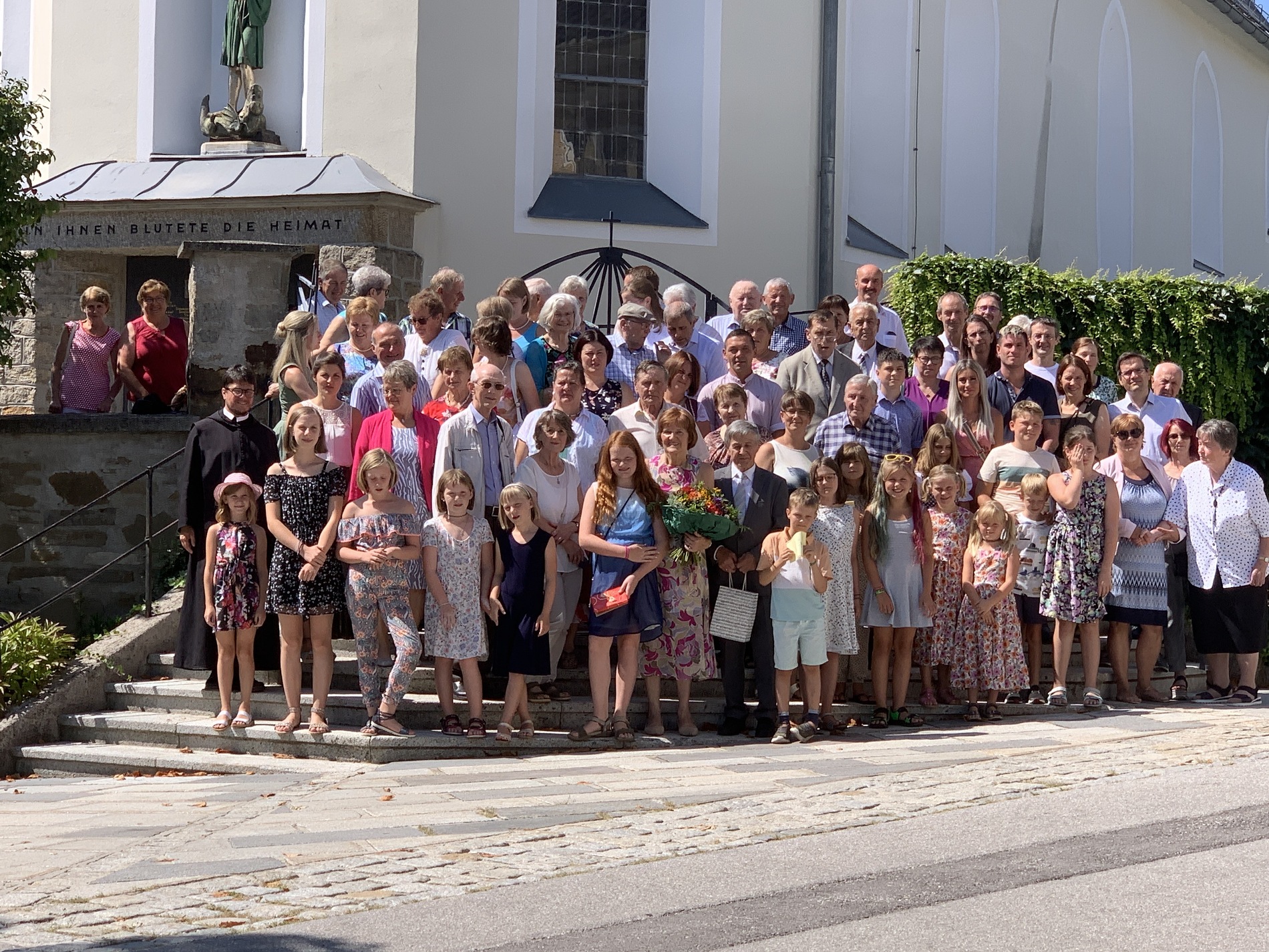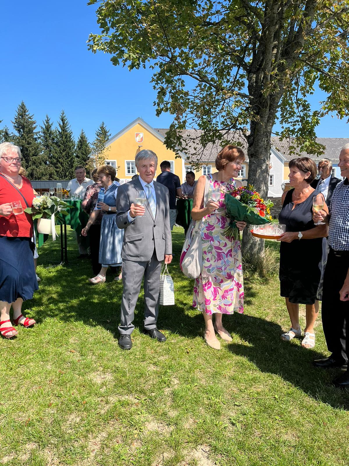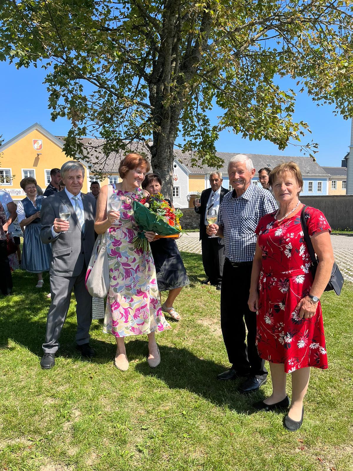 Als Pfarre gratulieren wir recht herzlich: Vroni und Hans Stockinger feierten am Samstag, 19. August, das Fest ihrer Goldenen Hochzeit mit einem feierlichen Gottesdienst in der Pfarrkirche. Der Kirchenchor gestaltete die Messe musikalisch, Kinder und Enkelkinder übernahmen den Lektorendienst. Maria Gruber (PGR) und P. Florian dankten dem Jubelpaar für ihr so großes Engagement: als Kirchenchorleiter, Organist, Kantorin, im Vorbereiten des Liedplanes oder Gestalten der Gottesdienstordnung, Organisation Wallfahrt Mariazell .... Im Anschluss wurde auf der Dorfwiese auf das schöne Ereignis angestoßen. Dank an unsere Senioren, die die Agape organisierten.
