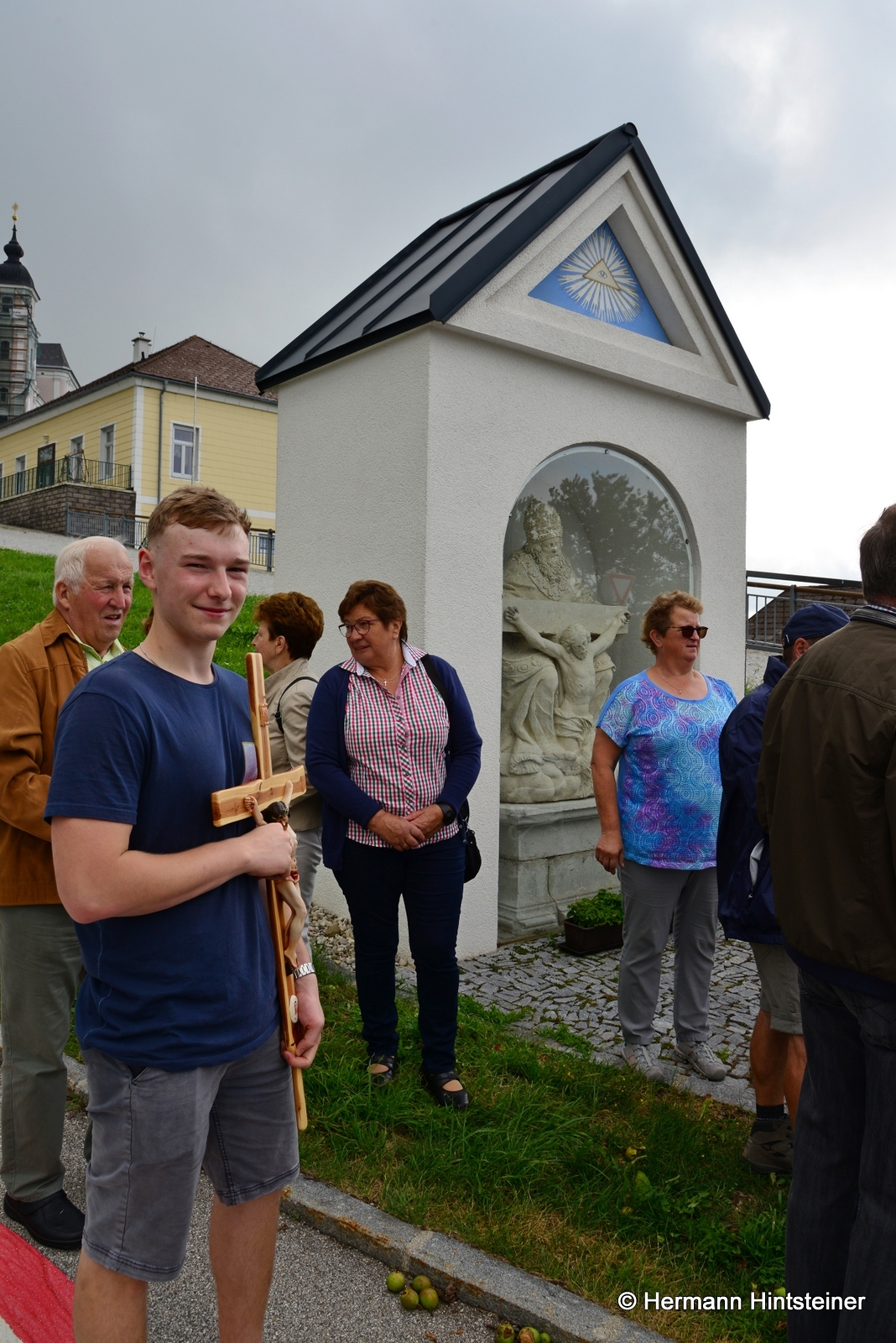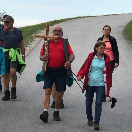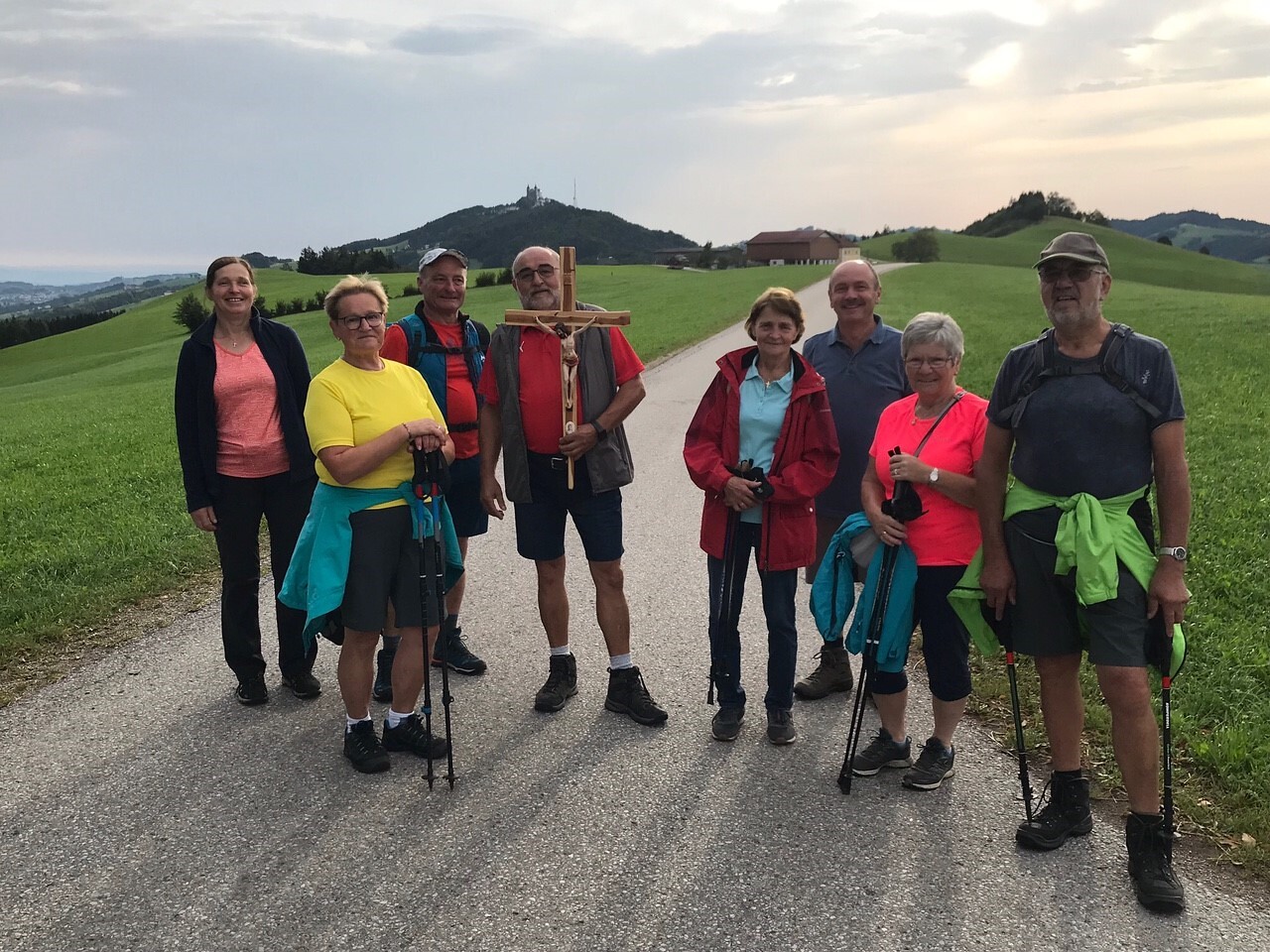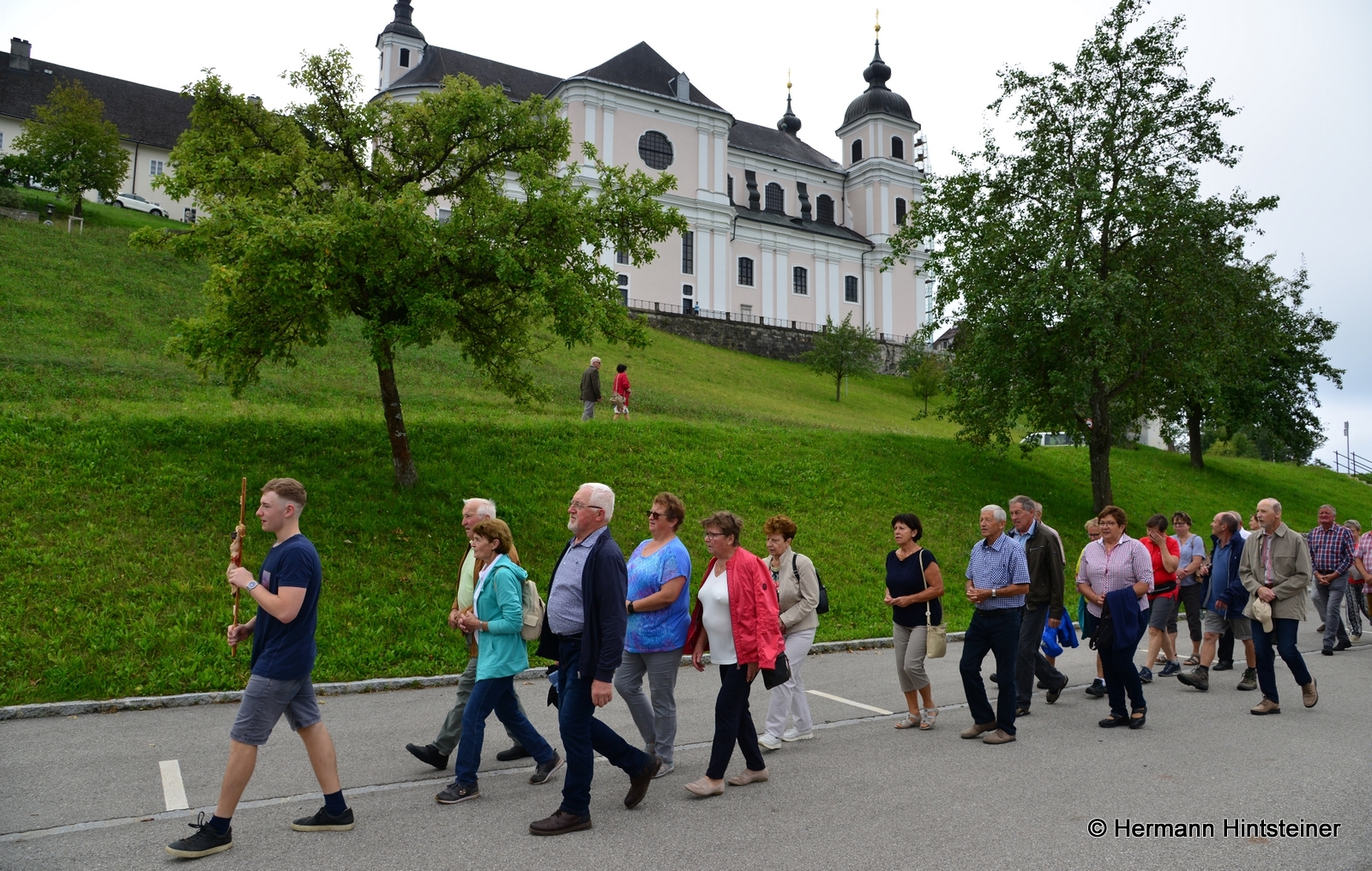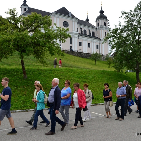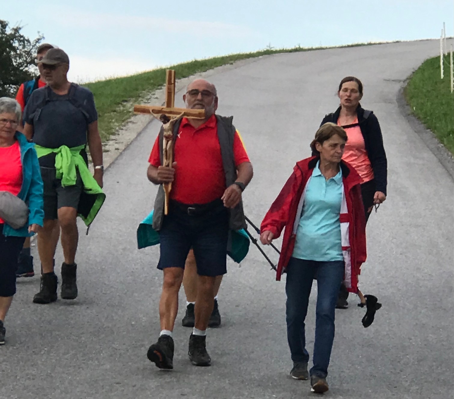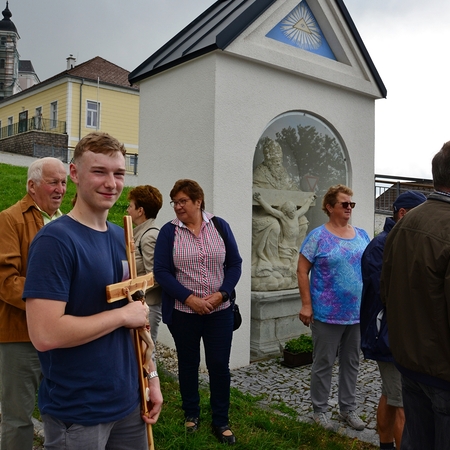 Am Sonntag, den 27. August fand unsere alljährliche Familienwallfahrt statt. Nach dem durch P. Florian erteilten Wallfahrersegen startete eine kleine Gruppe zu Fuß Richtung Sonntagberg. Einige Pilgerinnen und Pilger schlossen sich unterwegs noch an und so war es schließlich eine Schar von 18 Personen, die auf dem Wangelsteig den Berg hinauf marschierten. Bei der Dreifaltigkeitskapelle wurden sie dann von zahlreichen weiteren Pfarrangehörigen erwartet. Wir feierten dann mit P. Florian die Messe, die von einem Bläserensemble und Peter Putzer an der Orgel feierlich umrahmt wurde. Ein herzliches Dankeschön dafür und auch an Maria Gruber, die die Fußwallfahrt leitete und uns bereits unterwegs und am Schluss der Messe schöne spirituelle Gedanken mit auf den Weg gab.