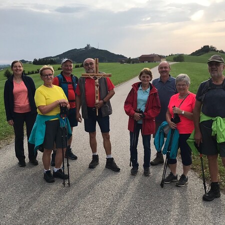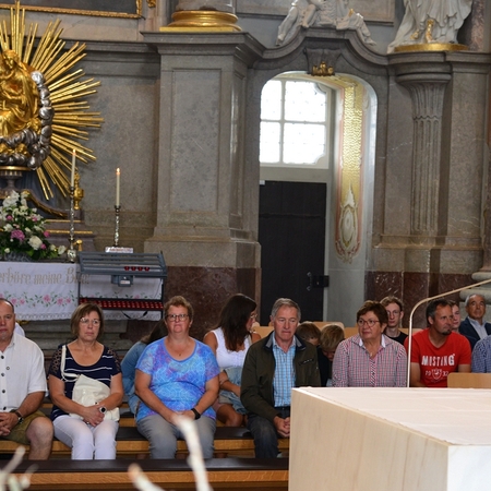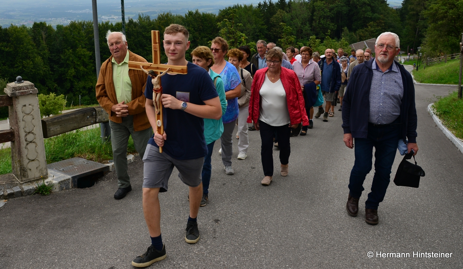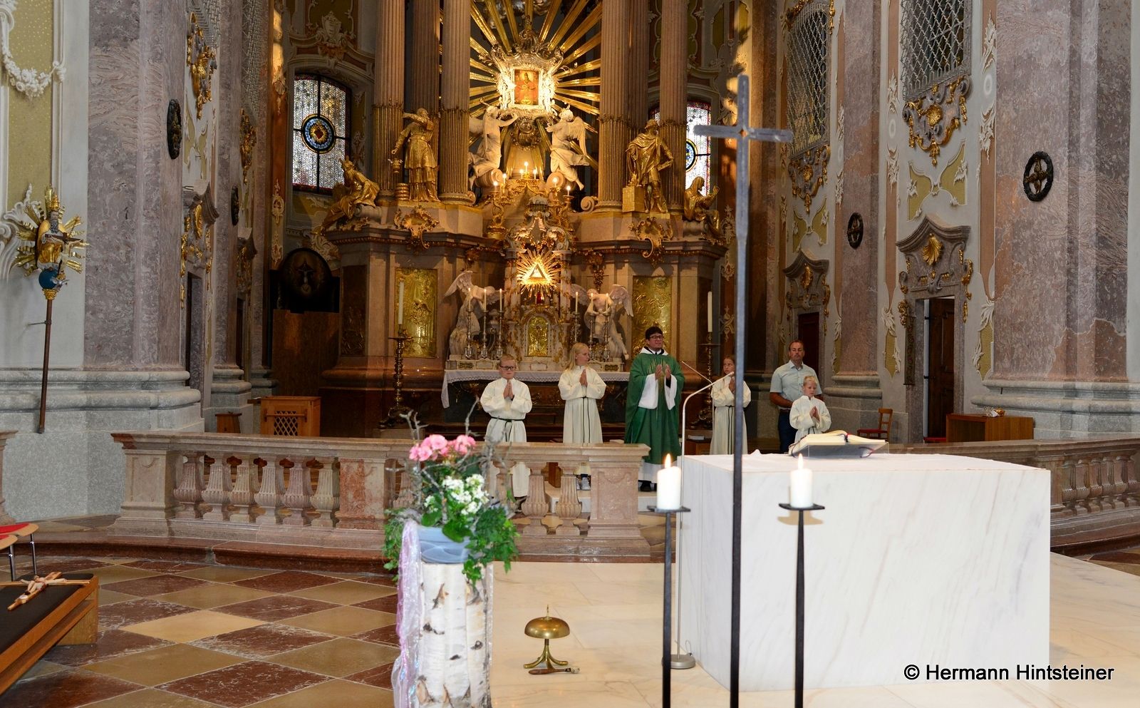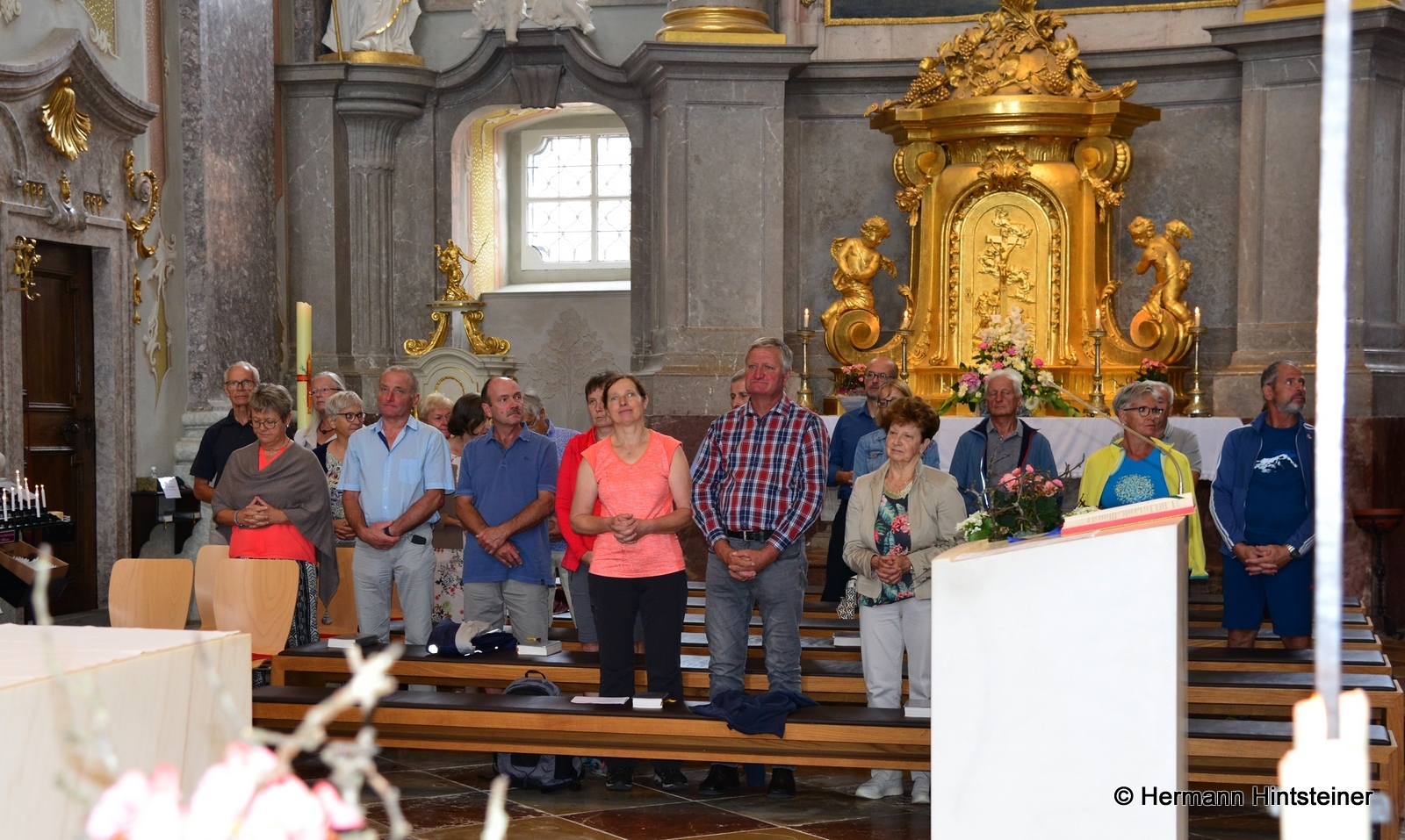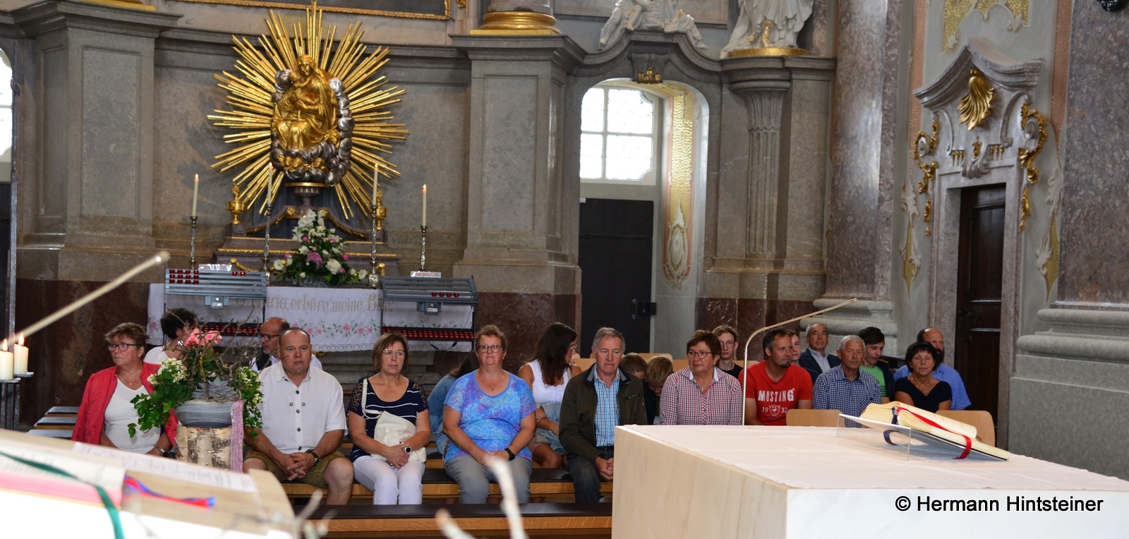 Am Sonntag, den 27. August fand unsere alljährliche Familienwallfahrt statt. Nach dem durch P. Florian erteilten Wallfahrersegen startete eine kleine Gruppe zu Fuß Richtung Sonntagberg. Einige Pilgerinnen und Pilger schlossen sich unterwegs noch an und so war es schließlich eine Schar von 18 Personen, die auf dem Wangelsteig den Berg hinauf marschierten. Bei der Dreifaltigkeitskapelle wurden sie dann von zahlreichen weiteren Pfarrangehörigen erwartet. Wir feierten dann mit P. Florian die Messe, die von einem Bläserensemble und Peter Putzer an der Orgel feierlich umrahmt wurde. Ein herzliches Dankeschön dafür und auch an Maria Gruber, die die Fußwallfahrt leitete und uns bereits unterwegs und am Schluss der Messe schöne spirituelle Gedanken mit auf den Weg gab.