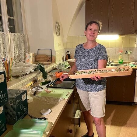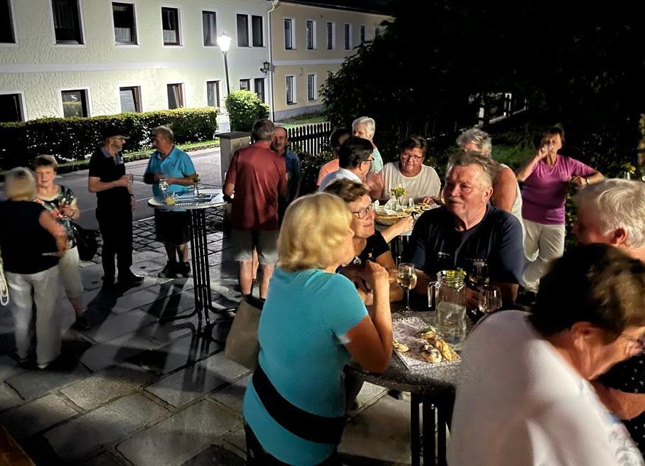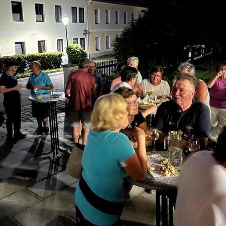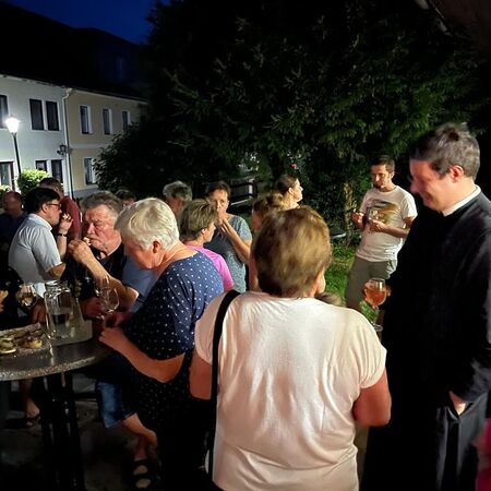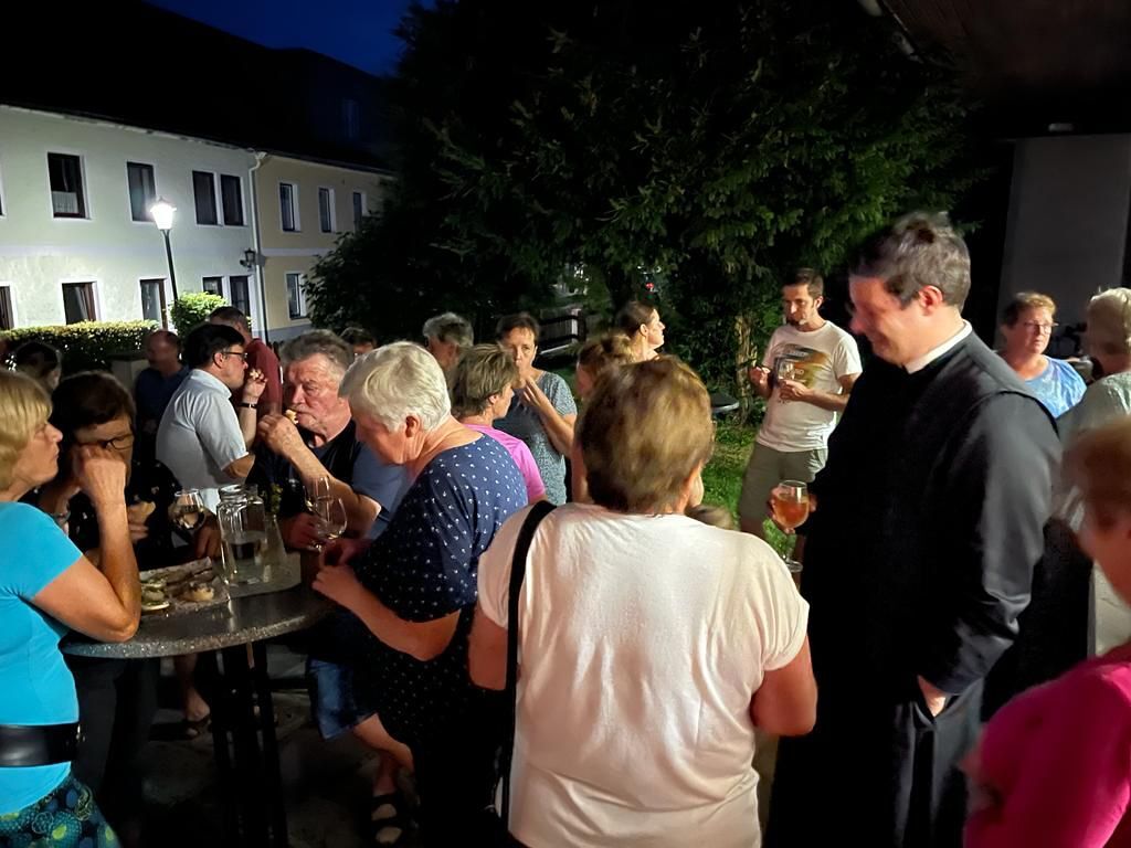 Danach gab es eine vom Pfarrgemeinderat organisierte Agape. Man hatte dabei an einem perfekten Sommerabend die Möglichkeit, im Pfarrgarten mit P. Christoph nett zu plaudern.