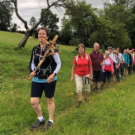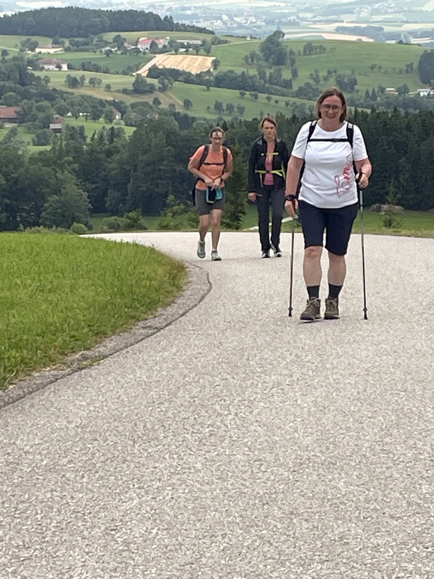 Pilgern ist ja bekannterweise "Beten mit den Füßen", so wie es auch P. Laurentius in der Predigt erwähnte. Es wurde jedoch nicht nur mit den Füßen gebetet, sondern auch mit Mund und Herz. Aber auch zum gemeinsamen Plaudern unterwegs und um unsere schöne Umgebung zu betrachten, war genug Zeit.