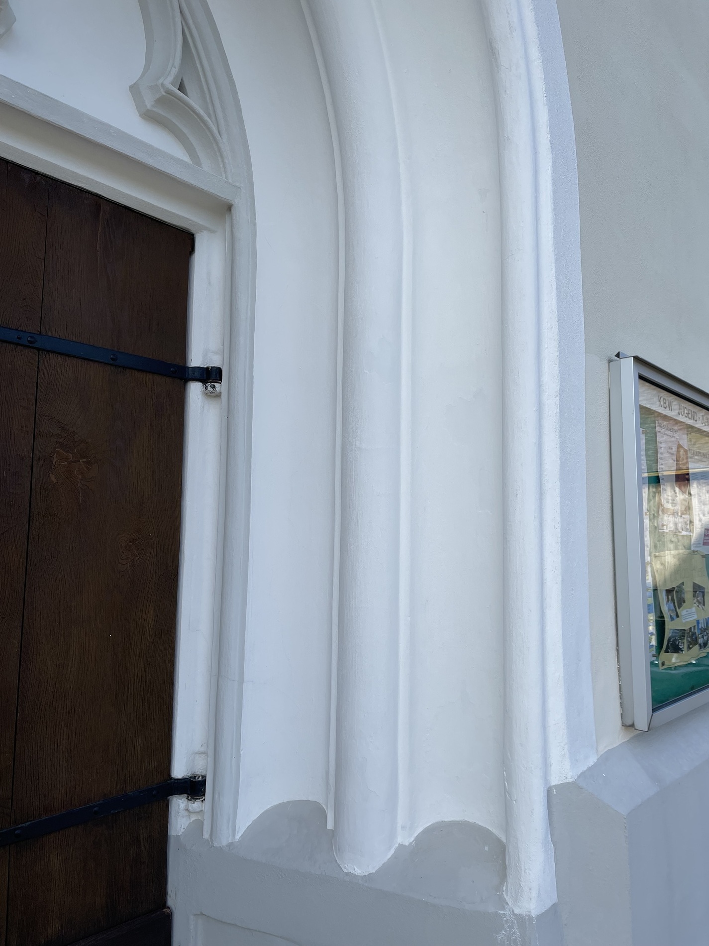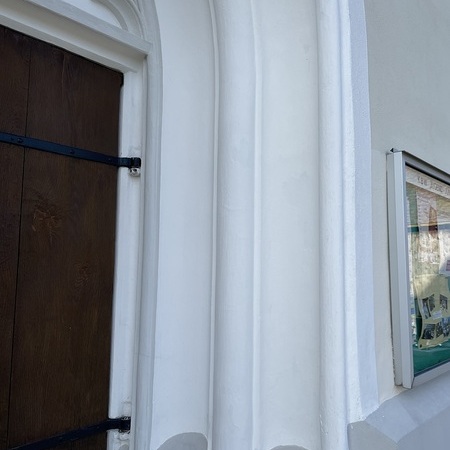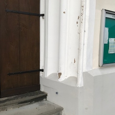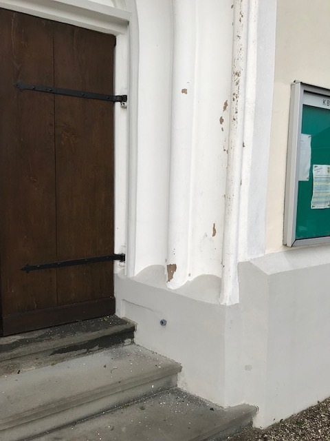 Auch der Eingangsbereich der vorderen Kirchentür erstrahlt wieder im neuen Glanz, denn auch hier waren Beschädigungen durch den Hagel sichtbar gewesen.