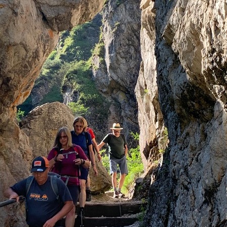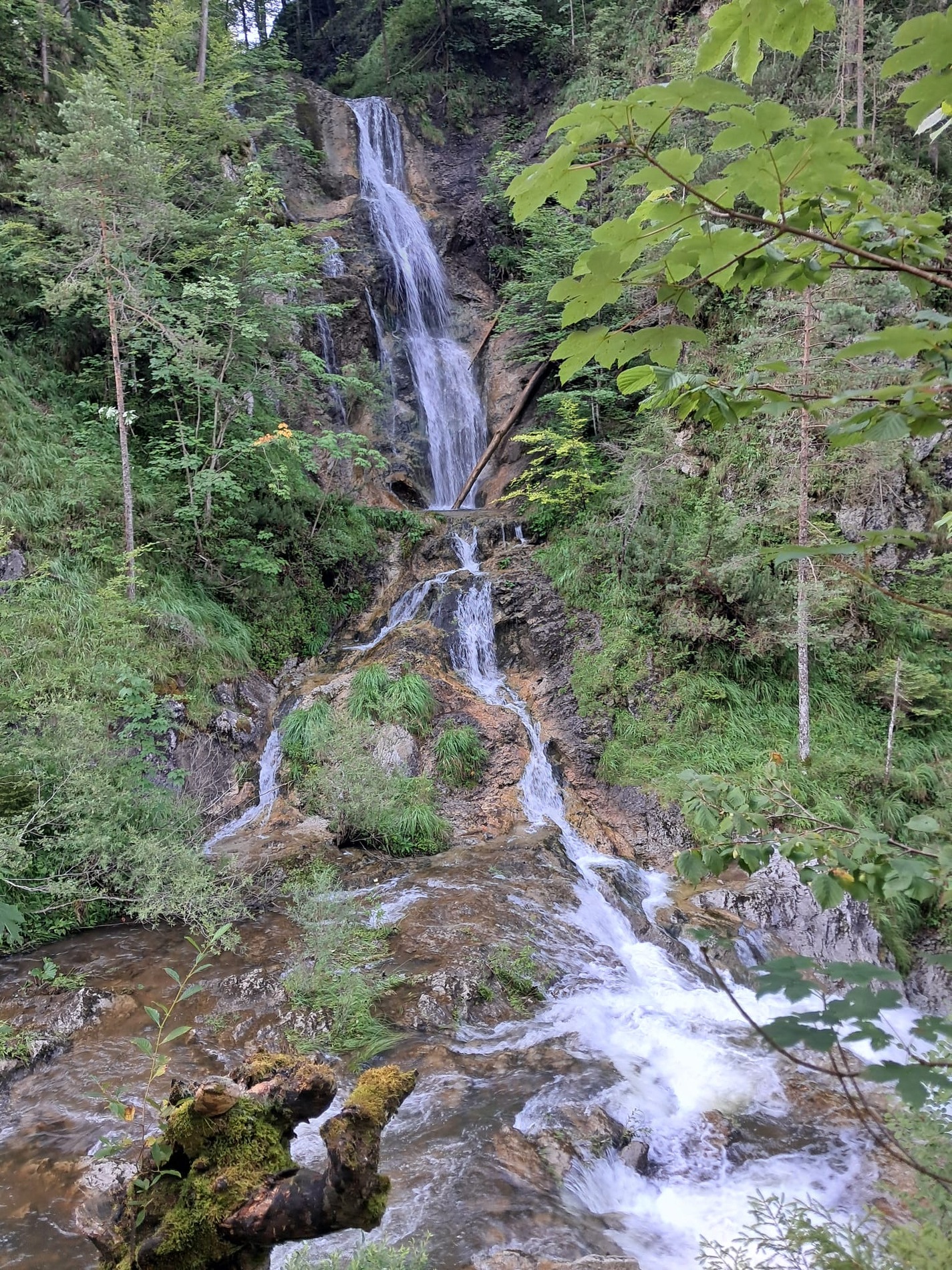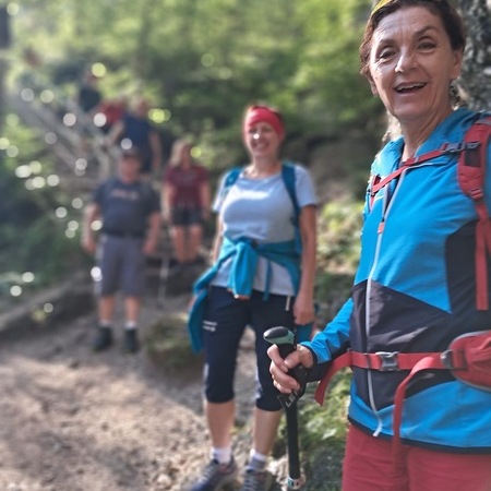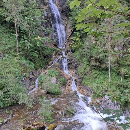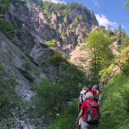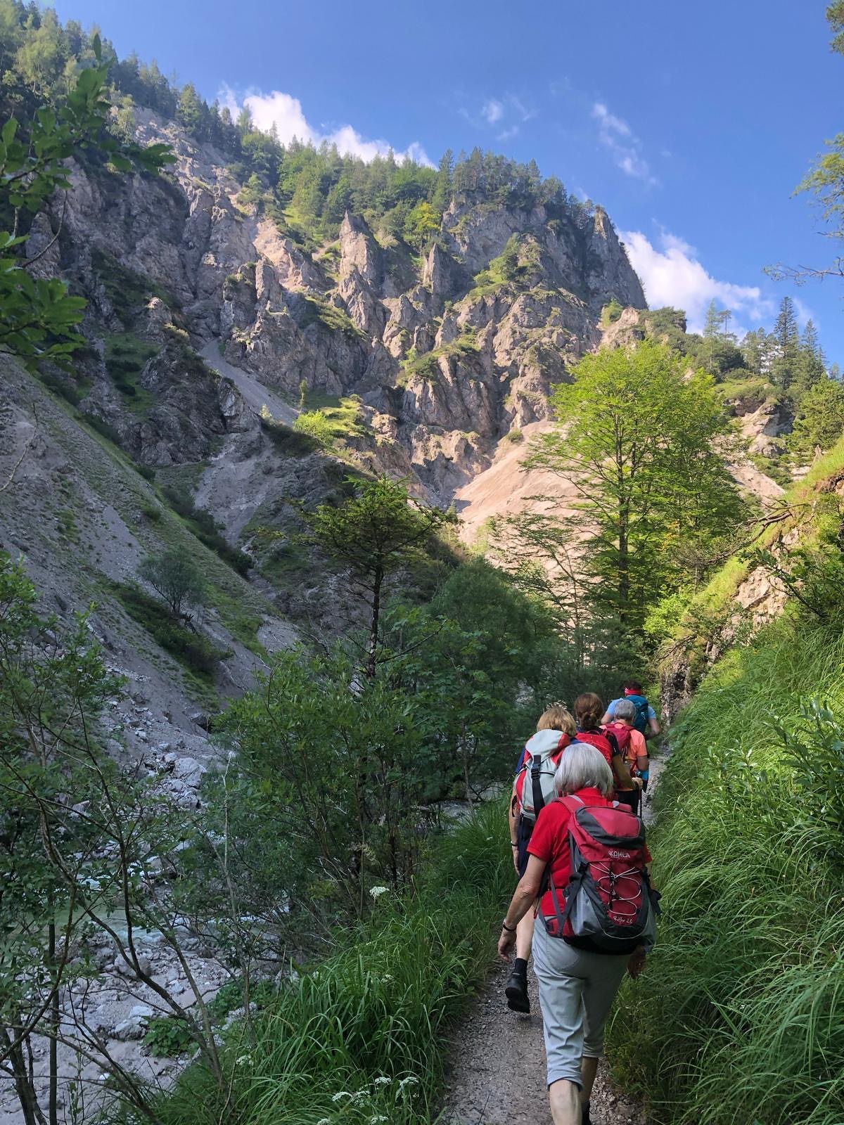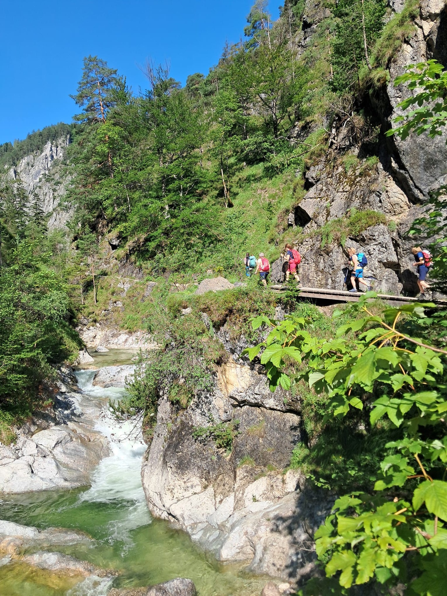 In aller Herrgottsfrühe trafen sich die Teilnehmer bei der Weger Kapelle und mit den Privatautos ging es zunächst nach Annaberg-Reith. Das Wetter hätte nicht besser sein können, den ganzen Tag Sonnenschein und angenehme Temperaturen. Natürlich trug auch die gewählte Route zur guten Stimmung bei. Die Ötschergräben zu durchwandern hat ja immer etwas Besonderes: tosendes Wasser, schroffe Felsen, dazu liebevoll angelegte schmale Wege mit vielen Stufen und Brücken - ein herrliches Naturschauspiel, bei dem keine Müdigkeit aufkommen kann. Die kurze Rast beim Ötscherhias gehörte natürlich auch dazu und verhalf zu neuer Energie für den folgenden Aufstieg zum Hagengut. Dort steht eine kleine Kapelle und in der Gruppe entstand das Bedürfnis, hier eine kurze Andacht abzuhalten. Schließlich war man ja unterwegs nach Mariazell, dem bekanntesten und beliebtesten Wallfahrtsort Österreichs - jeder mit seinen Gedanken und Anliegen.