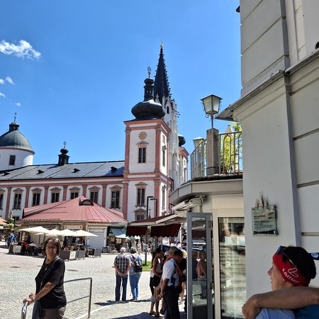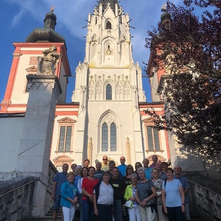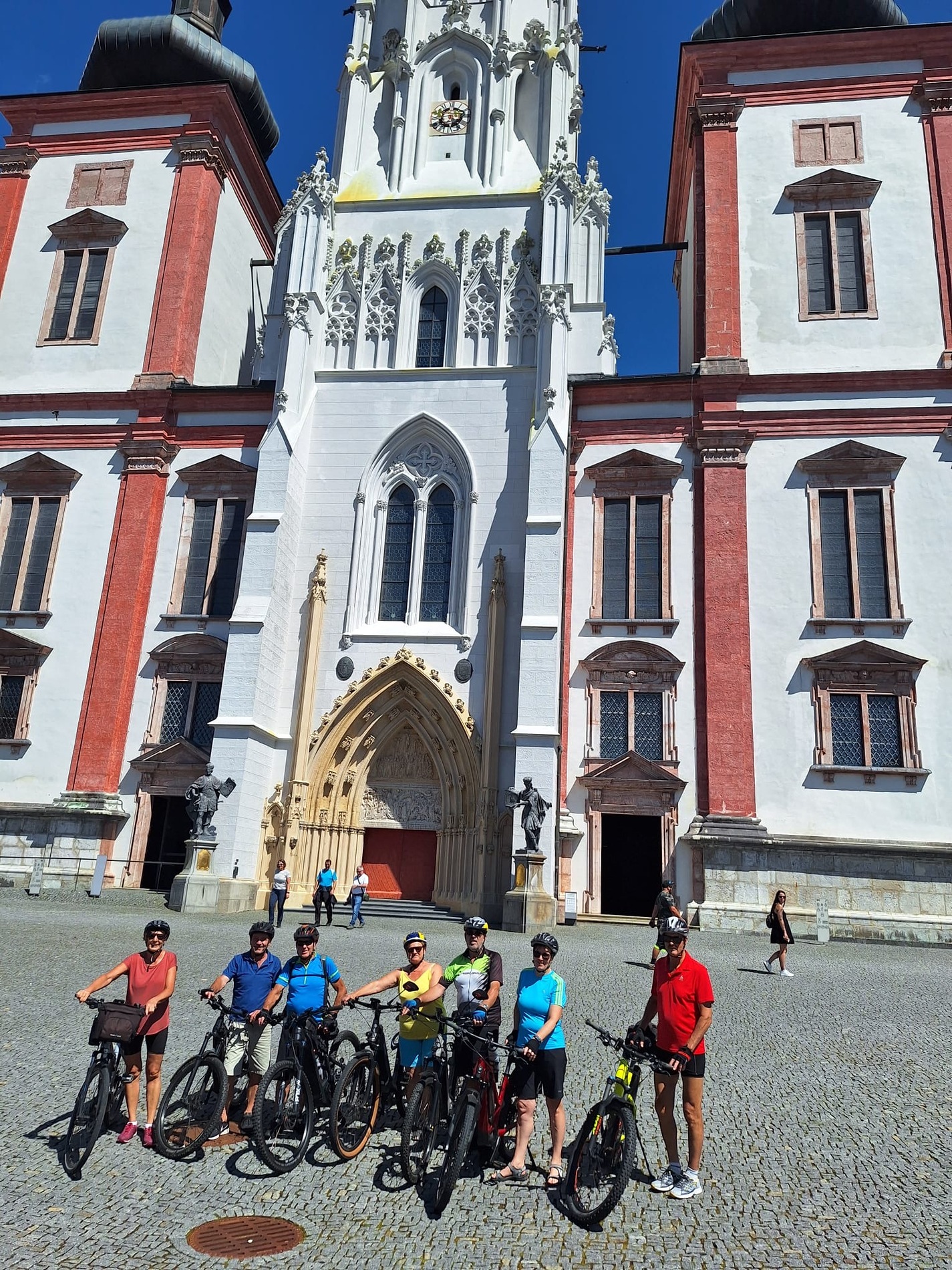 Am Abend fanden sich dann alle in der Basilika ein, ob zu Fuß, per E-Bike oder mit dem Auto angekommen. Miteinander Singen und Beten beim Gnadenaltar, sich besinnen und den Alltag hinter sich lassen - das hat wohl jedem gut getan. Danach noch ein Gruppenfoto, Essen und Trinken in der Mariazeller Gastronomie und im Hotel "Himmelreich" das wohlverdiente Bett genießen - himmlisch! Am Sonntag gab's kein vorgegebenes Programm mehr: frühstücken, Messe besuchen, an den Standeln Mitbringsel einkaufen, früher oder später mit der Mariazellerbahn, dem Auto oder dem E-Bike heimfahren - alles war möglich. Wie immer waren alle vom Zauber dieses besonderen Ortes und der erlebten Gemeinschaft begeistert.
