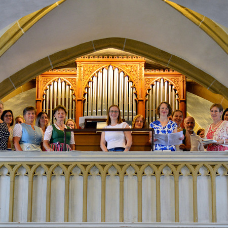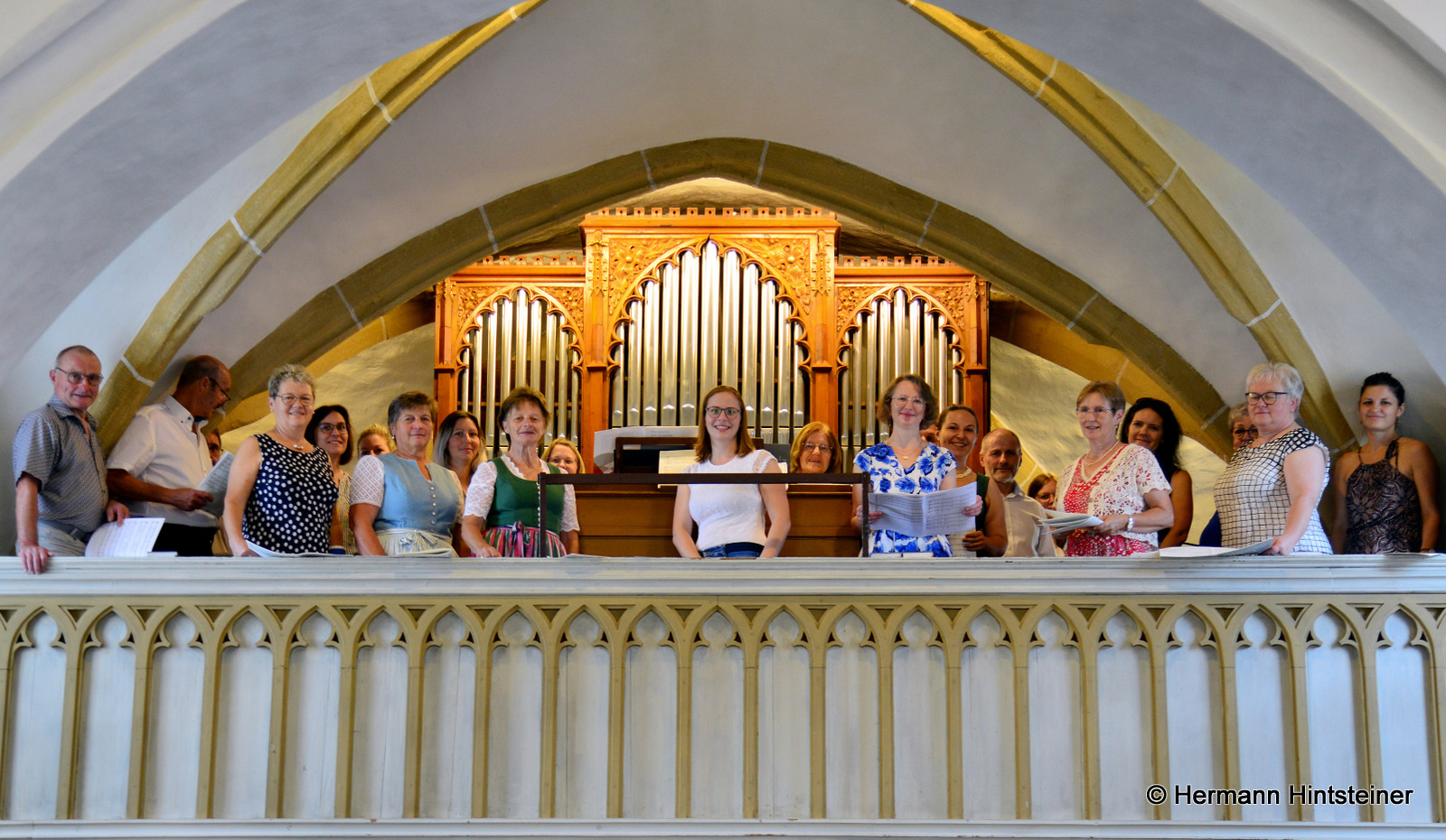 ..... wehte vom Chor in die Kirche herab, als P. Ägid mit der Pfarrgemeinde die Festmesse feierte. Dafür sorgte in erster Linie der Kirchenchor plus mit Maria Sonnleitner jun. an der Spitze. Das "plus" steht für Sängerinnen und Sänger, die nur bei bestimmten Projekten dabei sind, aber auch für das Instrumentalensemble, das großen Anteil am Erfolg dieses musikalischen Projektes hat. Ludwig Dieminger an der Gitarre, Andreas Stockinger am Klavier, Marina Rohrhofer mit der Querflöte und Thomas Ritt mit seinem Cajón- so heißt dieses Schlaginstrument, das auf Deutsch auch Kistentrommel genannt wird -, sie sorgten gekonnt für den richtigen Rhythmus und begleiteten die schwungvollen Gesänge des Chores. Aufgeführt wurde die Messe "Frischer Wind" von Stefanie Poxrucker, eine der bekannten und populären Poxrucker Sisters. Besonders erwähnt sei das Sanctus: im "Heilig, heilig, heilig" konnten sich Chor und Musiker so richtig entfalten und die Begeisterung wurde für die ganze, übrigens ungewöhnlich große, Gottesdienstgemeinschaft spürbar.