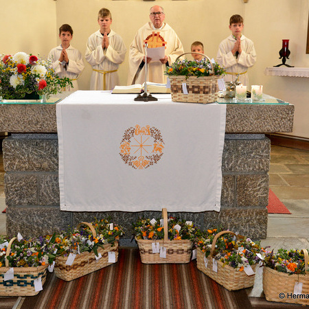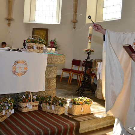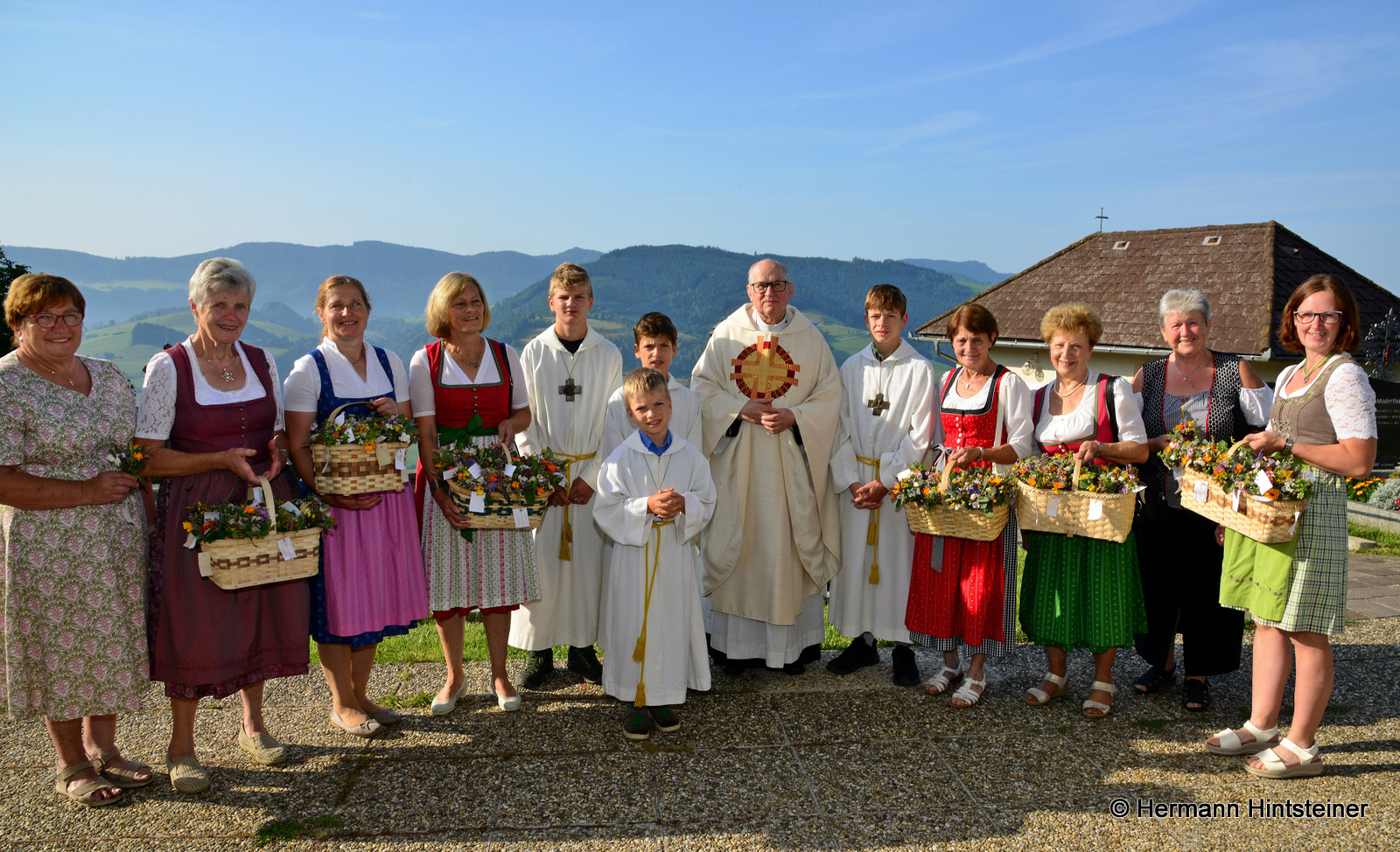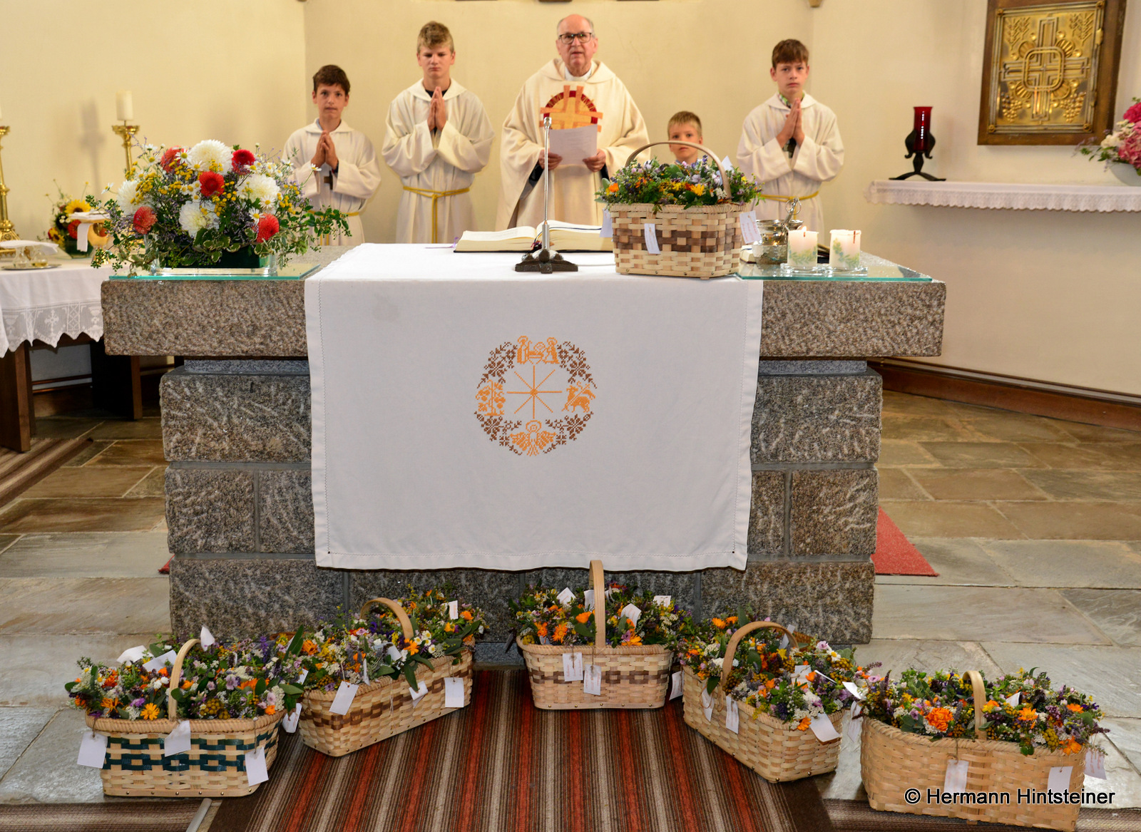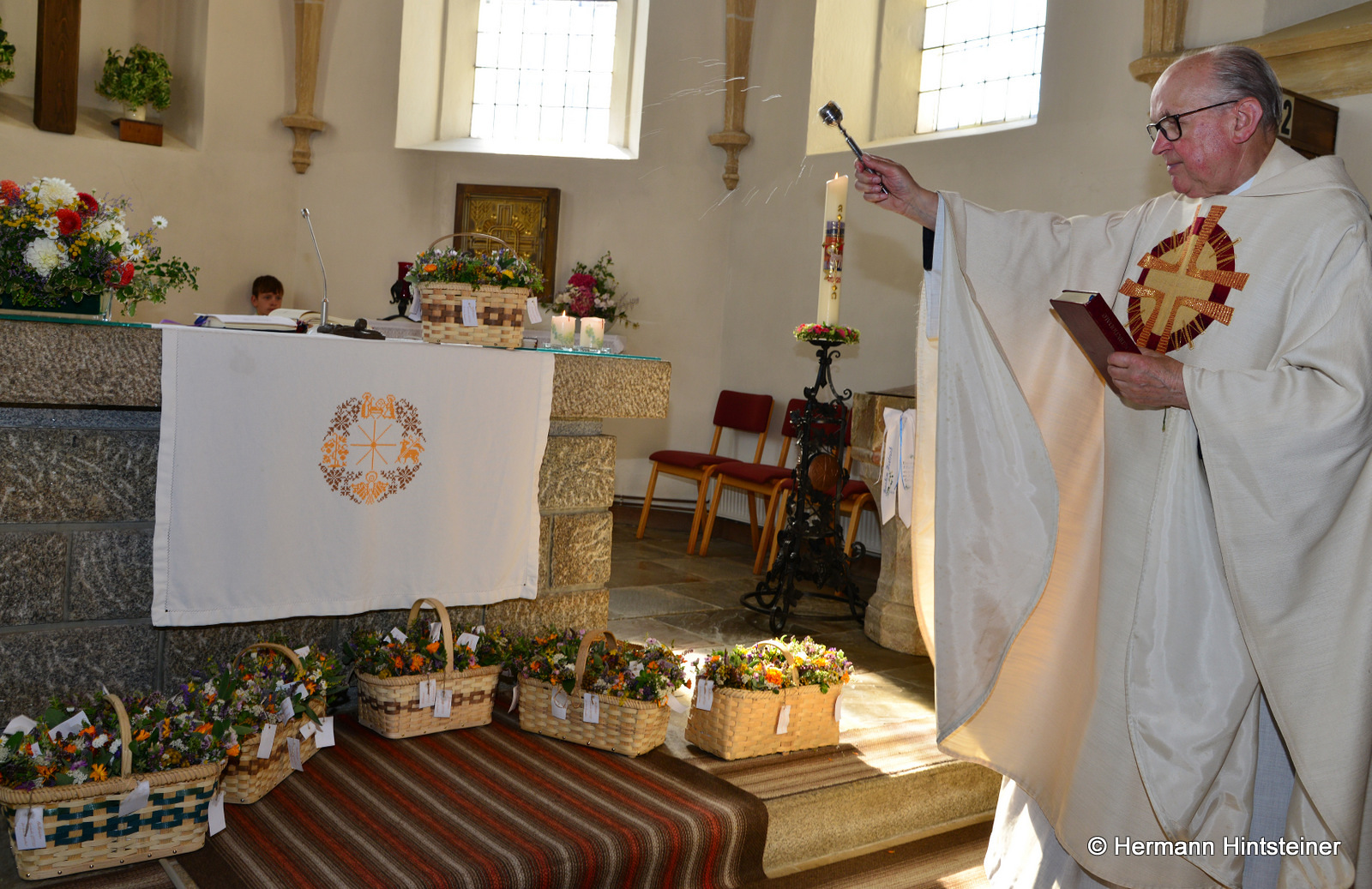 Schon lange gibt es bei uns den Brauch, an diesem großen Marienfeiertag Kräuterbüscherl zu segnen und zu verteilen. Wir sind sehr dankbar, dass die Katholische Frauenbewegung auch heuer so schöne und duftende Sträußerl vorbereitet und im Weihegebet um die Segnung gebeten hat. P. Ägid kam dieser Bitte natürlich sehr gerne nach, wo doch dieser Brauch ein schönes Zeichen der Marienverehrung ist.