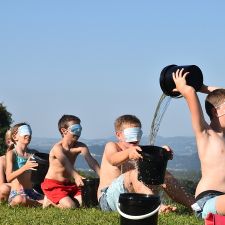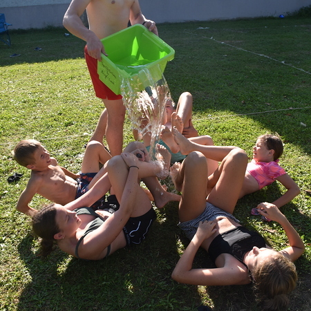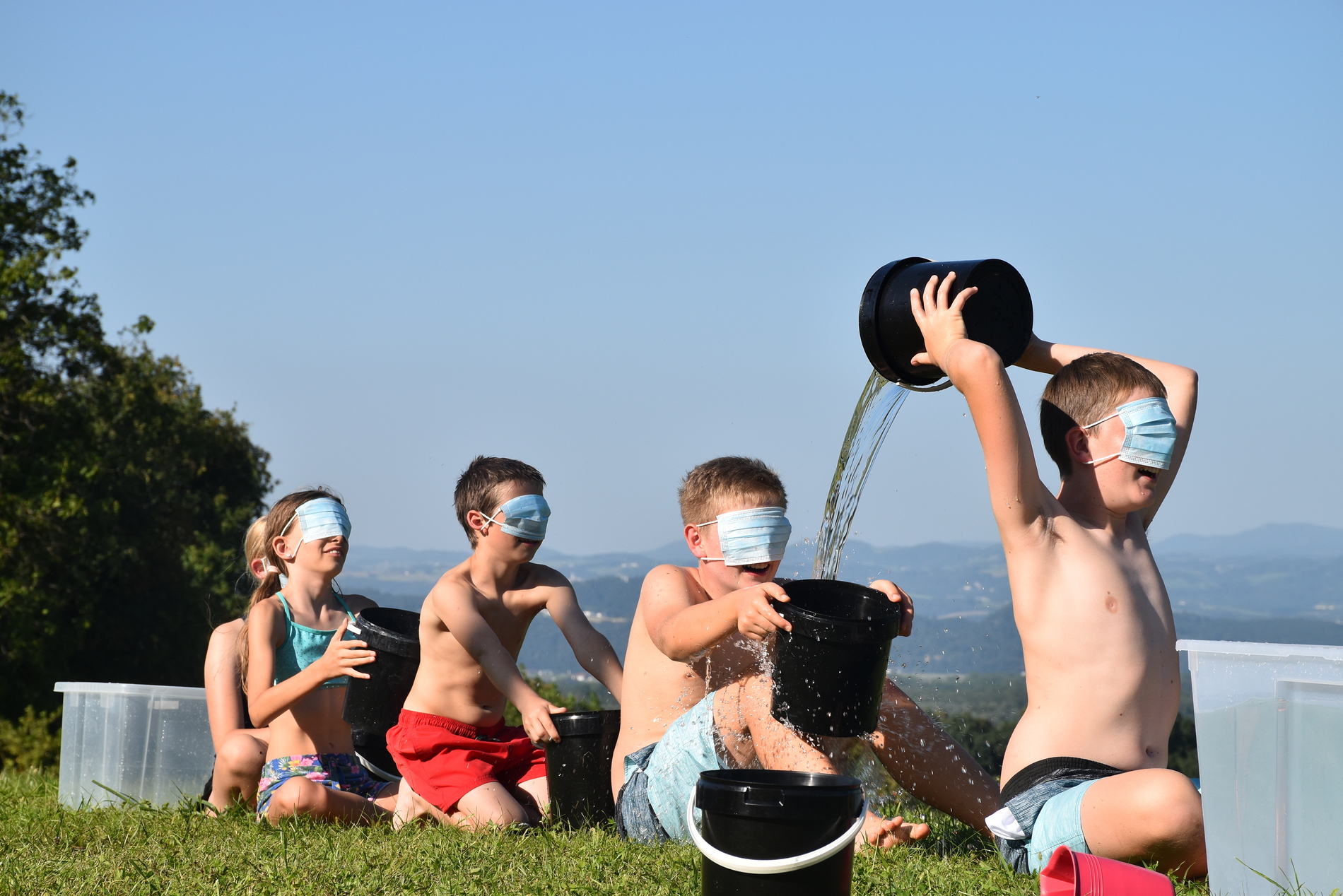 Wasserspiele: An einem heißen Tag wurde ein Stationenbetrieb mit Wasserspielen gemacht.