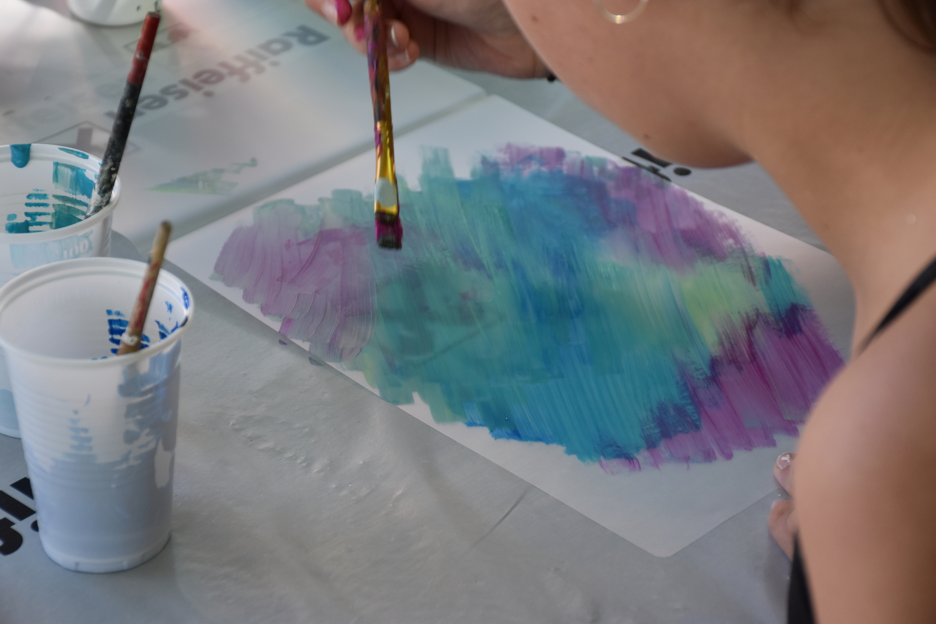 Fahne bemalen: Gemeinsam gestalteten die Kinder eine Lagerfahne, die feierlich gehisst wurde.