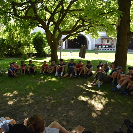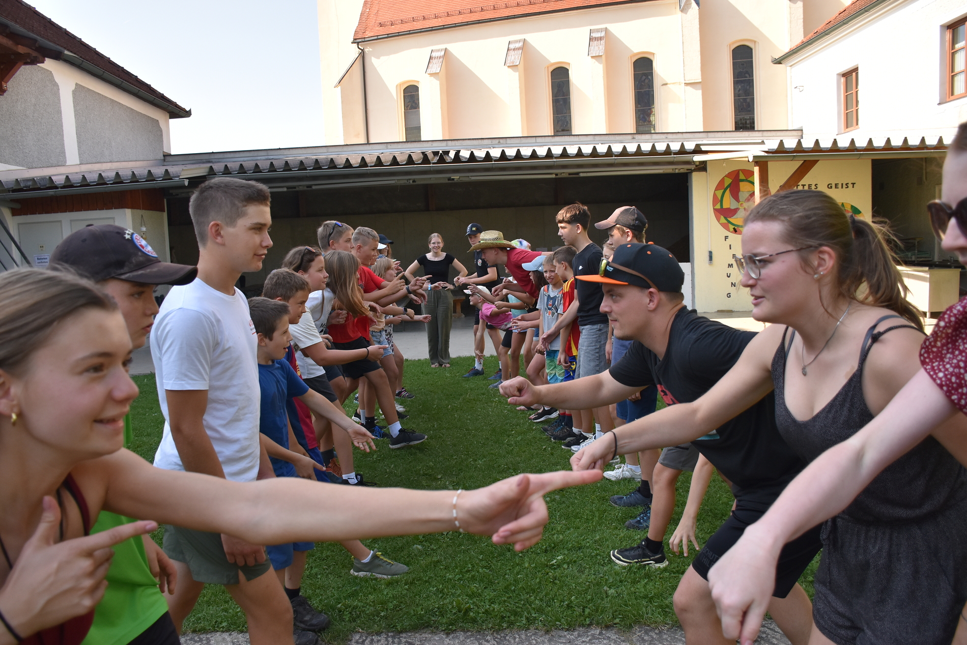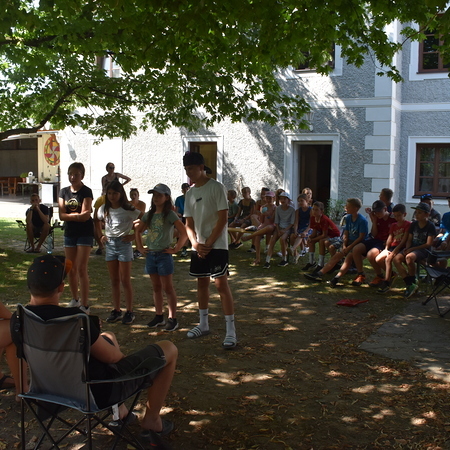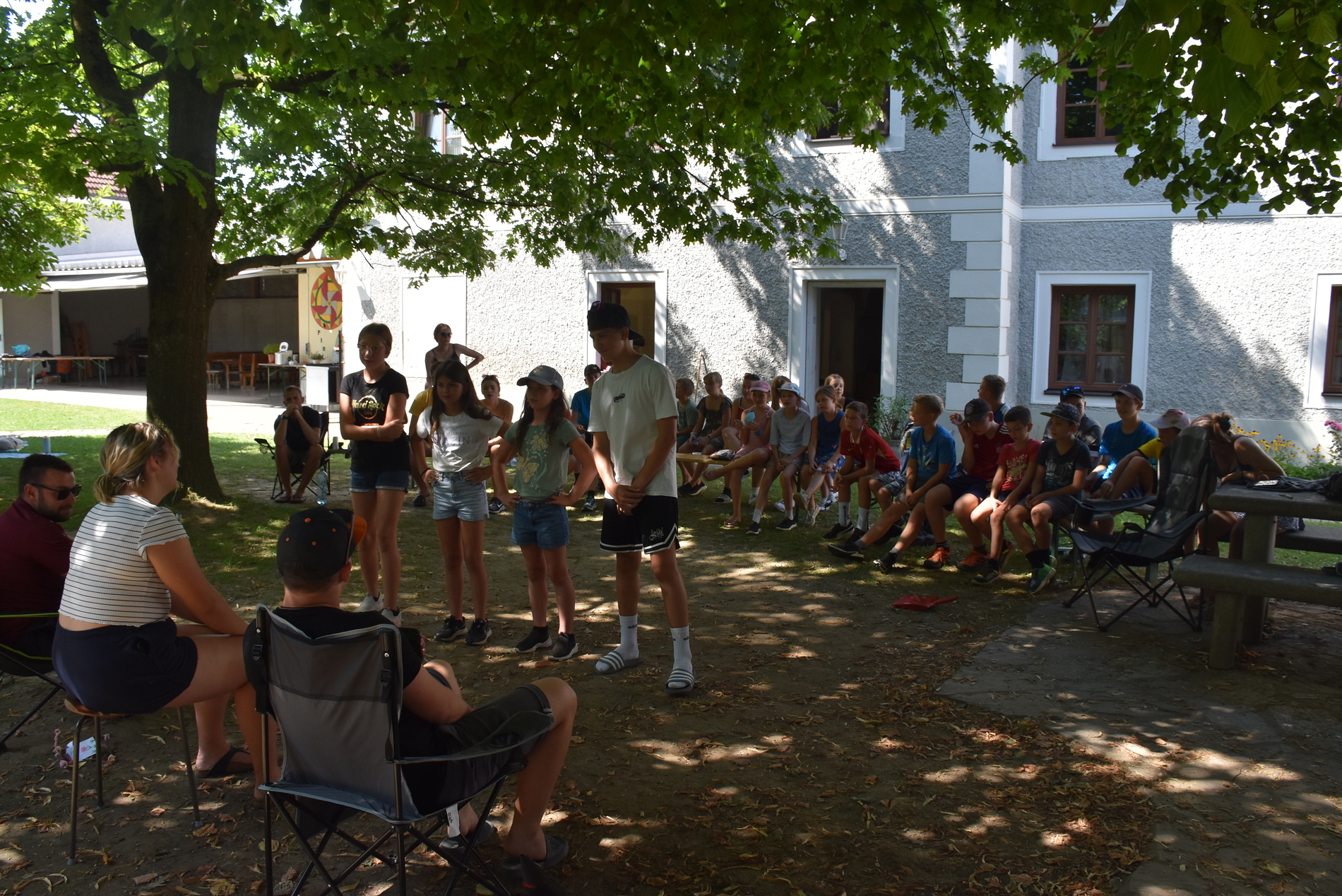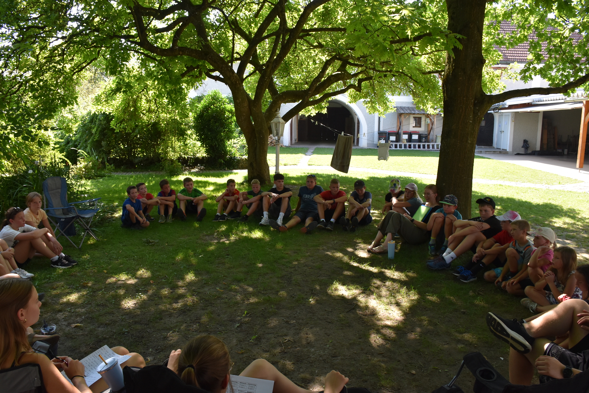 Die Kinder trafen am ersten Lagertag um 14:00 Uhr am Lagerort ein. Nach der Begrüßung durch das Leitungsteam wurden die Zimmer im Pfarrhof Sindelburg bezogen und danach startete die Lagerwoche direkt mit dem traditionellen Eröffnungs-Völkerballturnier.