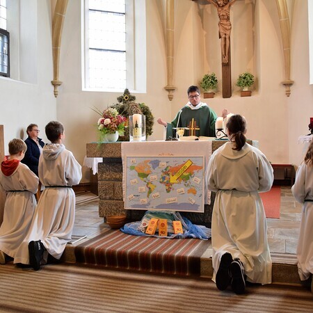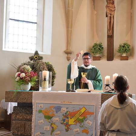 Aber nicht nur das Familienmessteam hat sich passende Gedanken gemacht. Der Missions-Chor (ein bunt zusammengewürfelter Chor) unter der Leitung von Margarete Fluch brachte eindrucksvoll unter anderem auch afrikanische Lieder zu Gehör.