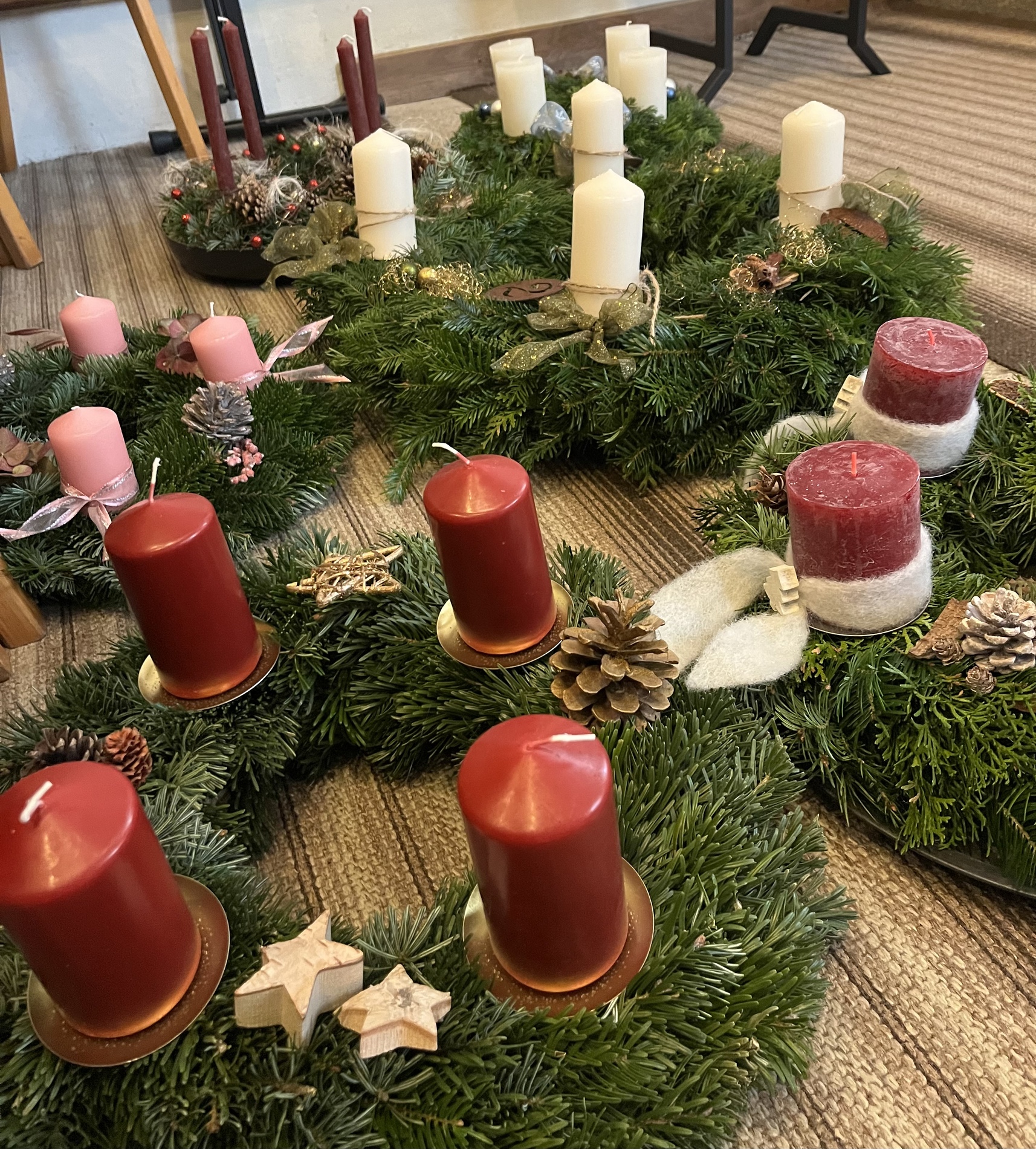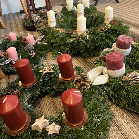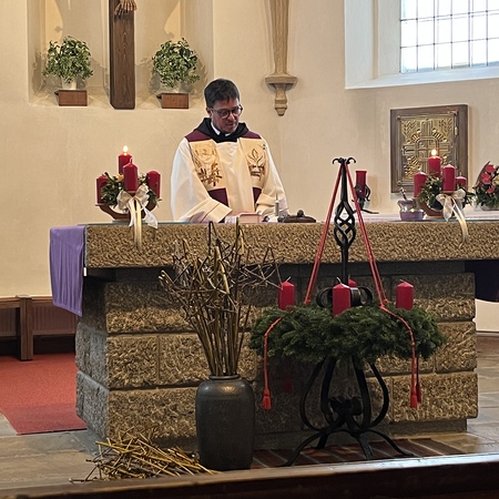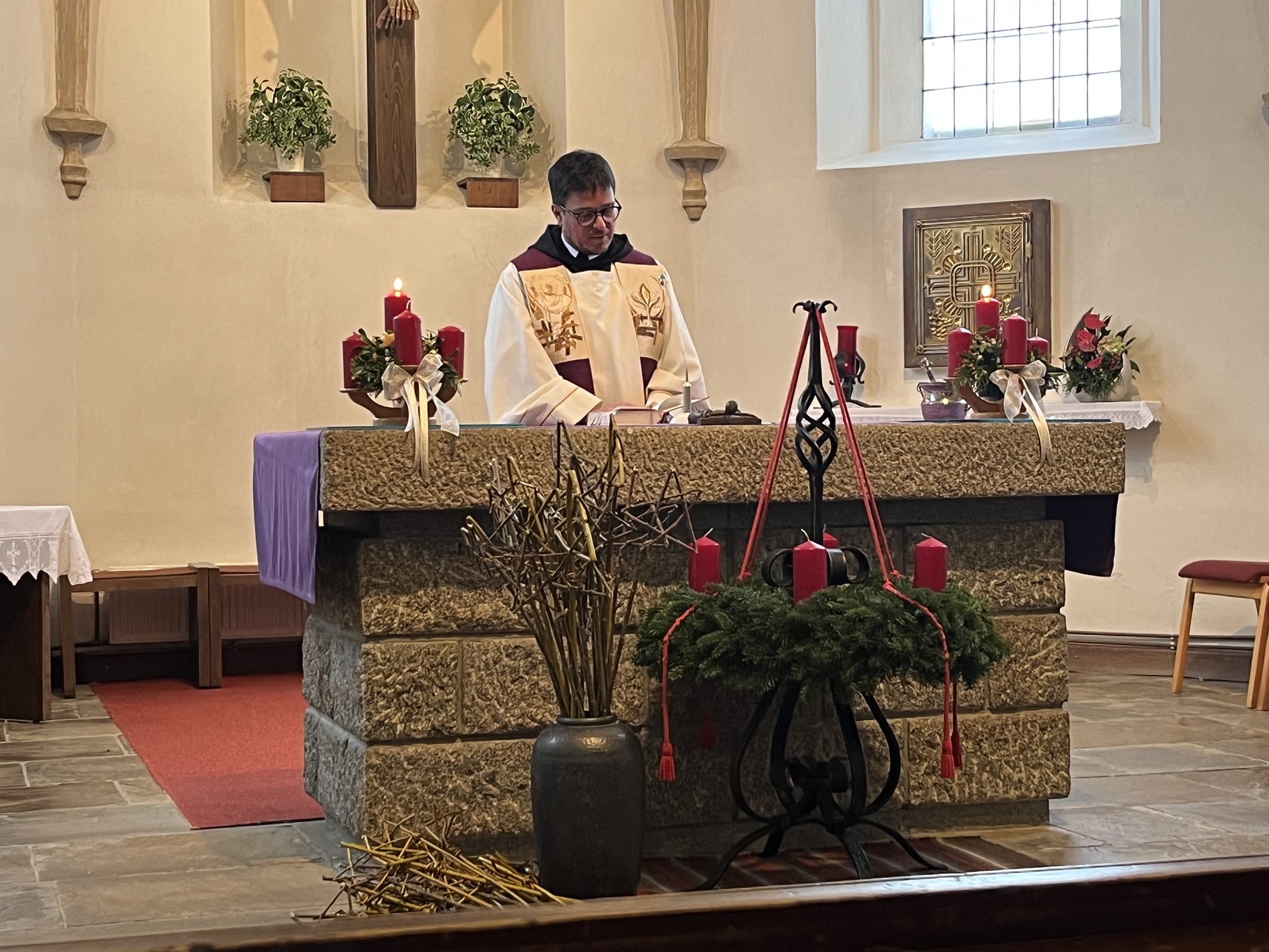 Um 14 Uhr hielt P. Florian eine Andacht in der Pfarrkirche, bei der die Adventkränze gesegnet wurden. Der wunderschöne große Kirchen-Adventkranz wurde wie "alle Jahre wieder" dankenswerterweise von Familie Edinger gebunden.