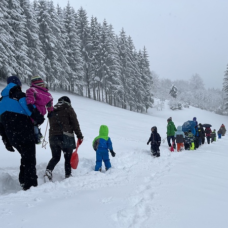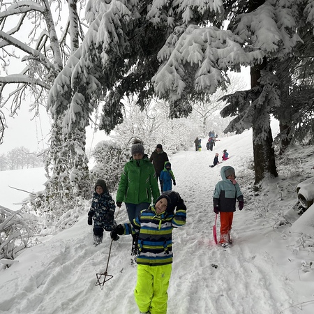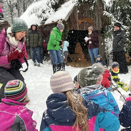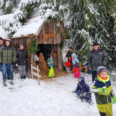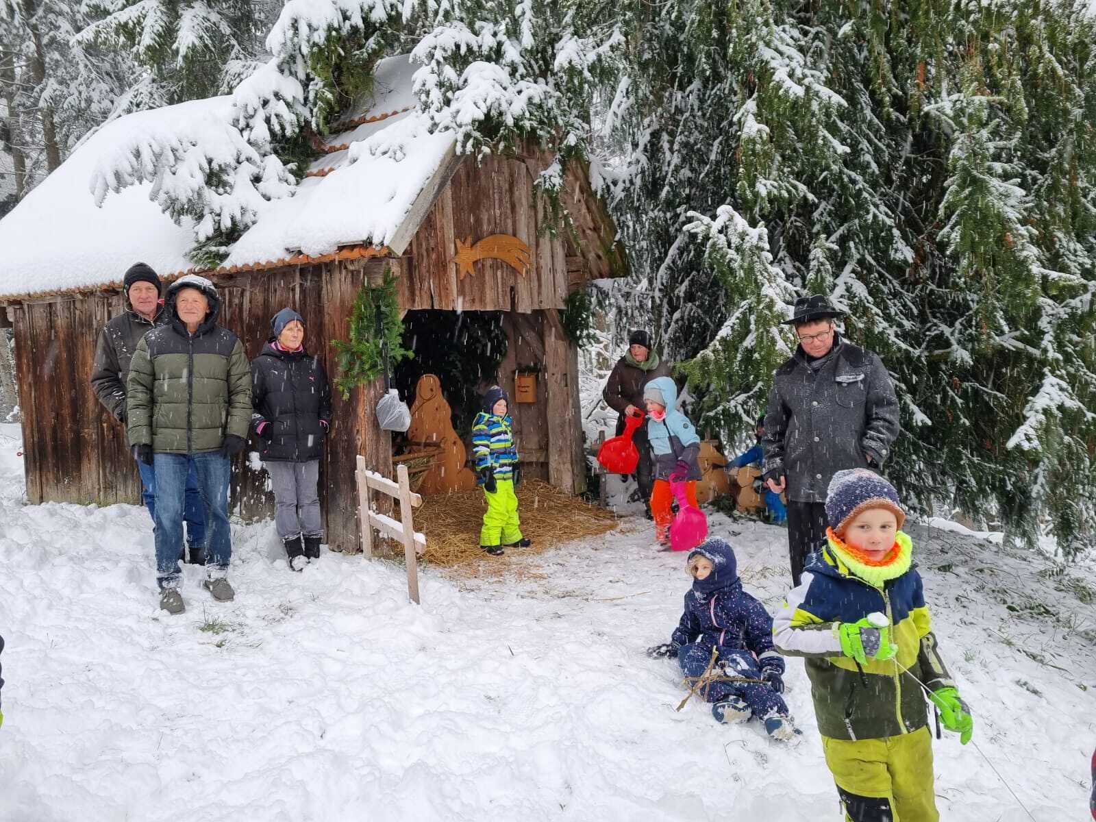 Danach luden die Bäuerinnen zur schon traditionellen "Kripperlroas" zur Stadl-Krippe am Krondorfer Kogl ein. Ein große Schar aus Jung und Alt machte sich auf den Weg und stapfte (mit Weidensternen, gefertigt durch die Bäuerinnen) durch die schöne Winterlandschaft.