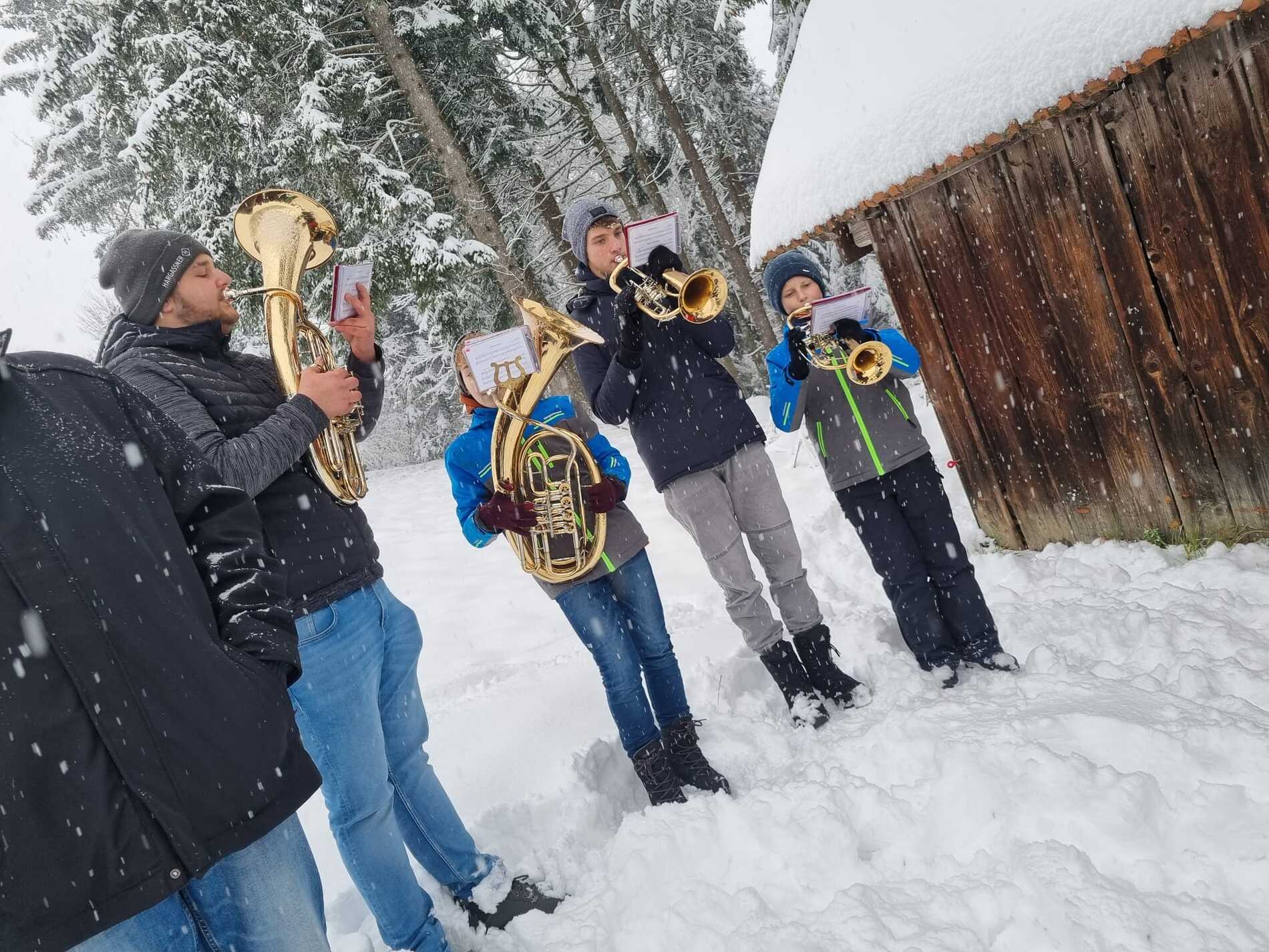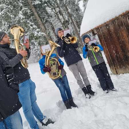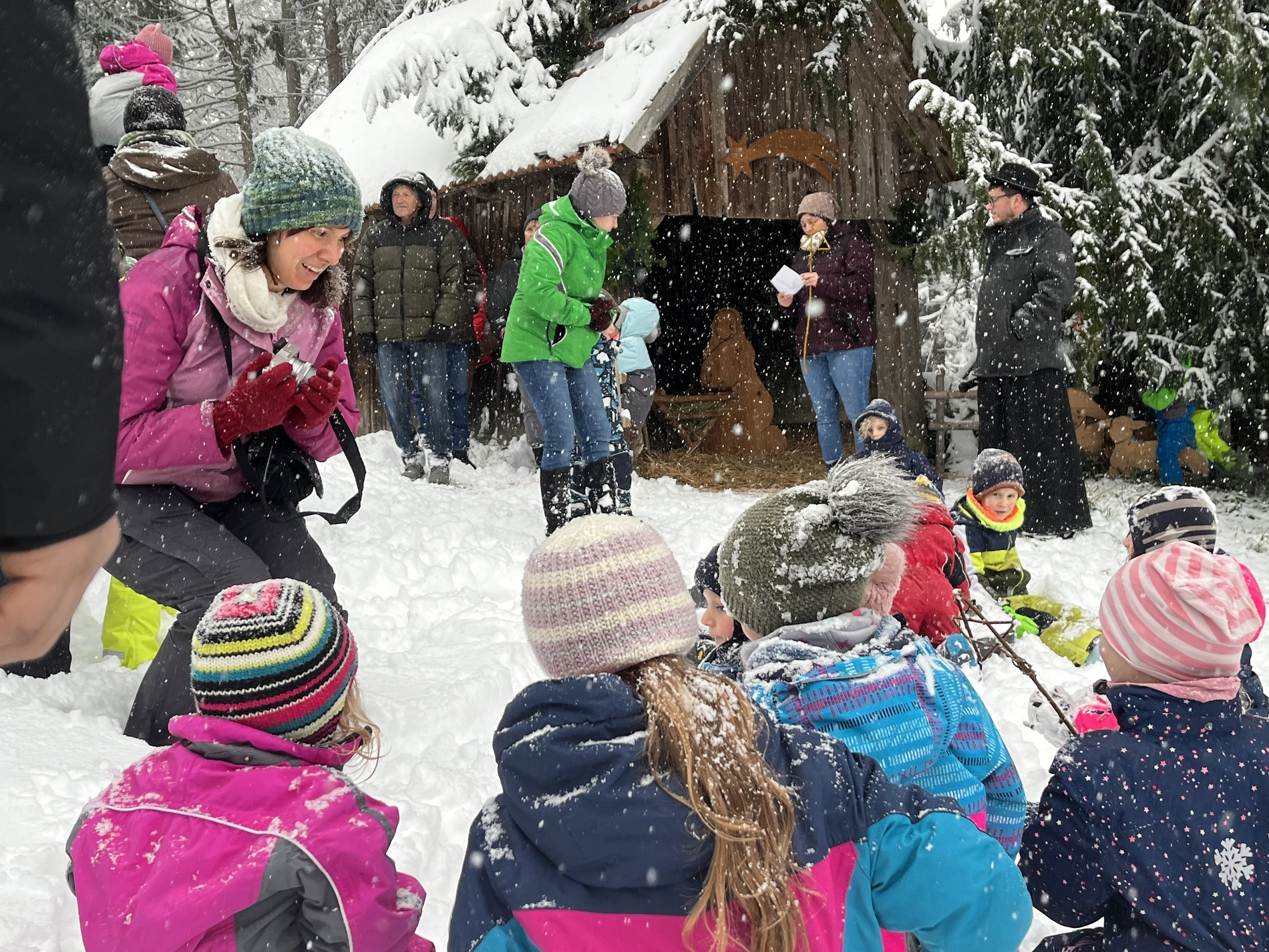 Beim Kripperl angekommen empfing uns schon ein Ensemble der Musikkapelle, und auch das Männerquartett erfreute mit adventlichen Liedern. Dazwischen gab es besinnliche Texte...