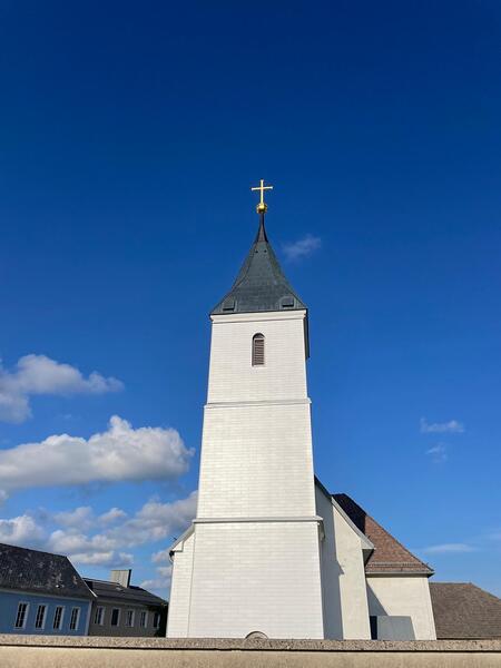 Fast genau ein Jahr nachdem ein starkes Hagelgewitter (12. Juli 2024) das Eternit am Kirchturm schwer beschädigte, wurde die Sanierung des Kirchturmes in Angriff genommen.