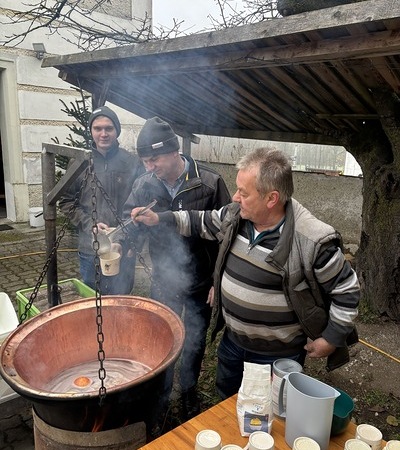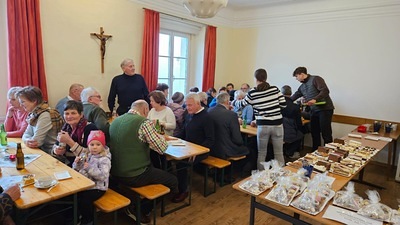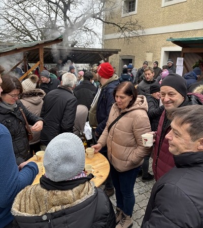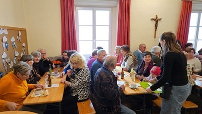 Zwischendurch war ein Aufwärmen im Pfarrsaal bei Gulasch, Würstel, Kaffee und Mehlspeise möglich.