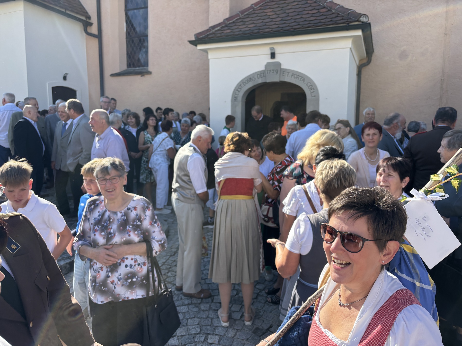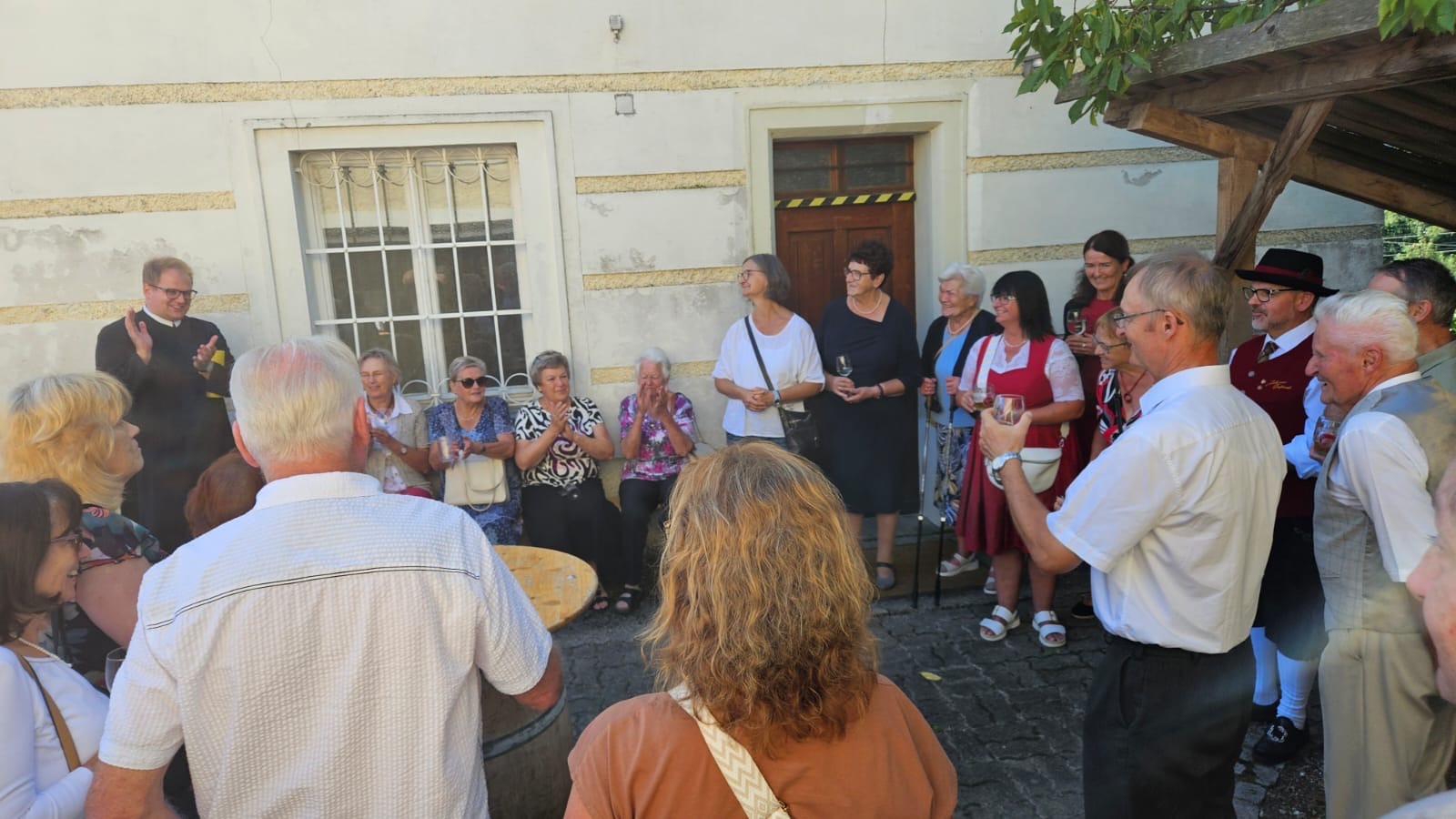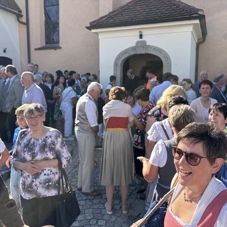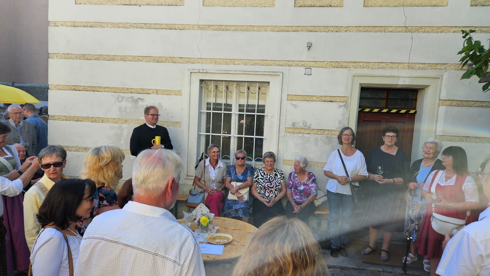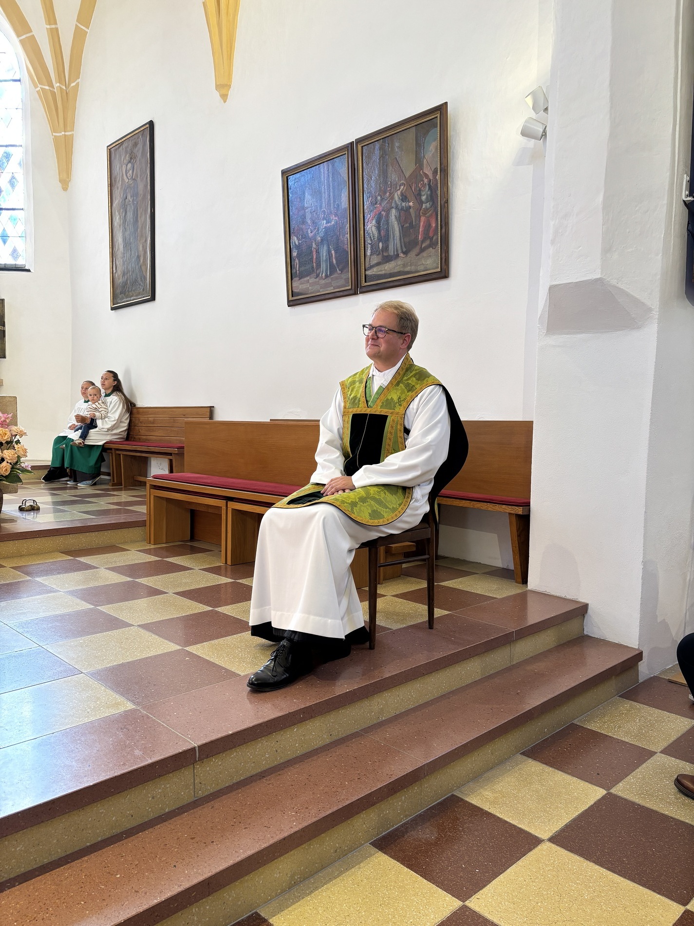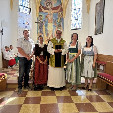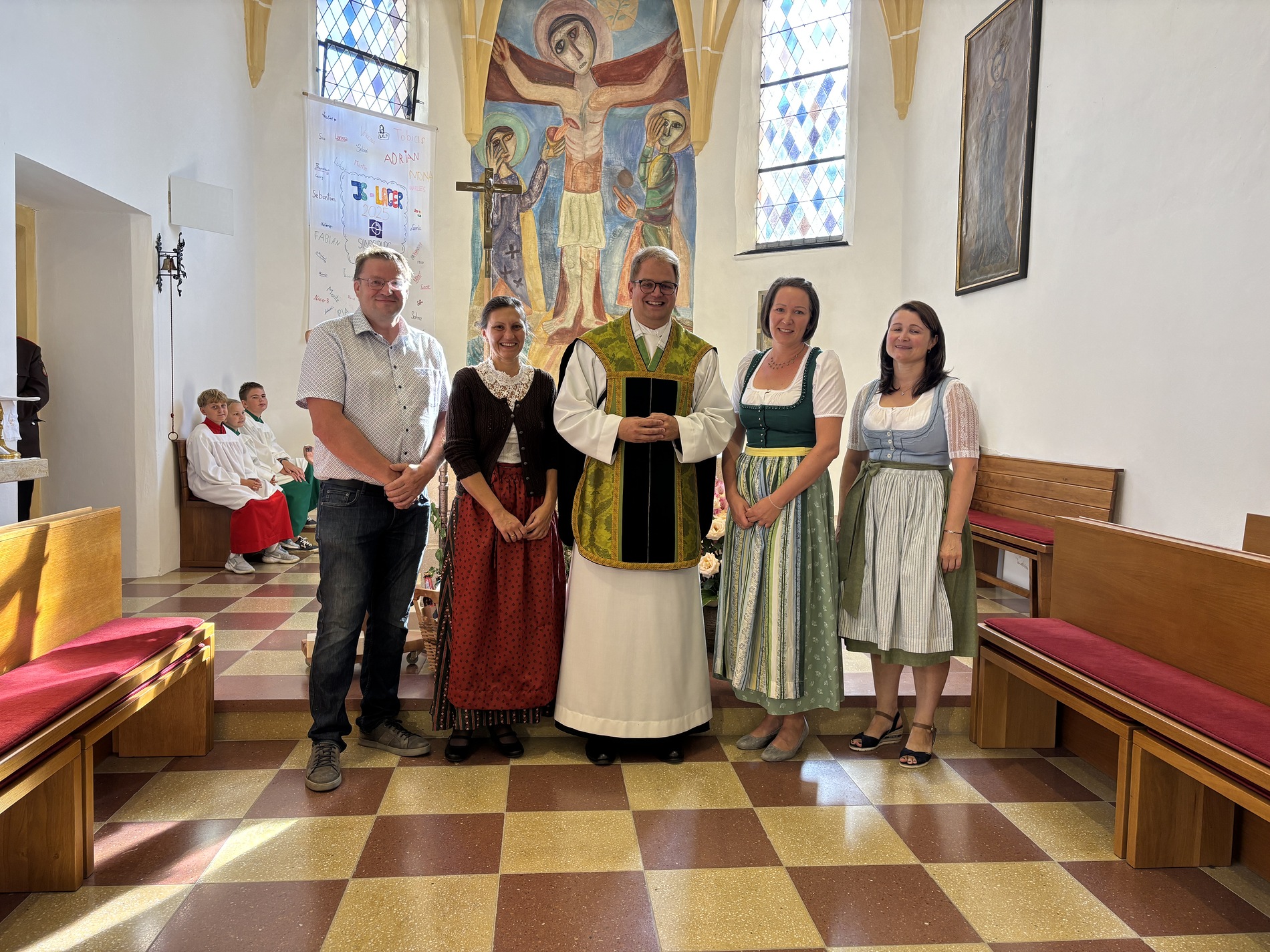 Anlässlich des 40. Geburtstags von Vikar P. Benedikt Resch feierte die Pfarrgemeinde St. Johann in Engstetten am Sonntag, den 31. August 2025, eine Festmesse. Im Anschluss gratulierte der Pfarrgemeinderatsvorstand in dreigliedriger Form- angelehnt an die stets in drei Punkten gegliederten Predigten von Pater Benedikt. Ein Gemeinschaftsgeschenk der Johannser:innen mit persönlichen Glückwünschen aus den verschiedensten Häusern bereitete dem Jubilar große Freude. Im Anschluss gratulierten Bürgermeister Johannes Heuras, Feuerwehr, Kirchenchor, Dorfmusik und zahlreiche Gäste während der Agape im Pfarrhof. In bayrischer Feierkultur und mit musikalischer Darbietung klang der Vormittag mit Bier und Brezen aus.