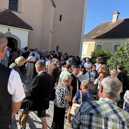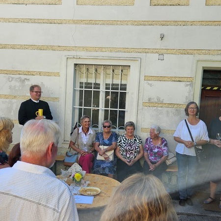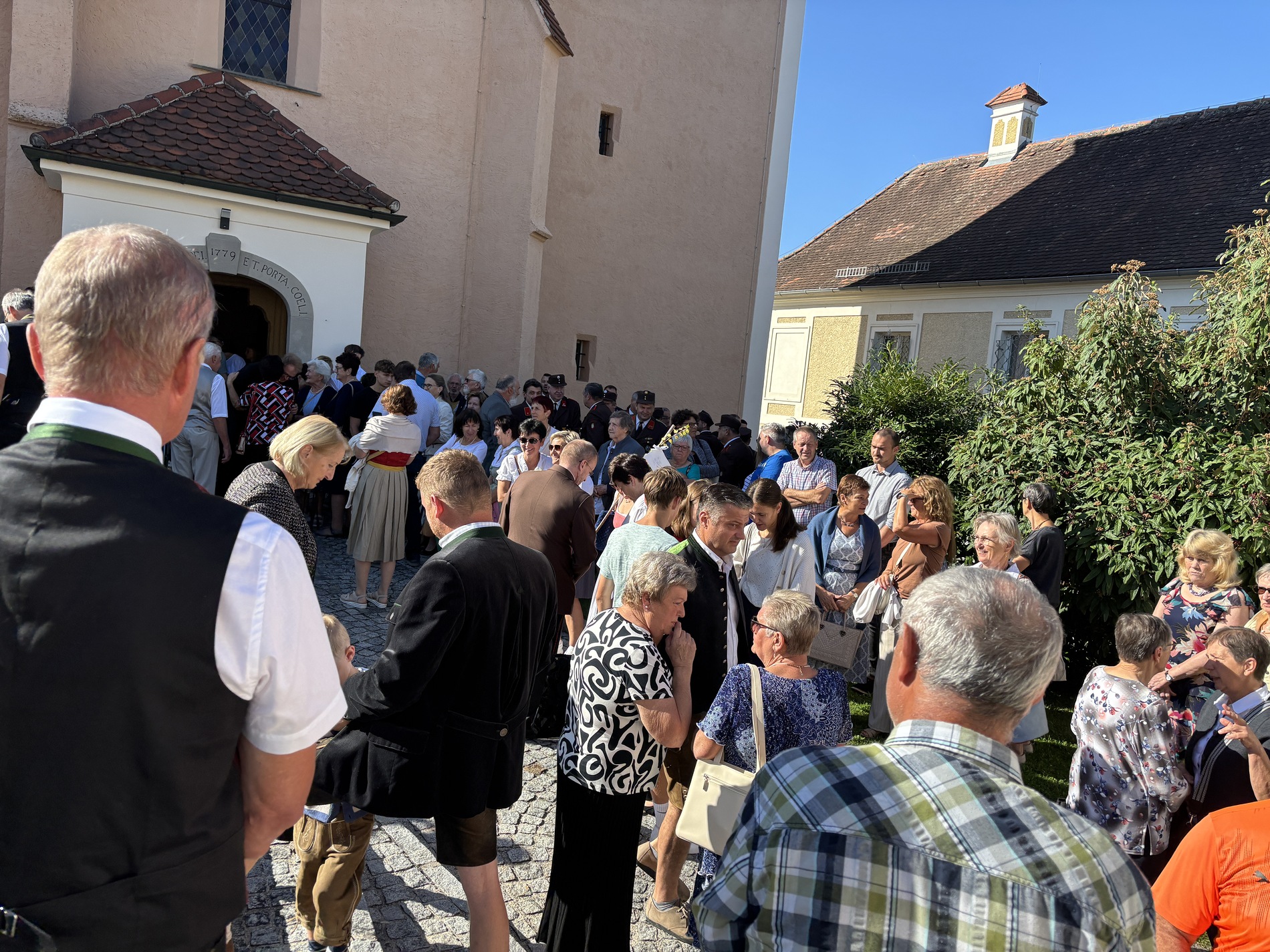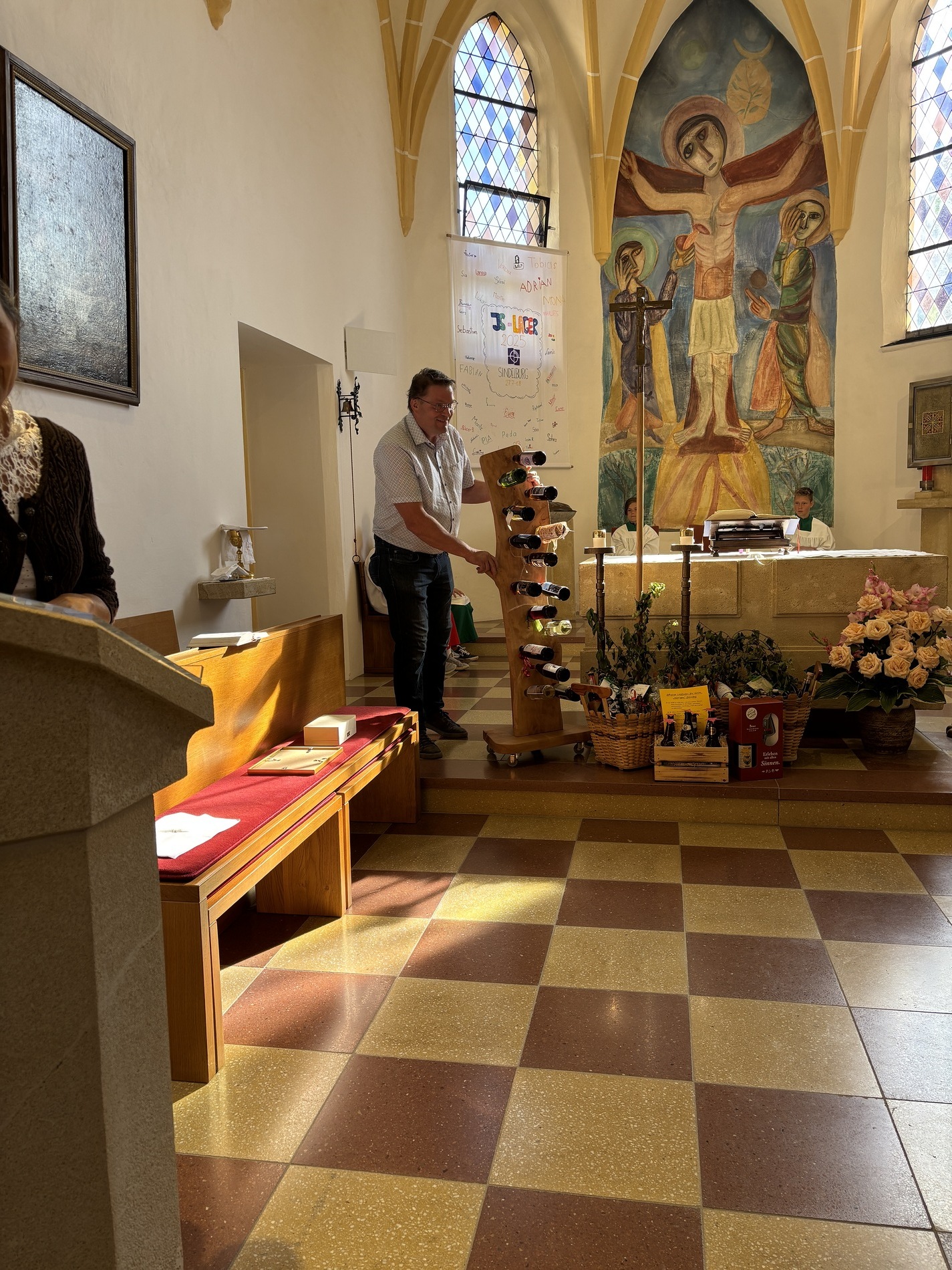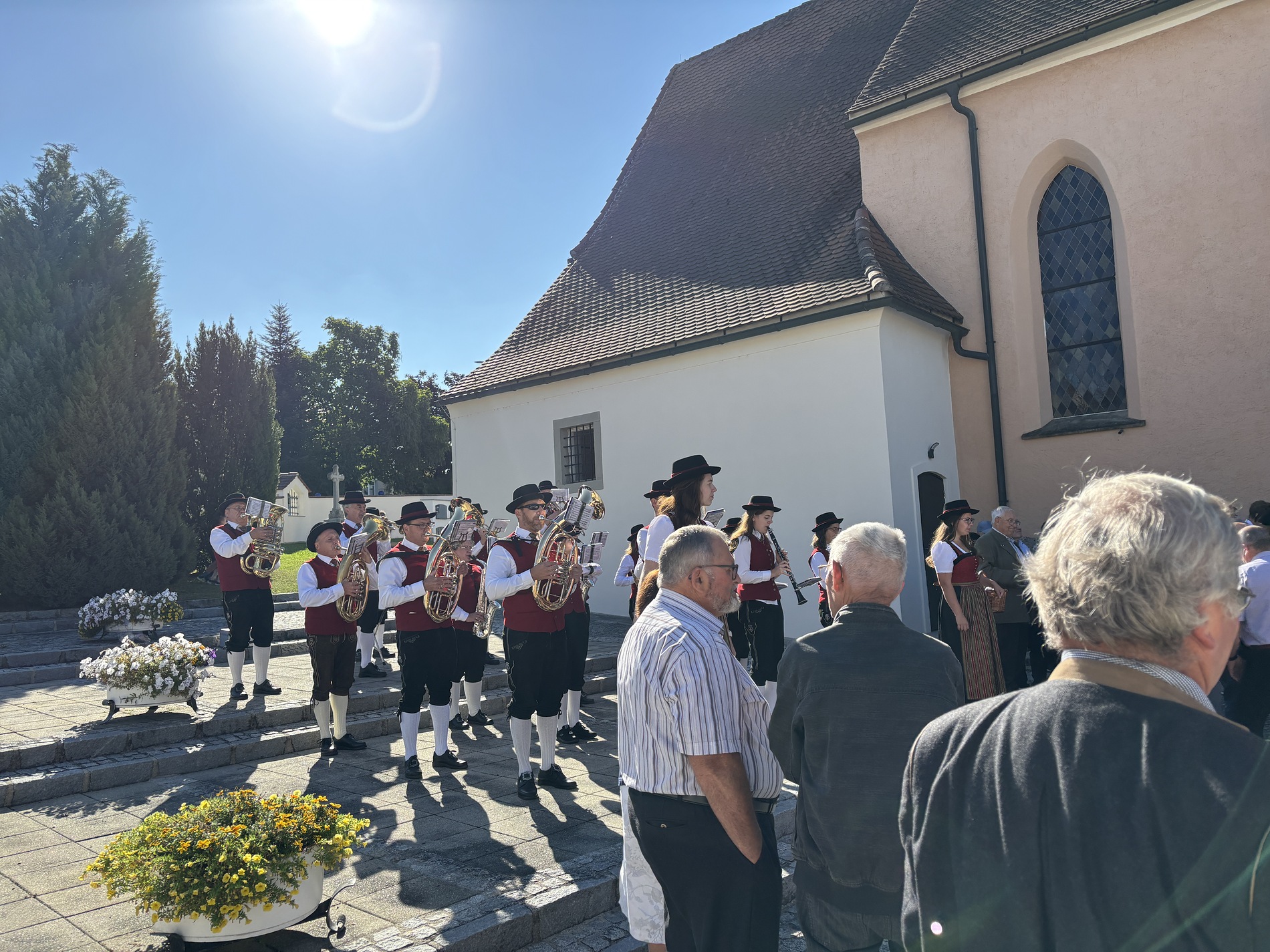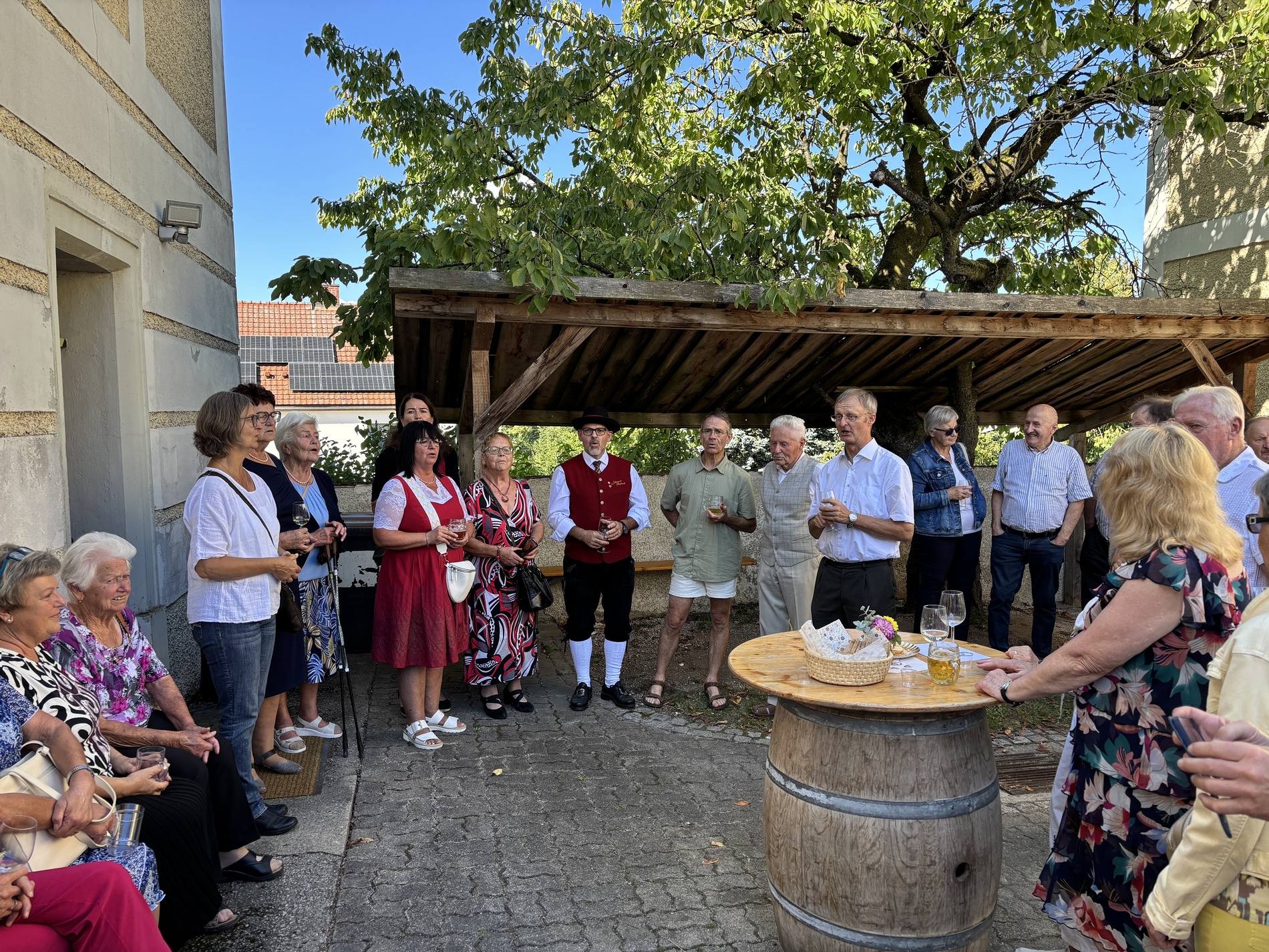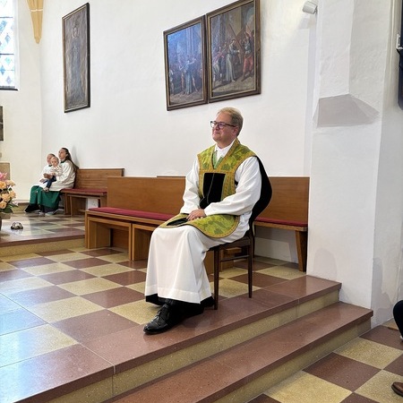 Anlässlich des 40. Geburtstags von Vikar P. Benedikt Resch feierte die Pfarrgemeinde St. Johann in Engstetten am Sonntag, den 31. August 2025, eine Festmesse. Im Anschluss gratulierte der Pfarrgemeinderatsvorstand in dreigliedriger Form- angelehnt an die stets in drei Punkten gegliederten Predigten von Pater Benedikt. Ein Gemeinschaftsgeschenk der Johannser:innen mit persönlichen Glückwünschen aus den verschiedensten Häusern bereitete dem Jubilar große Freude. Im Anschluss gratulierten Bürgermeister Johannes Heuras, Feuerwehr, Kirchenchor, Dorfmusik und zahlreiche Gäste während der Agape im Pfarrhof. In bayrischer Feierkultur und mit musikalischer Darbietung klang der Vormittag mit Bier und Brezen aus.