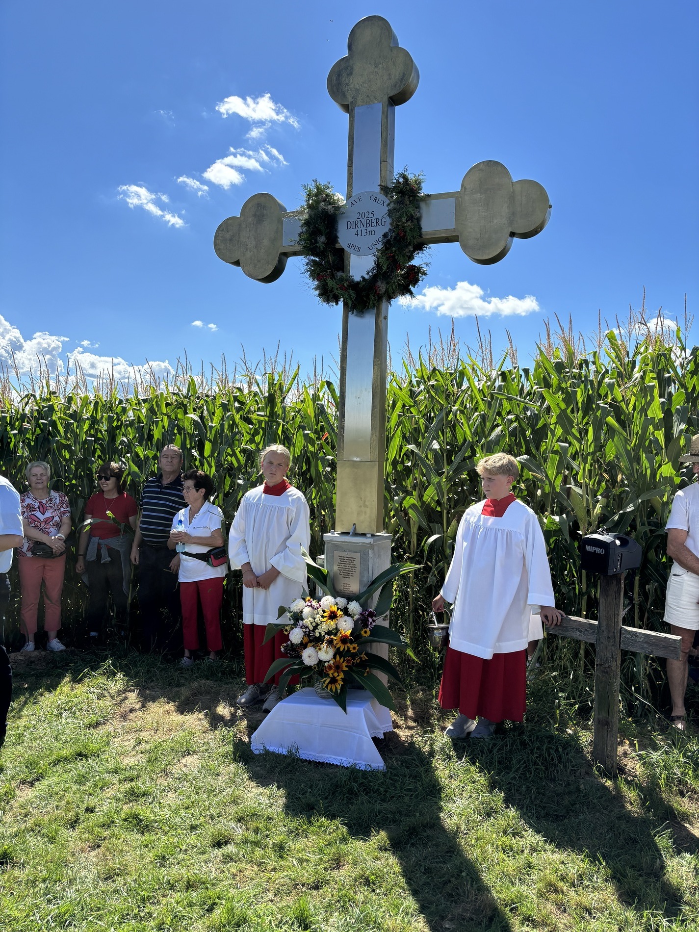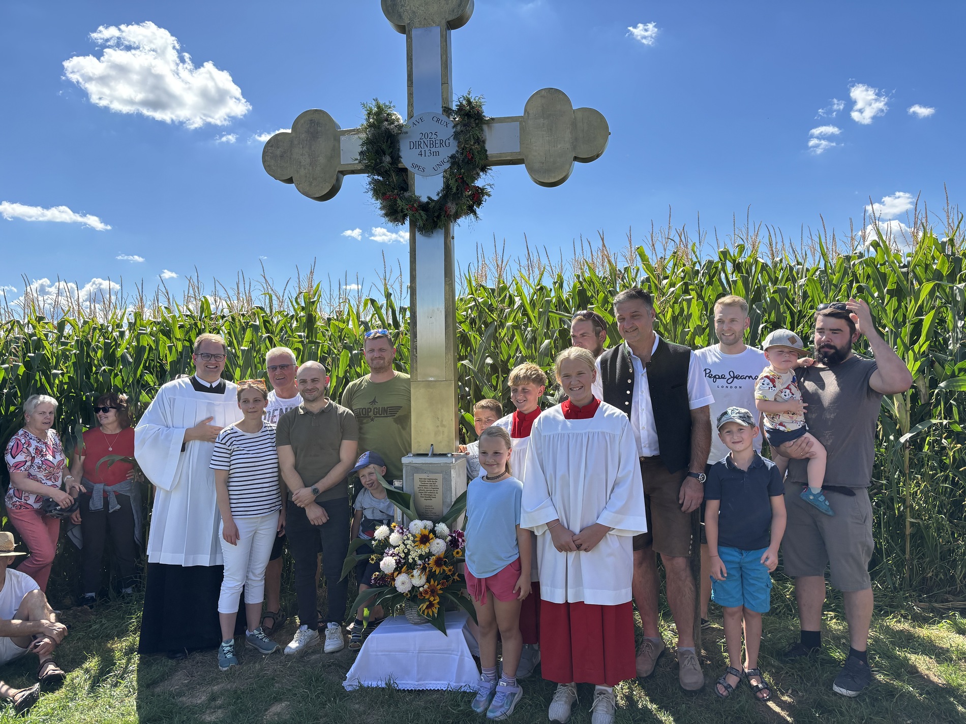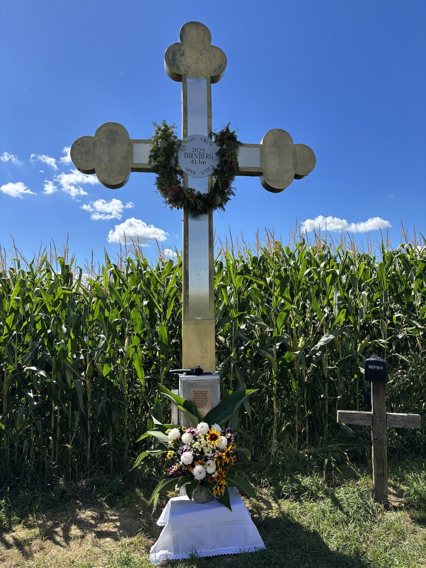 Noch ist das neue Gipfelkreuz am Dirnberg (413m) von Maisfeldern eingebettet, bald aber wird dessen Glanz weit hinaus erstrahlen können. Mögen viele Wanderer am „Herz des Mostviertels Rundwanderweg“ davor Rast finden und eine Zeit der Stille und inneren Einkehr genießen.