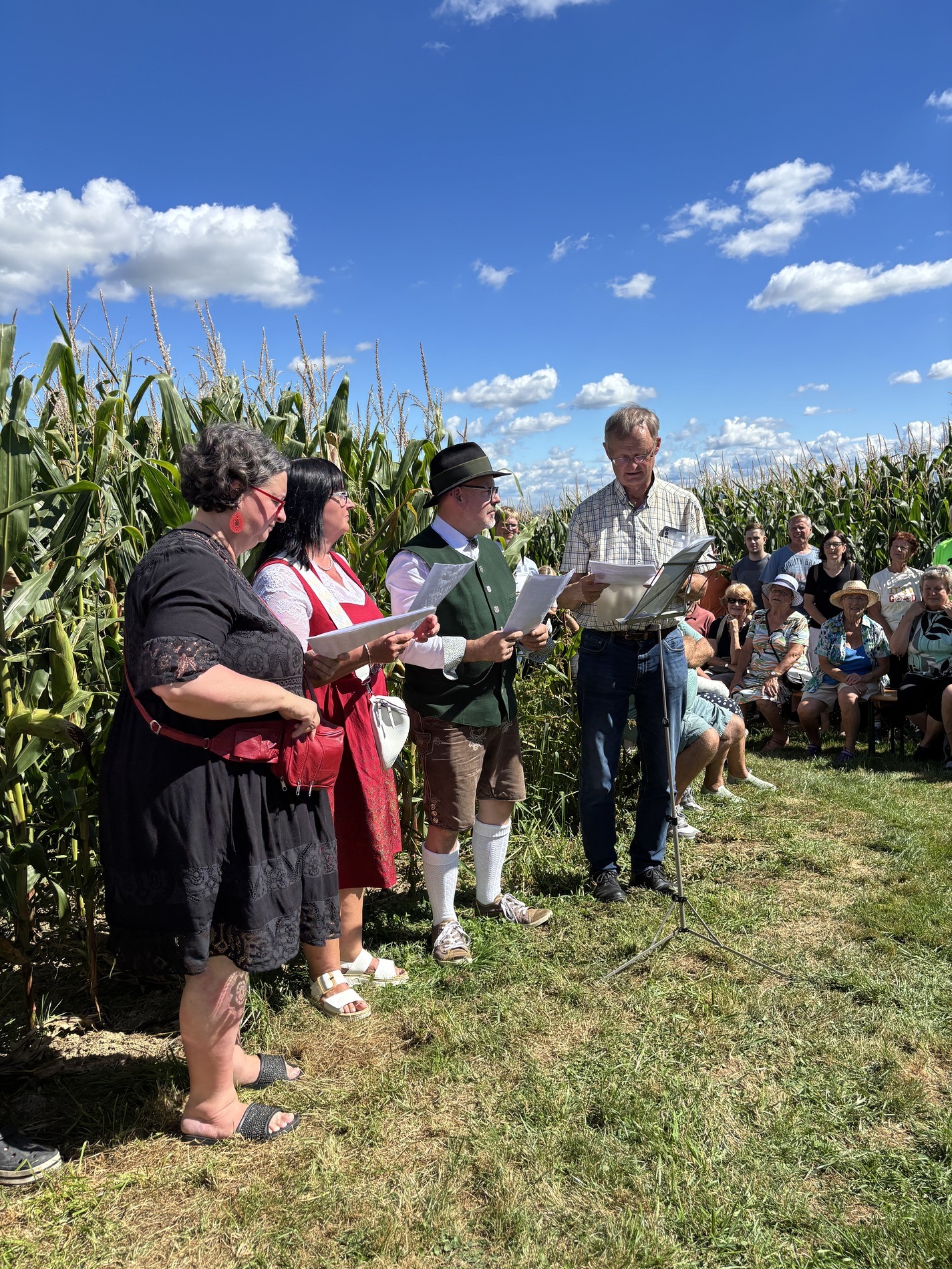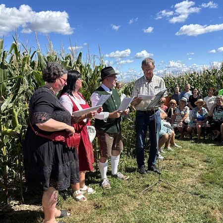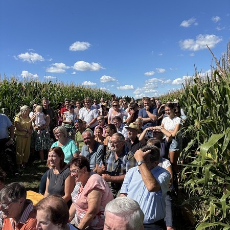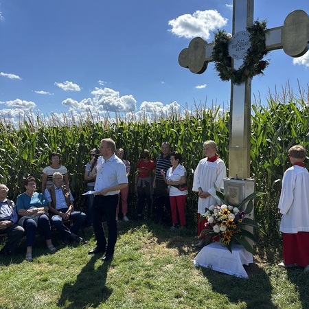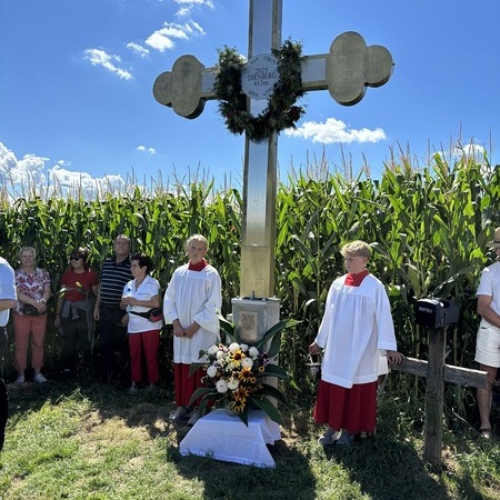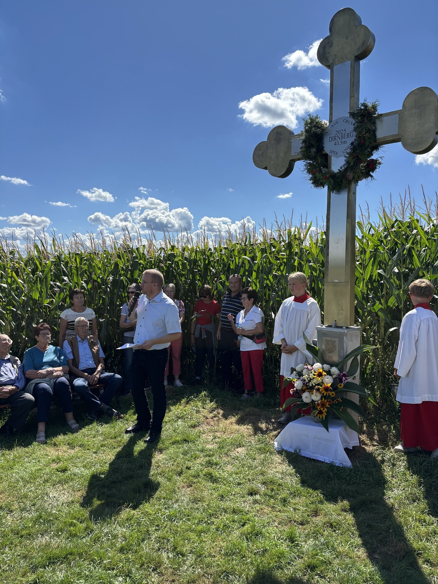 Noch ist das neue Gipfelkreuz am Dirnberg (413m) von Maisfeldern eingebettet, bald aber wird dessen Glanz weit hinaus erstrahlen können. Mögen viele Wanderer am „Herz des Mostviertels Rundwanderweg“ davor Rast finden und eine Zeit der Stille und inneren Einkehr genießen.