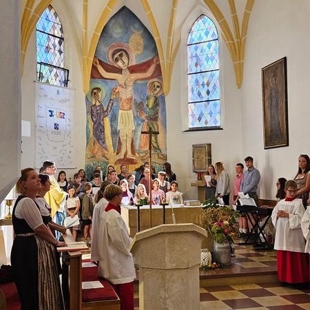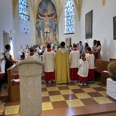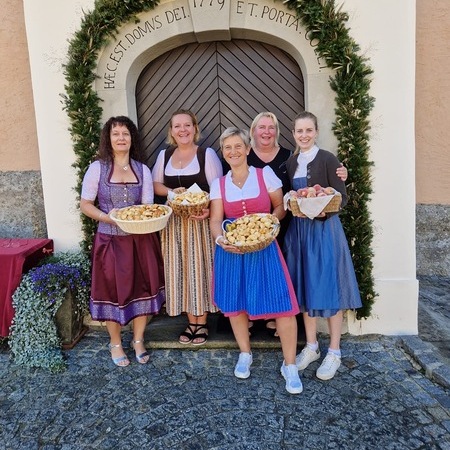 Im Anschluss luden die Bäuerinnen herzlich zur Agape ein, bei der ein sonniger Vormittag in guter Gemeinschaft begangen wurde. Die selbstgebackenen Briochegupferl waren nicht nur für die Kinder ein willkommener Genuss.