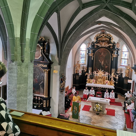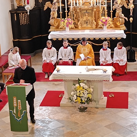 Bereits seit 2019 trägt der PGR mit Unterstützung von (diesmal einigen neuen!) FreundInnen und MusikerInnen zur Gestaltung der Messe bei, bestens vorbereitet und angeleitet von Claudia Schörghuber, die auch für das Aussuchen der Lieder verantwortlich zeichnet. Vielen Dank Claudia und vielen Dank - nicht selbstverständlich! - bei Martin Radl/Keyboard, Barbara Haneder/Querflöte und Fabian Röcklinger/Cajon!