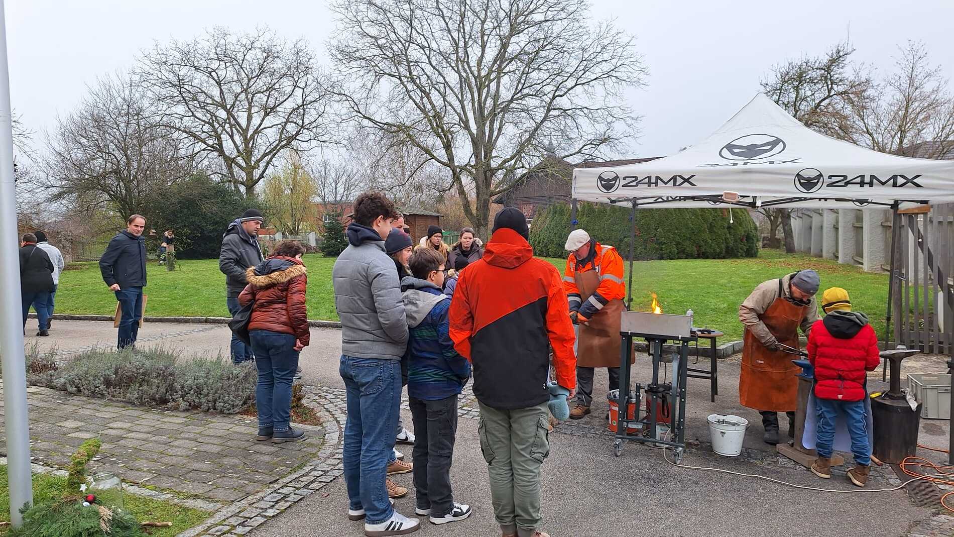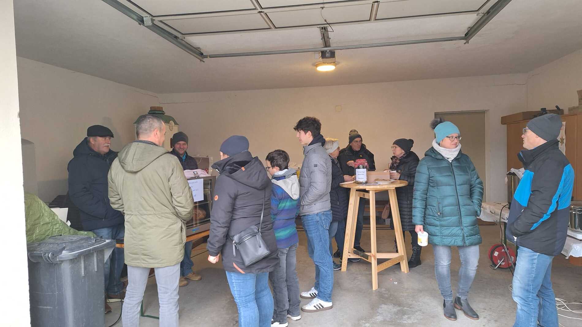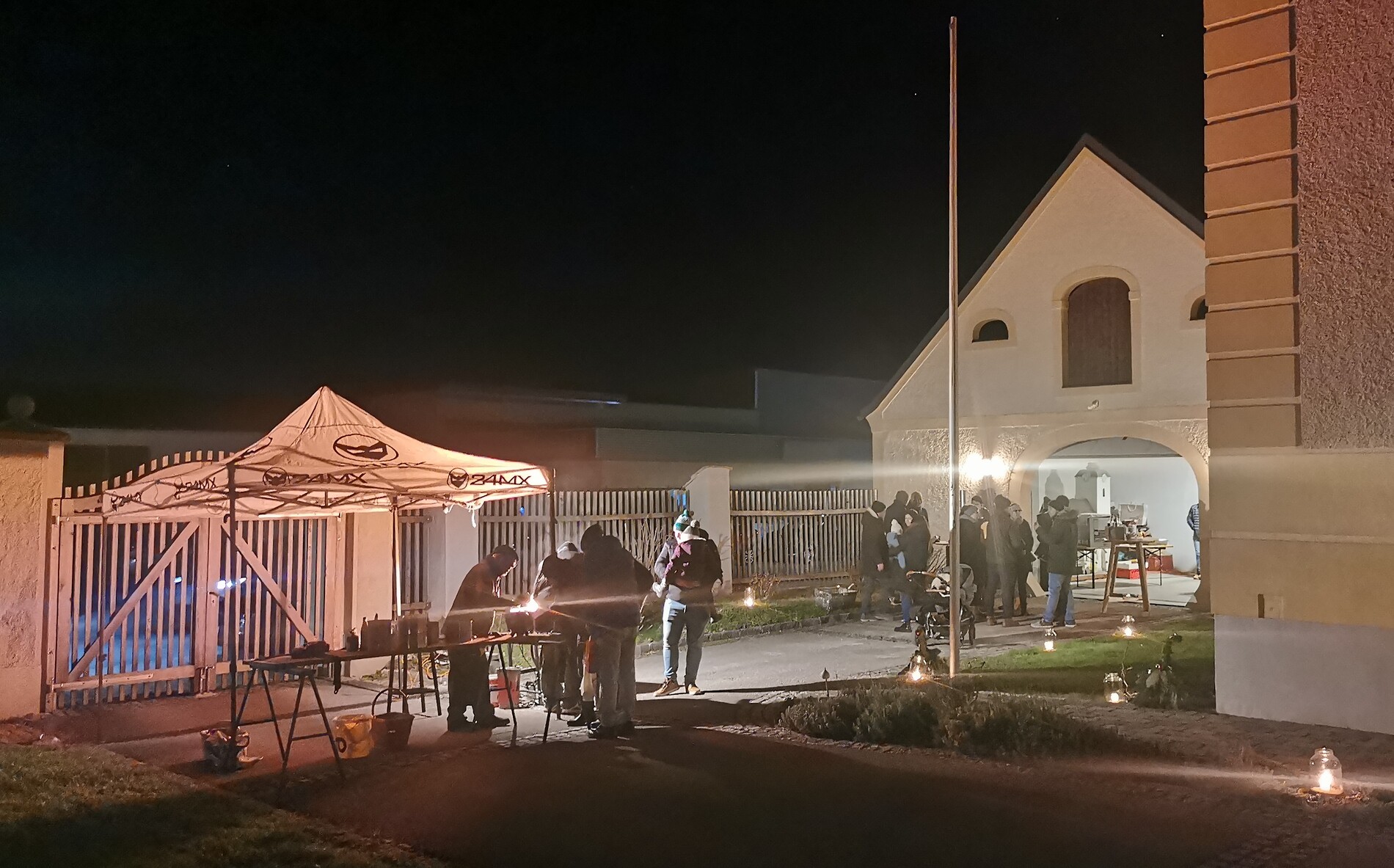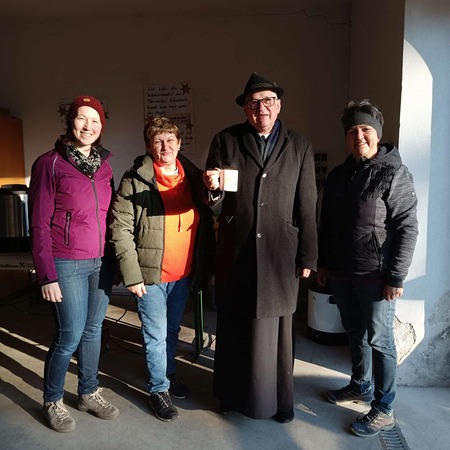 In und vor der Pfarrhof-Garage konnte man sich gut aufwärmen - neben der Schmiedewerkstatt und beim Caritas Standl, das vom PGR Team betreut wurde: Der Erlös der freiwilligen Spenden kommt der Obdachlosen-Einrichtung "Gruft" in Wien zugute.
