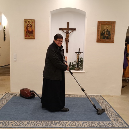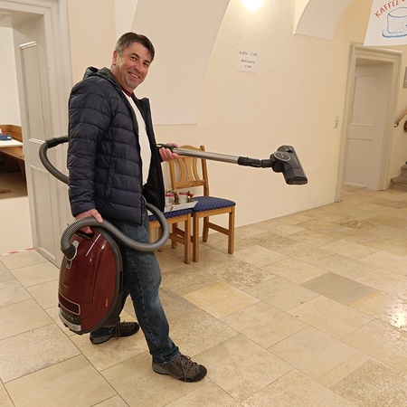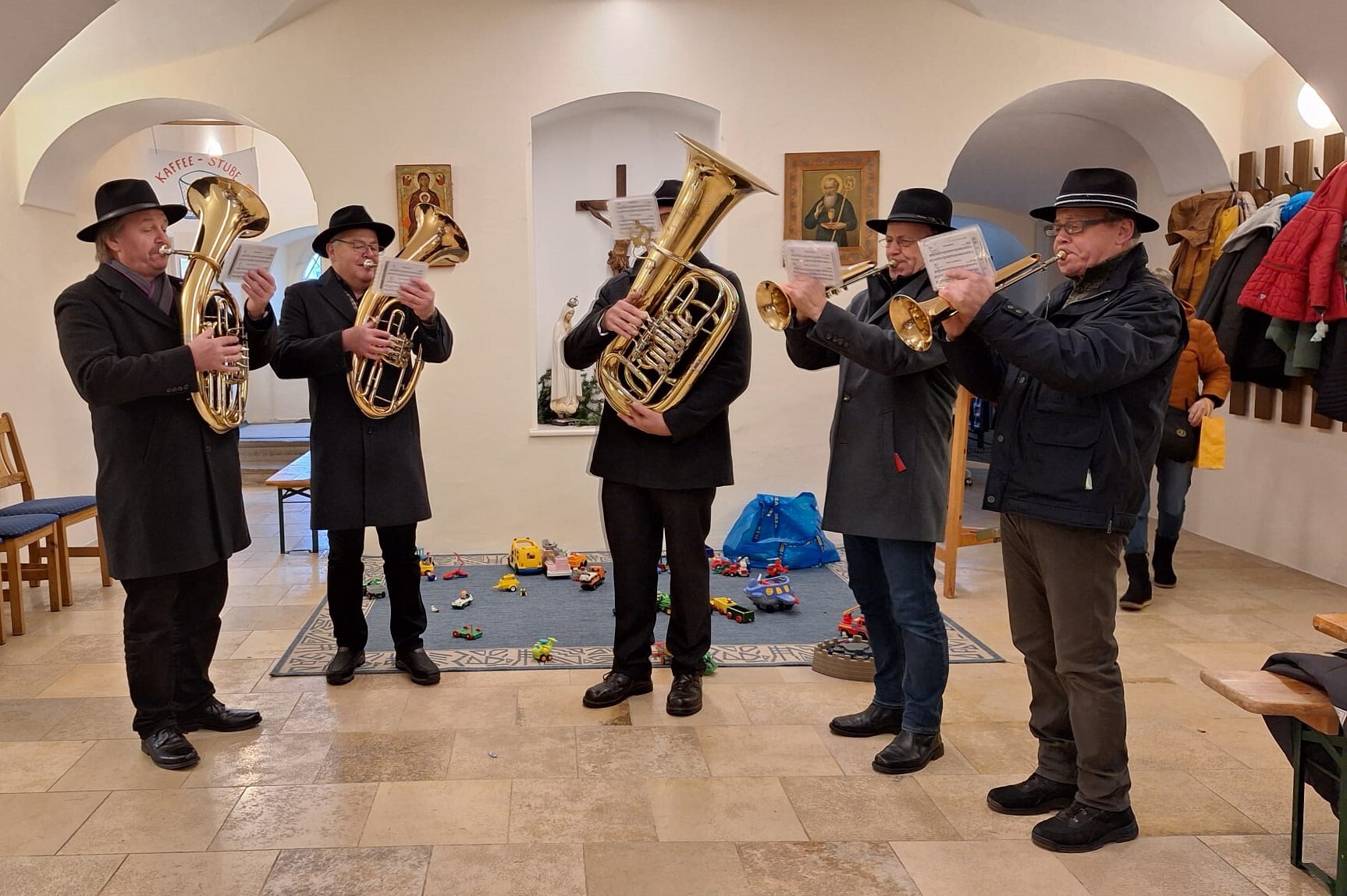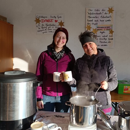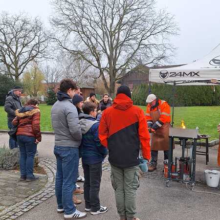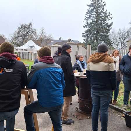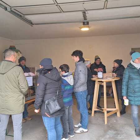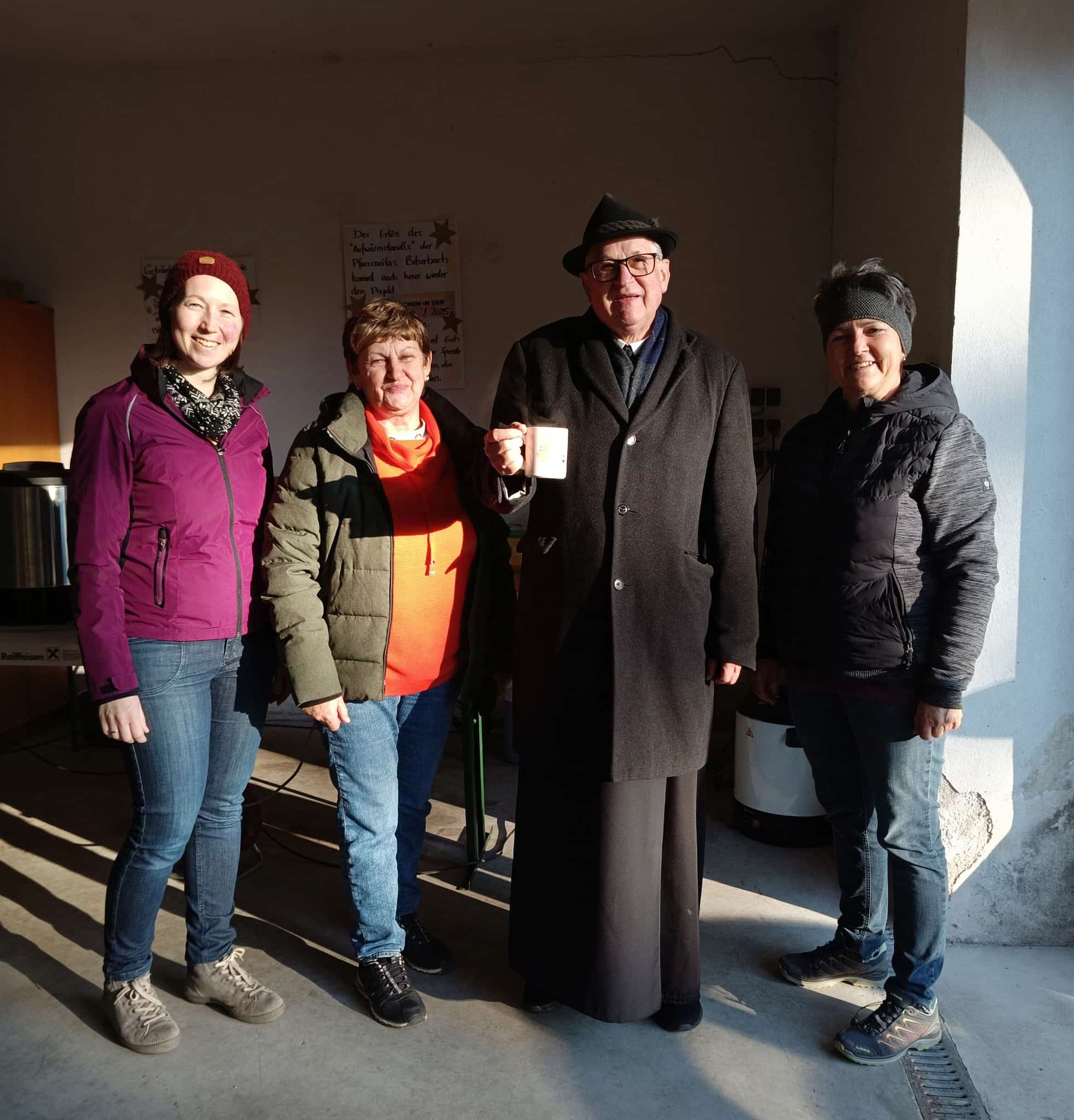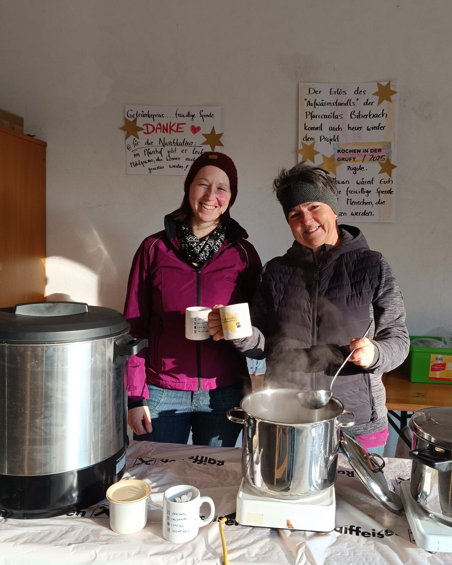 In und vor der Pfarrhof-Garage konnte man sich gut aufwärmen - neben der Schmiedewerkstatt und beim Caritas Standl, das vom PGR Team betreut wurde: Der Erlös der freiwilligen Spenden kommt der Obdachlosen-Einrichtung "Gruft" in Wien zugute.