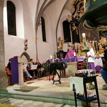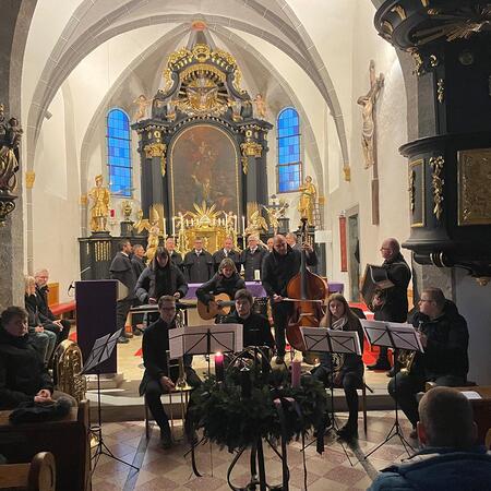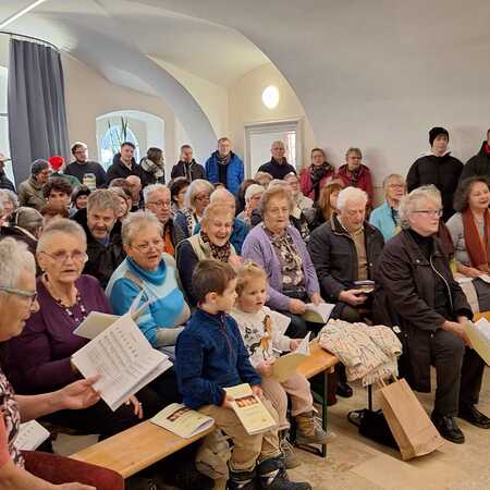 So möchten wir Rückschau halten mit einem der Highlights des Wochenendes: mit dem "Offenen Singen im Advent" - unter der mehr als perfekten Leitung und Begleitung von Maria Rittmannsberger, Claudia Schörghuber, Rosemarie Schnabl und Florian Galdberger, dann auch noch unterstützt von Bruder Matthias.