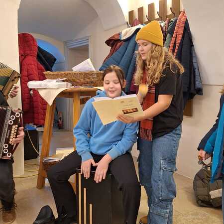 Es ist zsammgruckt wordn und gemeinsam ins Textbiachl gschaut,
