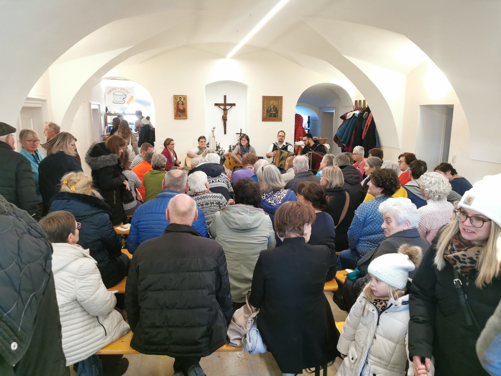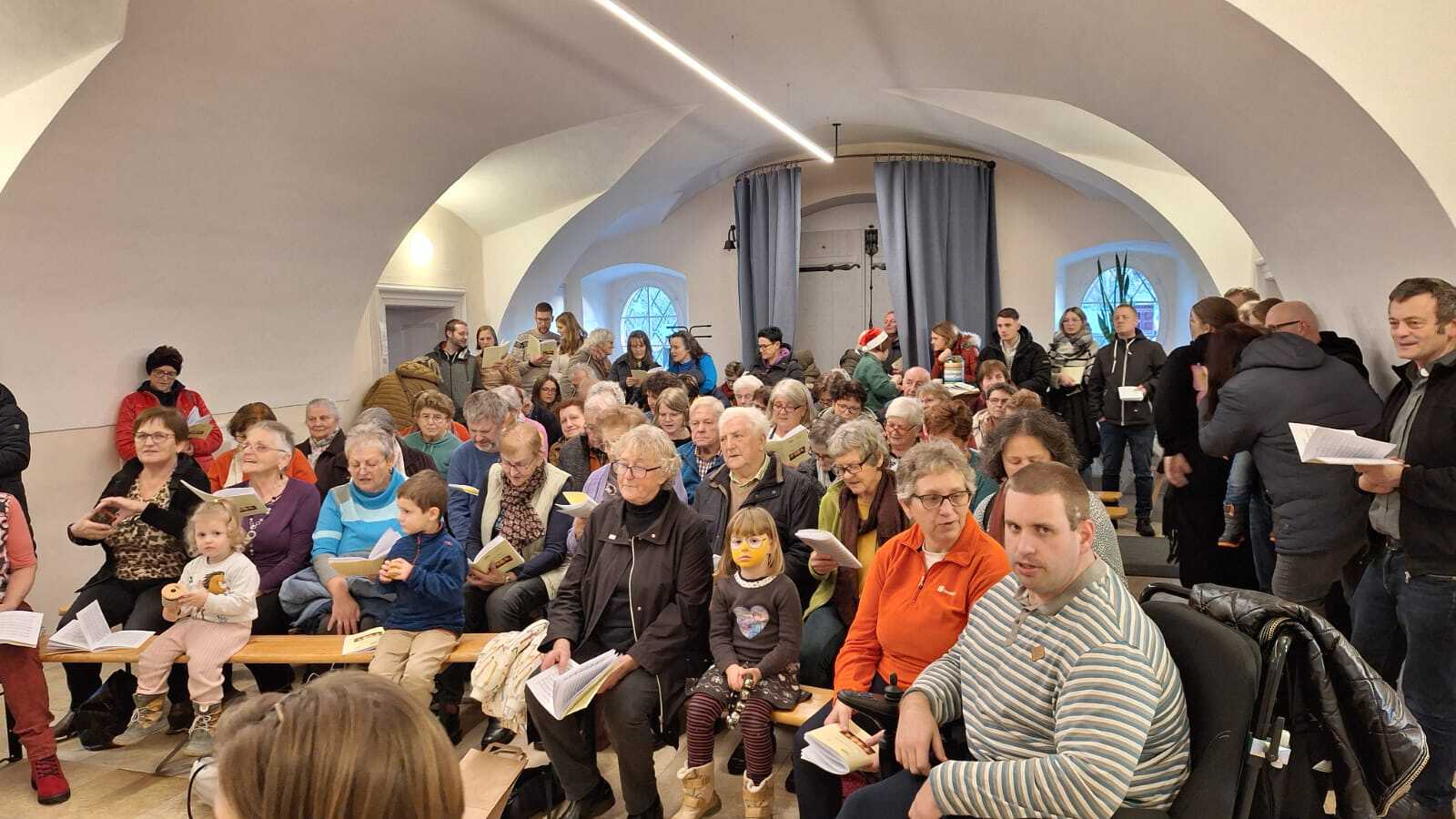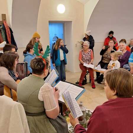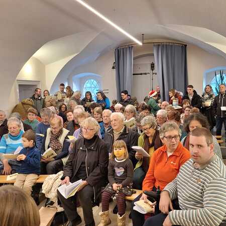 Das "Offene Singen" füllte das Vorhaus des Pfarrhofes bis zum letzten Sitzplatz; mehr als 2 Stunden lang wurde gesungen, gelacht und zugehört, viele der 80 Advents- und Weihnachtslieder aus dem von Claudia erstellten Liederheft gemeinsam gesungen und so ganz viel vorweihnachtliche Stimmung herbeigezaubert. Musik verbindet!!